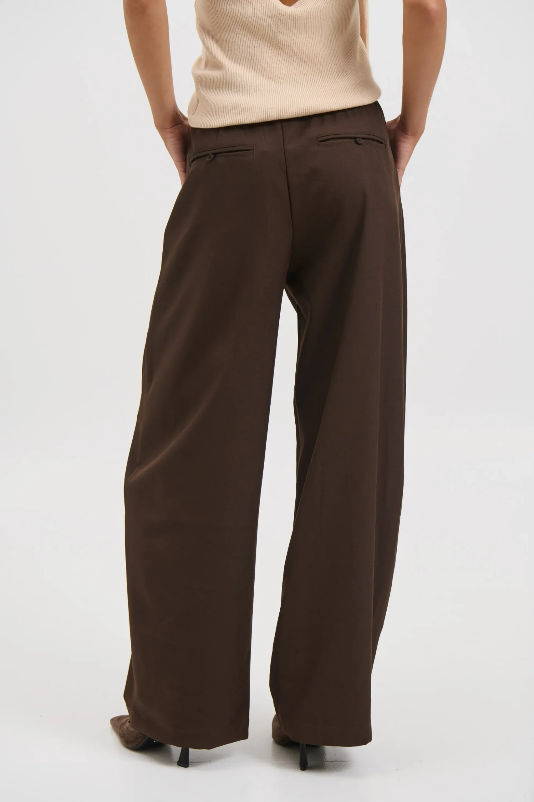 Meet the Aubrey Pant, Featuring a wide-leg silhouette, these pants are designed with an elasticated waistband and adjustable tie for a comfortable fit. Complete with side pockets and back pockets, they’re a versatile piece that blends practicality with effortless style.