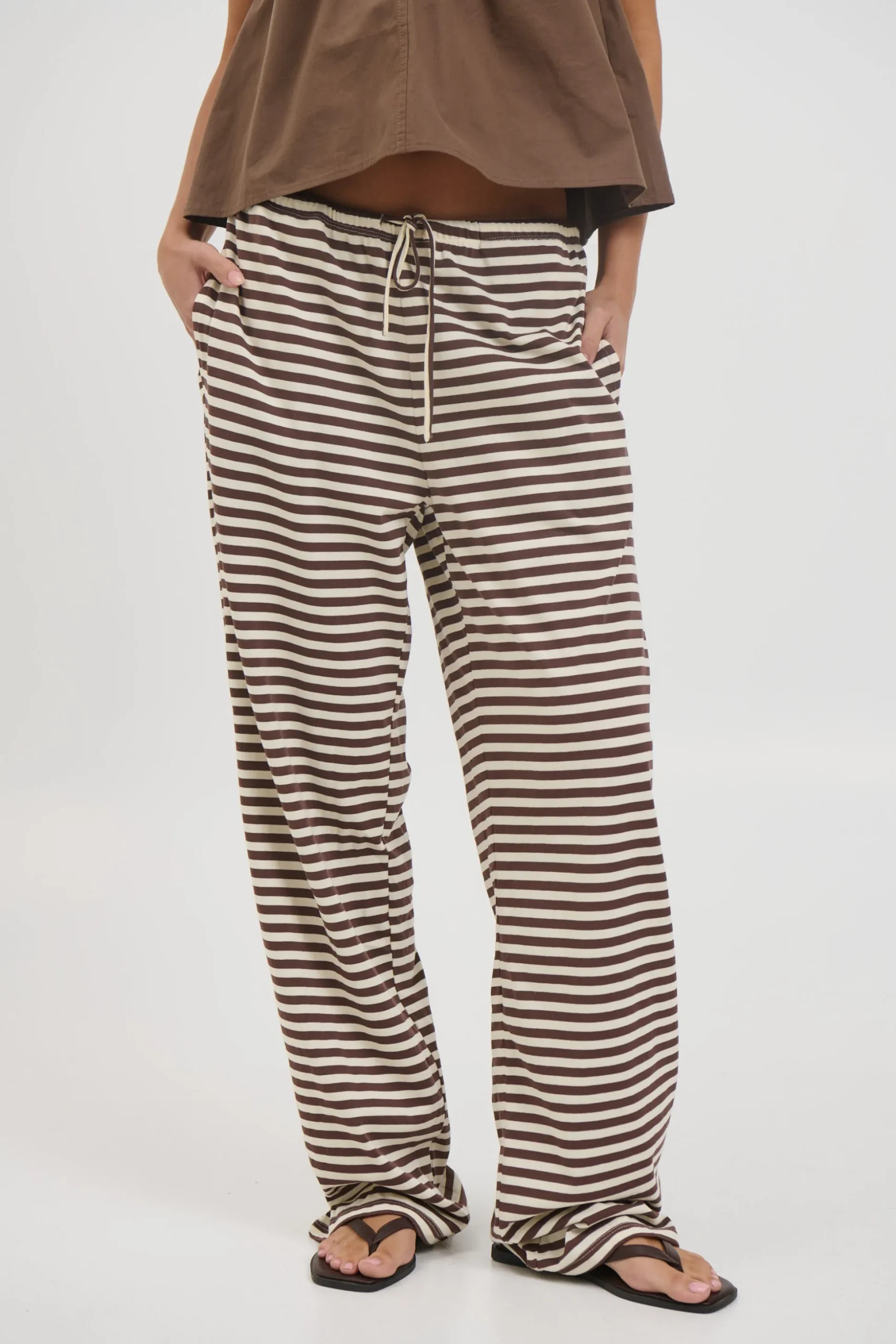 The Bloom Pant offers a true-to-size fit with a low-rise silhouette. For a mid-rise option, consider sizing down. It features a drawstring waist and straight leg design for a balanced, comfortable look.