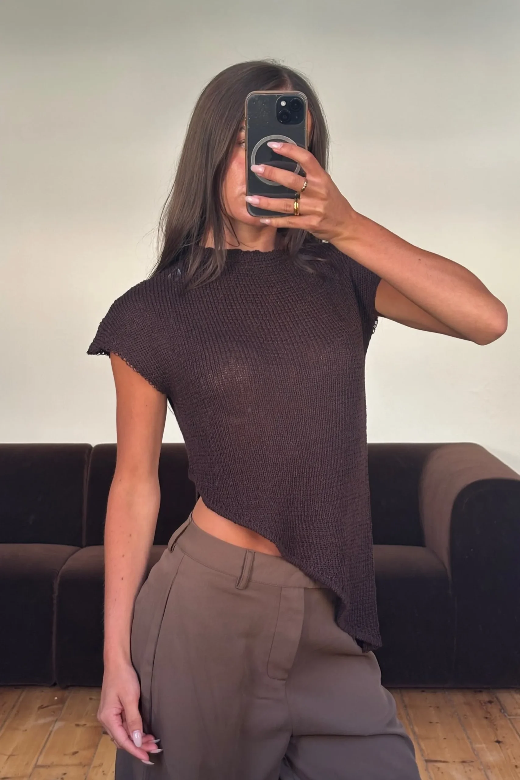 Meet the Cassie Top, featuring a modern asymmetric hem and a cropped silhouette. Slightly sheer with a subtle textured finish, it adds a hint of effortless edge to any outfit while keeping a relaxed, contemporary vibe.