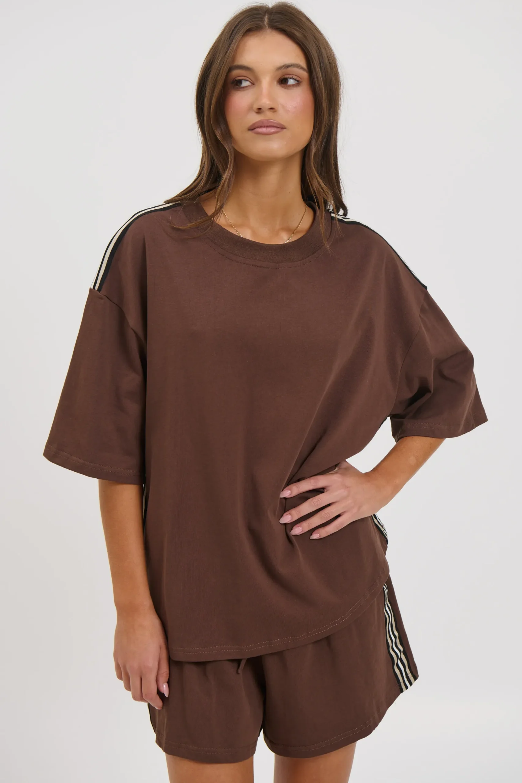 Meet the Charly Top, this oversized tee features soft cotton fabric with sporty stripe detailing down the sides. Designed for a relaxed fit and effortless comfort. Pair with the matching shorts for a coordinated look.