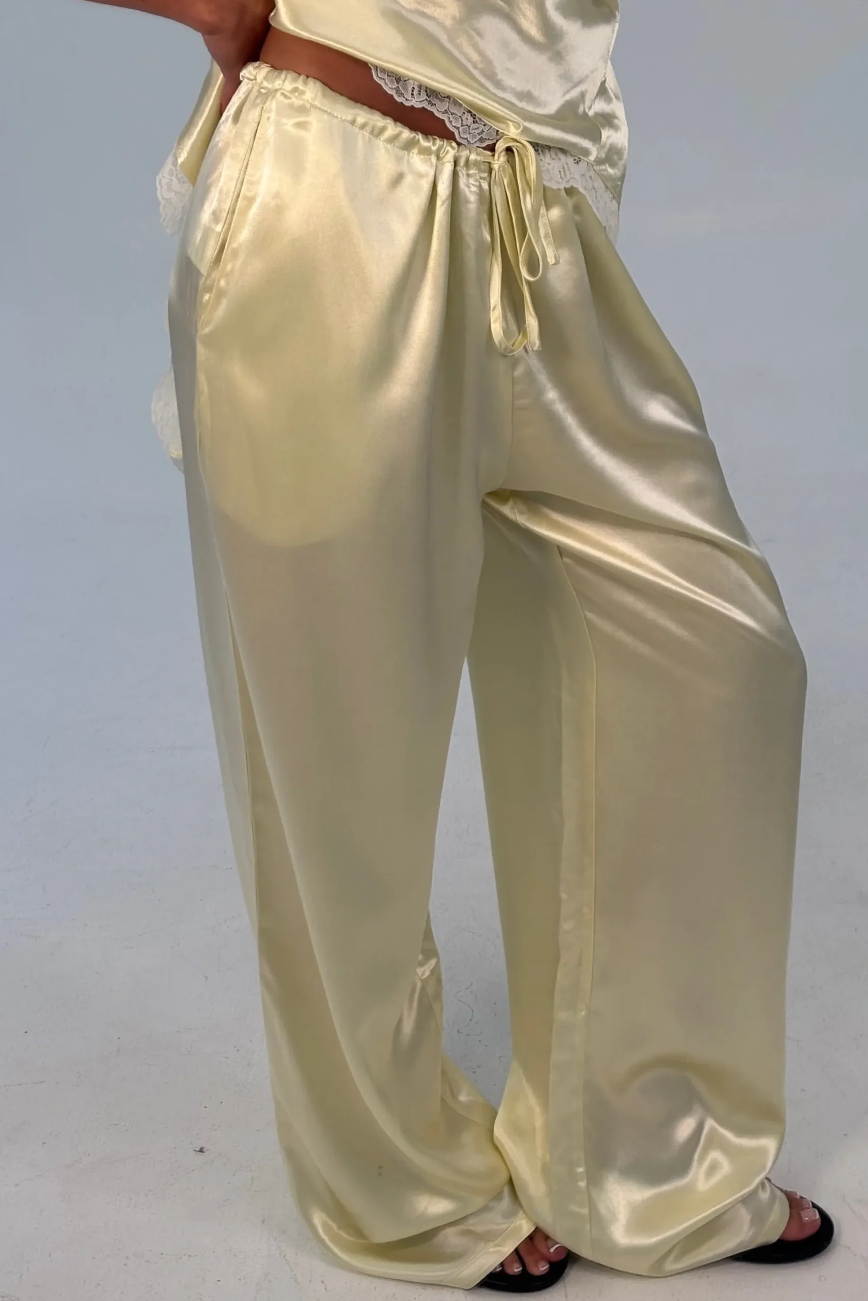 Meet the Dove Pant Sour Lemon, designed for comfort with a touch of refinement. The straight-leg silhouette drapes softly, offering relaxed movement from day to night. An adjustable drawstring waistline allows for a customisable fit, while side-seam pockets add practical everyday functionality. Unlined and slightly sheer, these pants deliver an airy, delicate feel.