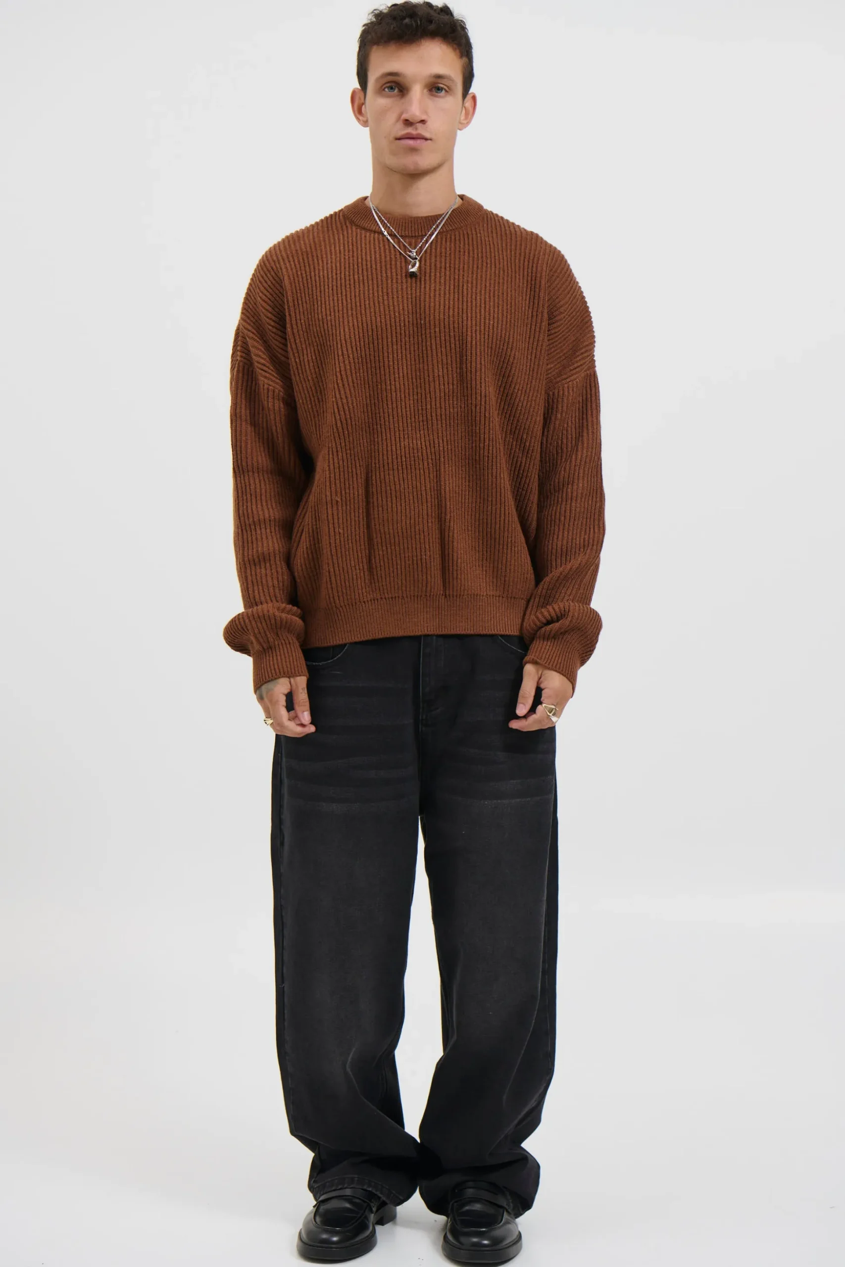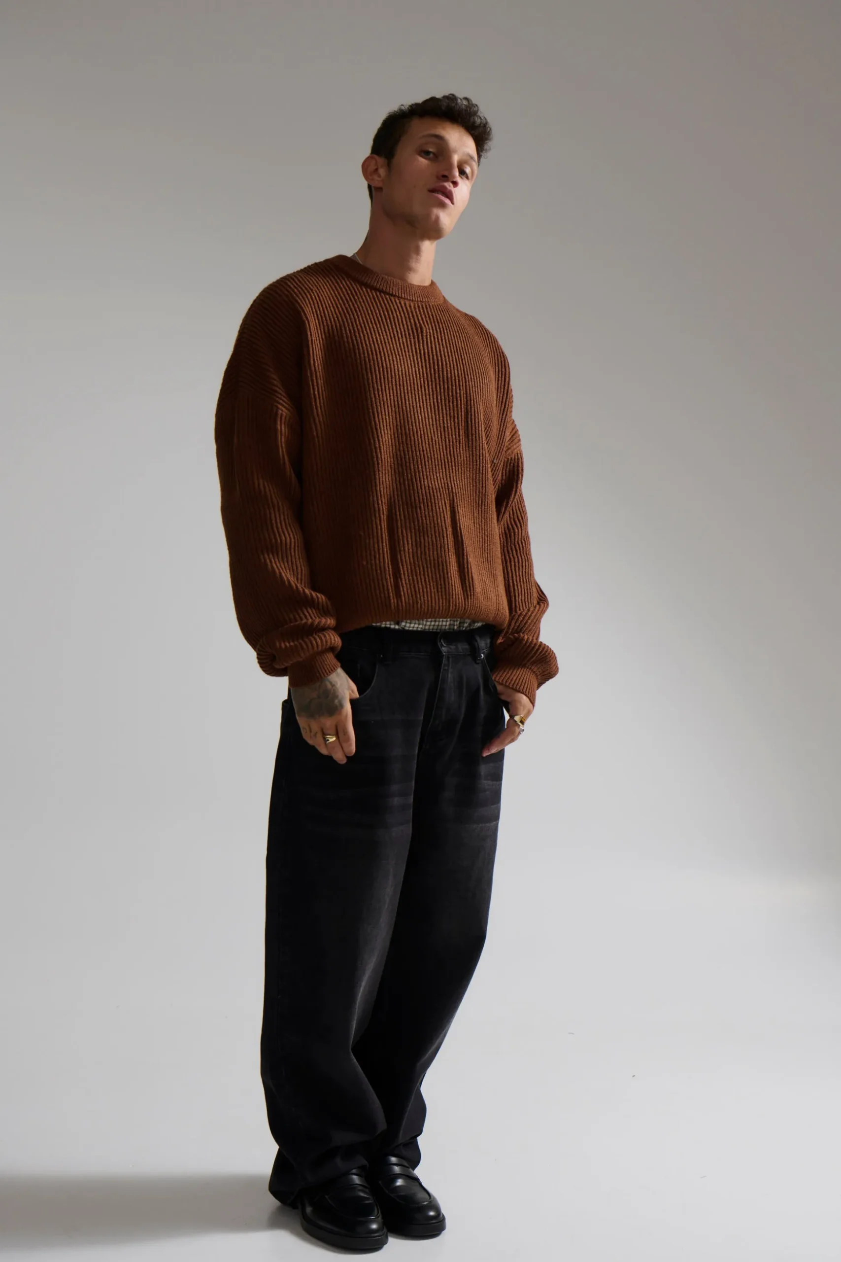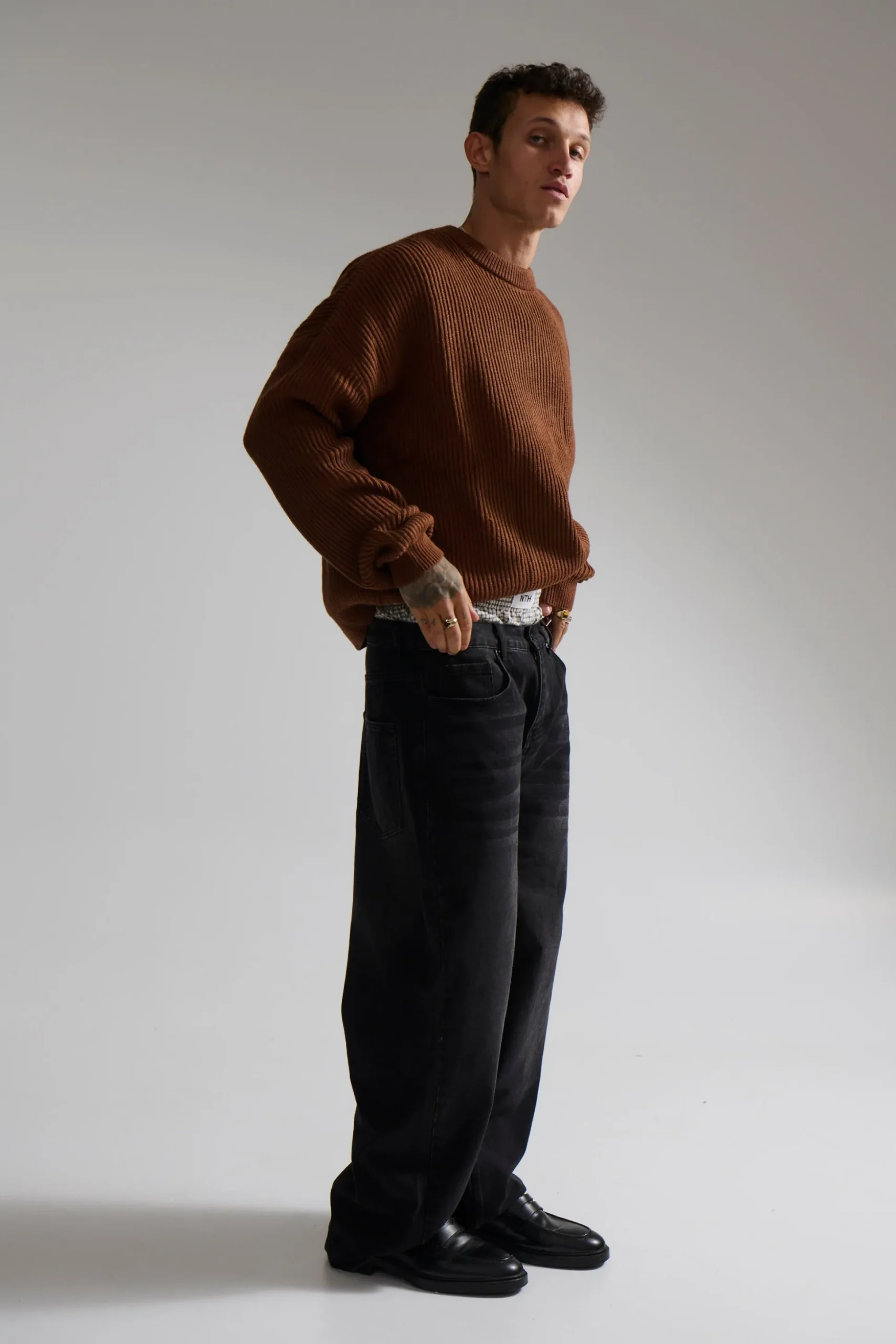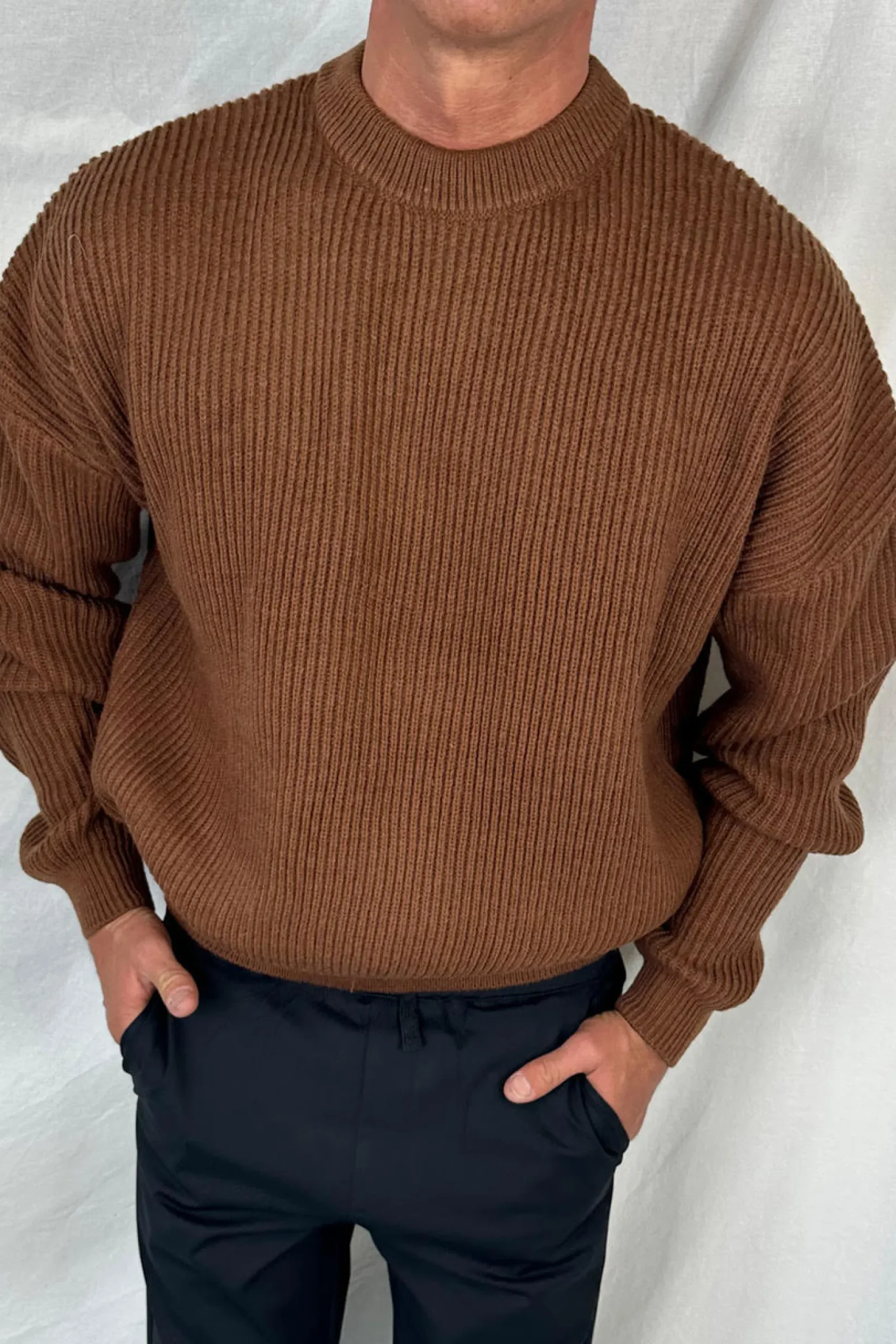The Drop Sleeve Heavy Knit, Featuring a relaxed slouch fit and effortless drop shoulder silhouette, this knit delivers laid back comfort with a modern edge. Finished with ribbed cuffs and a classic crew neckline.