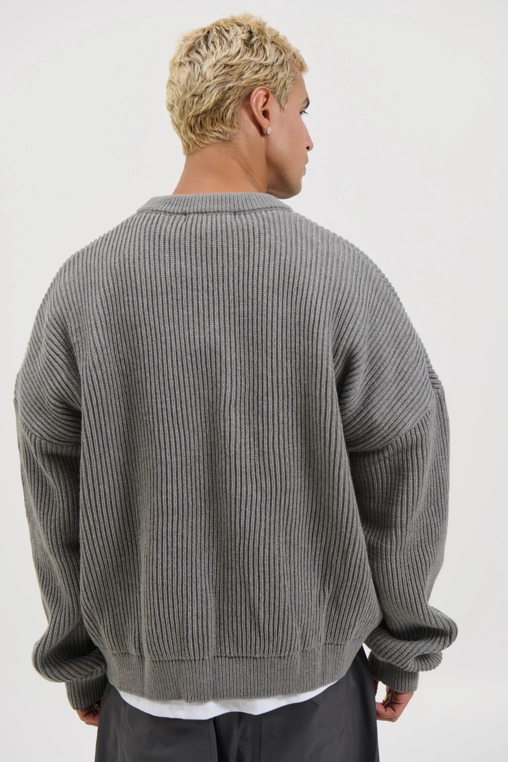 The Drop Sleeve Heavy Knit, Featuring a relaxed slouch fit and effortless drop shoulder silhouette, this knit delivers laid back comfort with a modern edge. Finished with ribbed cuffs and a classic crew neckline.