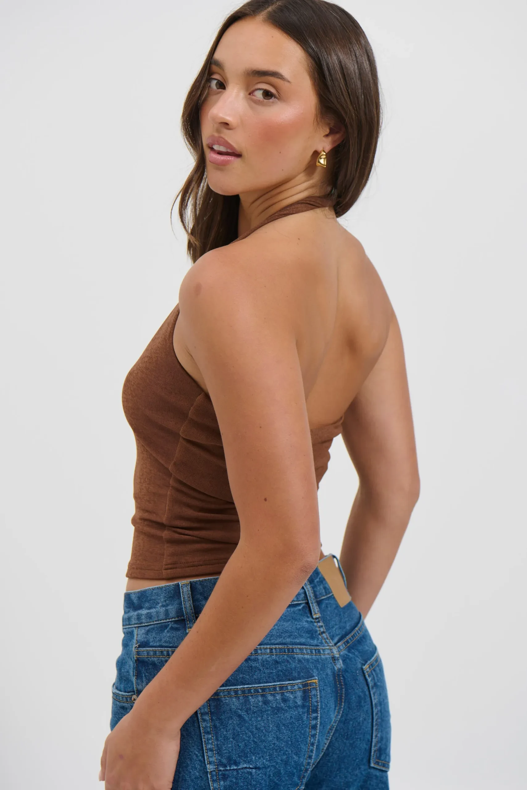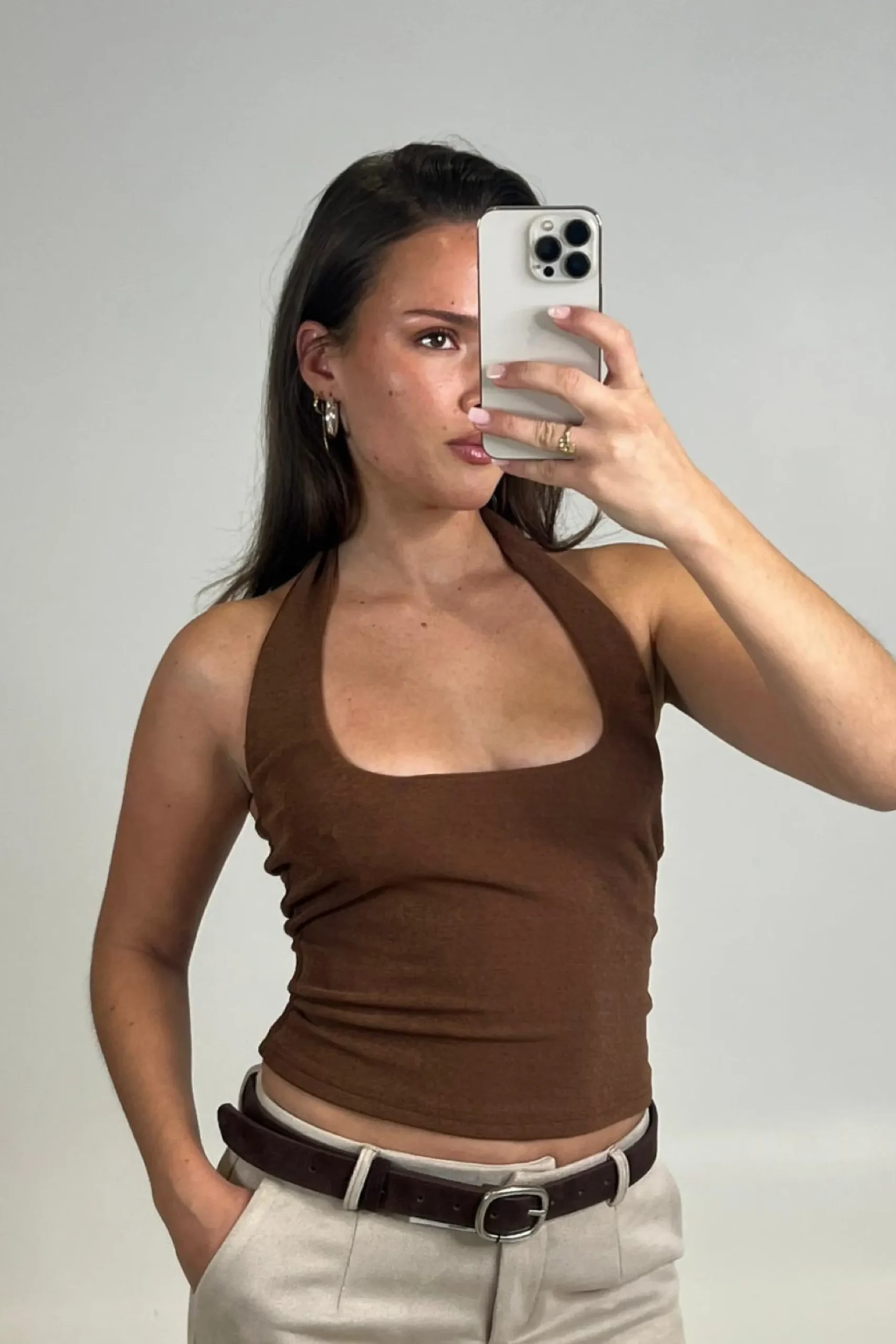 Meet the Katya Halterneck Top, Crafted from a semi-sheer fabrication with high stretch, this tank top features a flattering scoop neckline and a fixed halter neck design. Lined in self fabric for a smooth finish while maintaining its sheer appeal. Designed for a relaxed fit. We recommend sizing down for a closer silhouette.