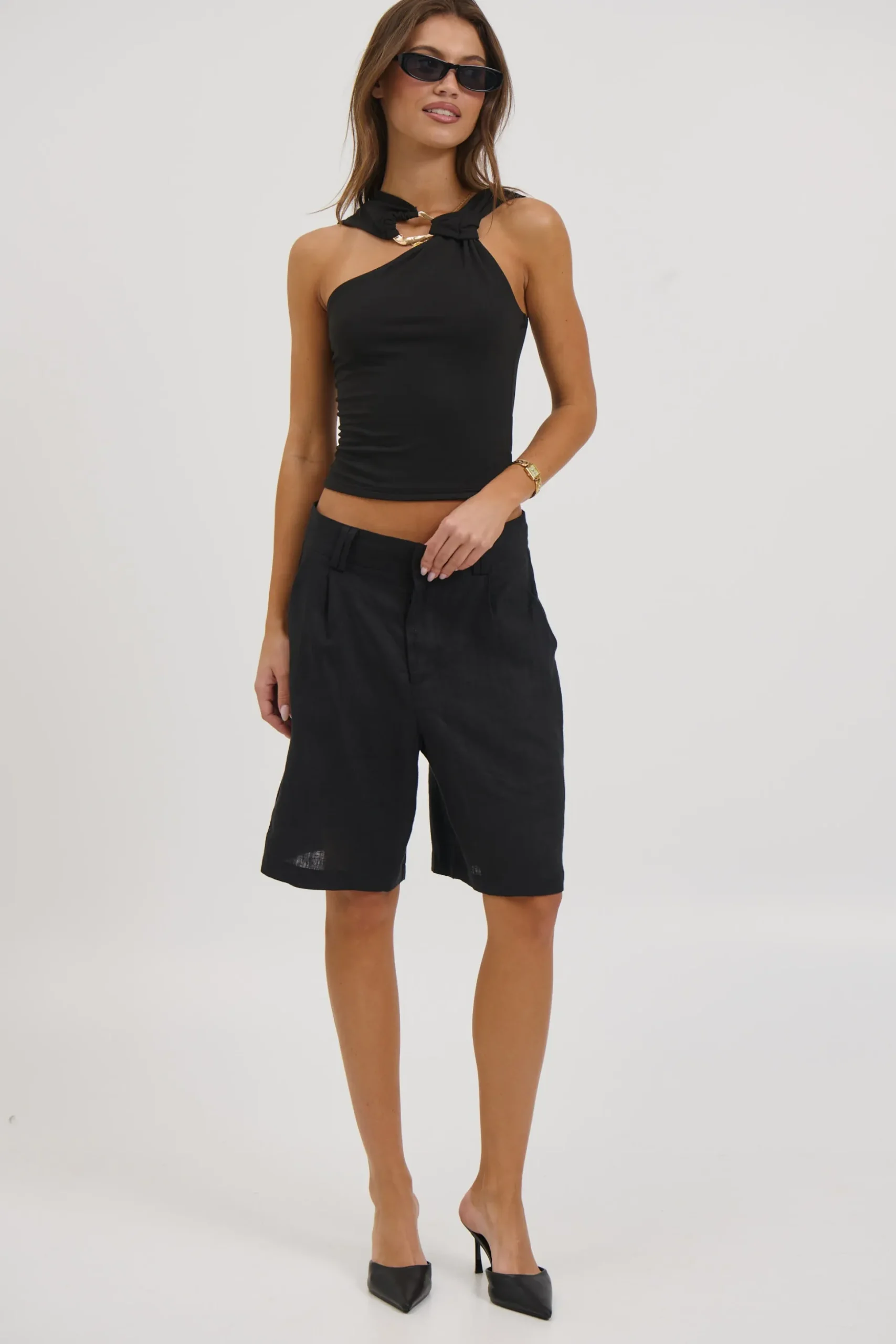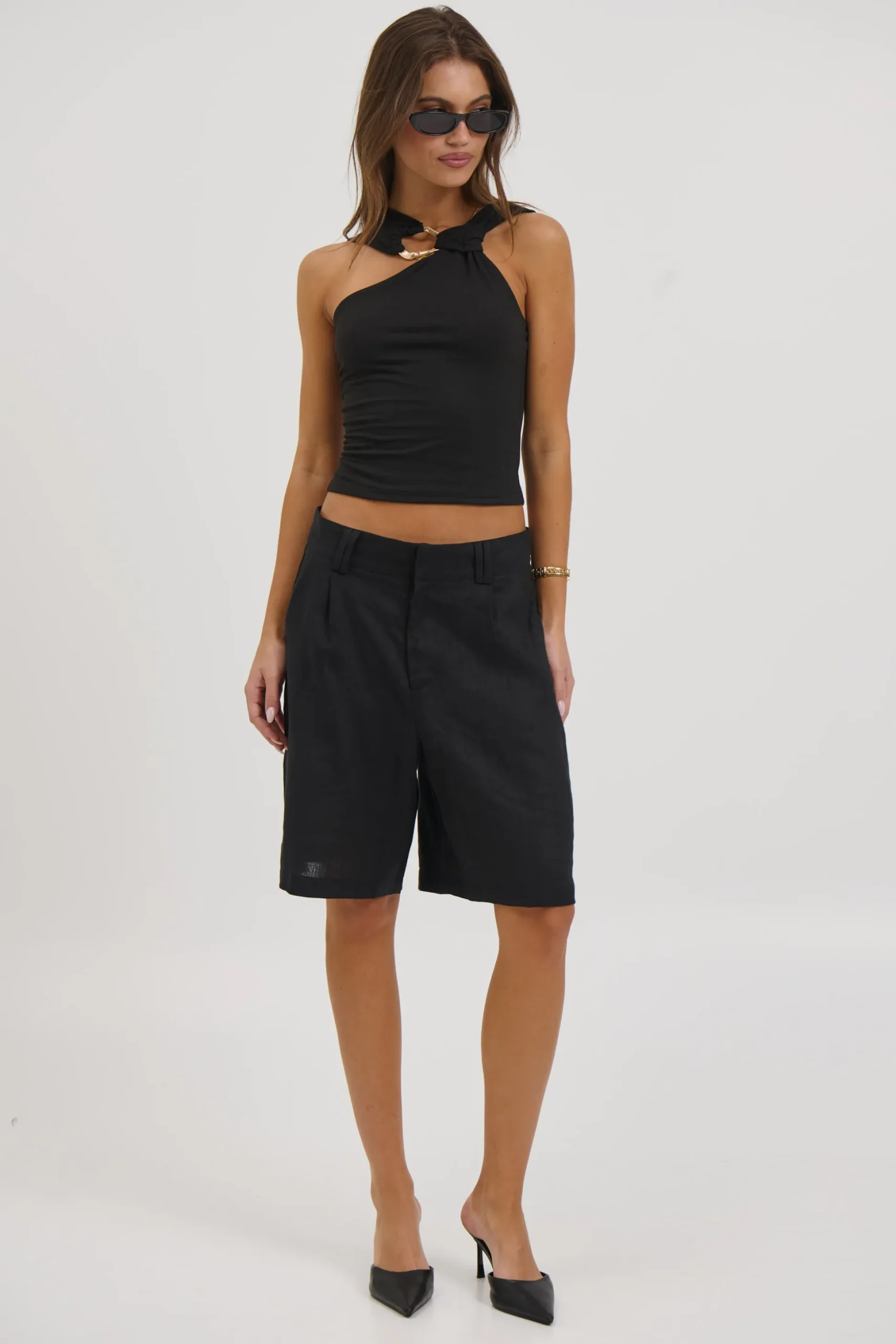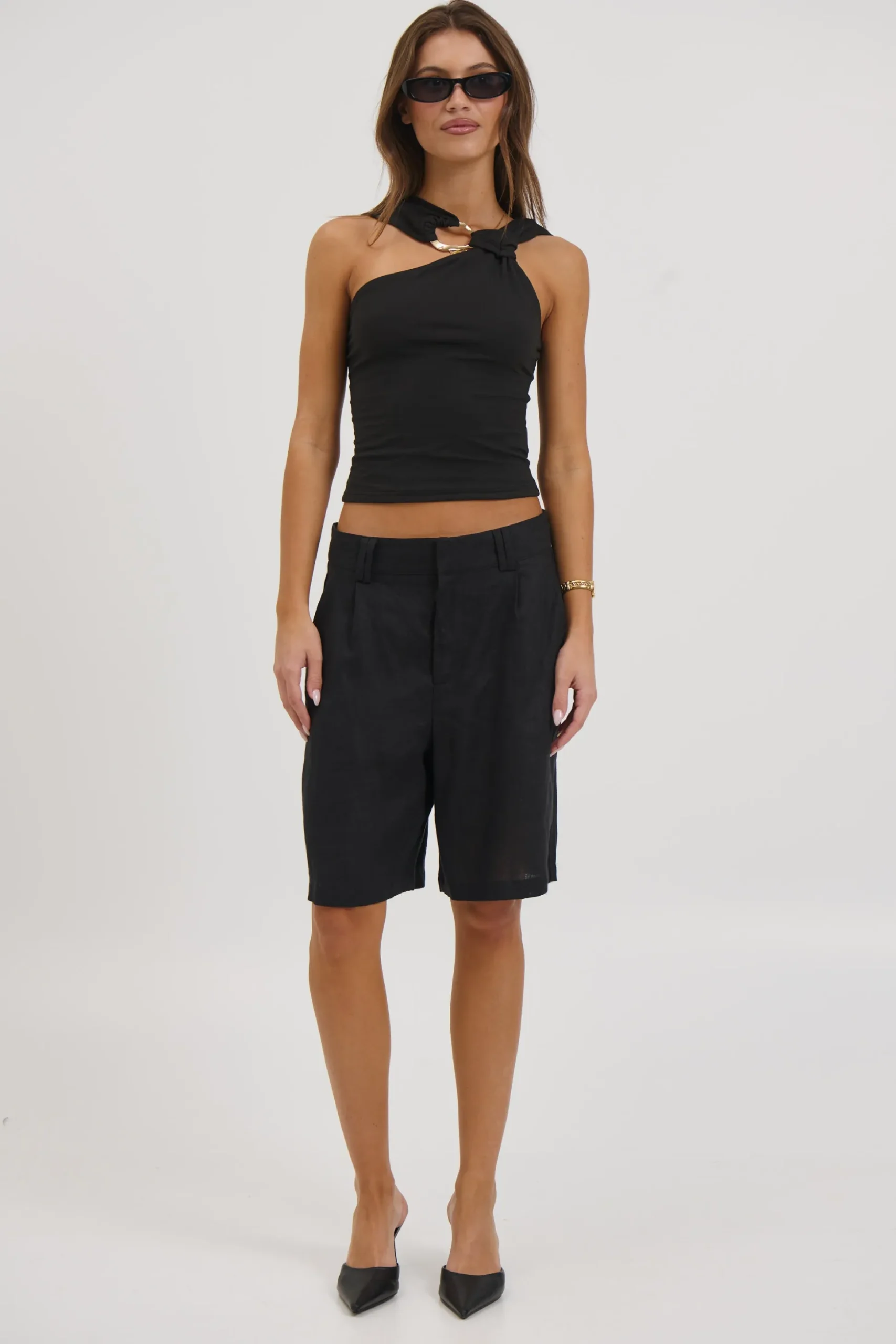 Meet the Leon Top, Featuring stretchy, fitting material, this women’s top hugs your silhouette for a sleek and flattering look. Designed with a stylish shoulder strap, it adds a modern asymmetrical edge, while the gold metal detail elevates the piece with a touch of luxe sophistication.