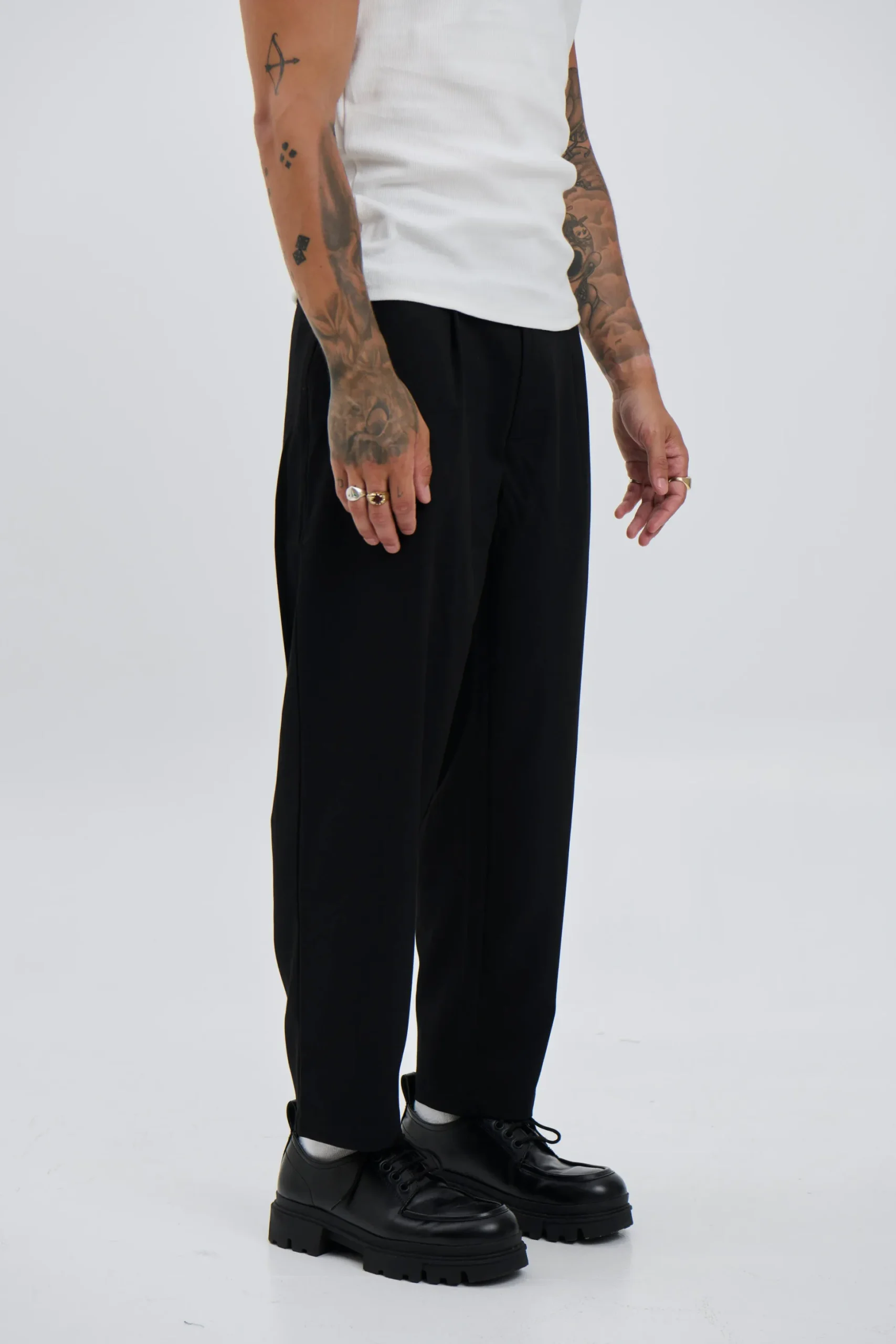 The Luke Flow Pant, crafted from a durable yet comfortable blend. These pants feature a relaxed fit with a slightly tapered leg, providing a modern silhouette. Designed with clean lines and minimal detailing.