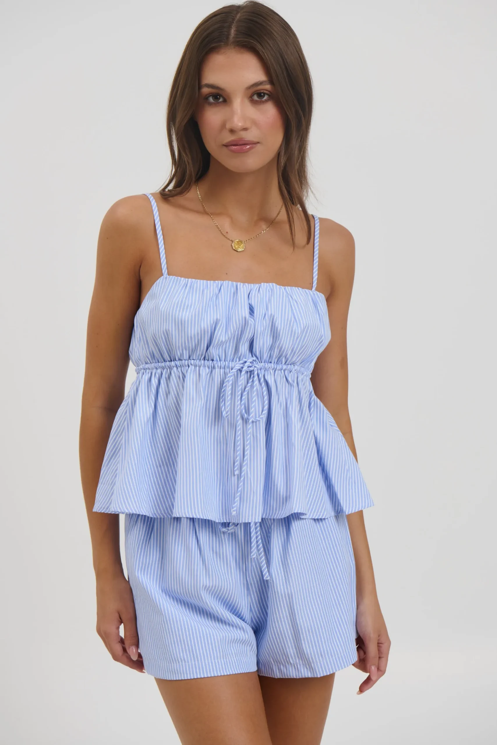 Meet the Matisse Top, featuring adjustable shoestring straps, a cropped length, and a flared peplum hem for a flattering finish. Pair with the Matisse Short for the ultimate summer set.