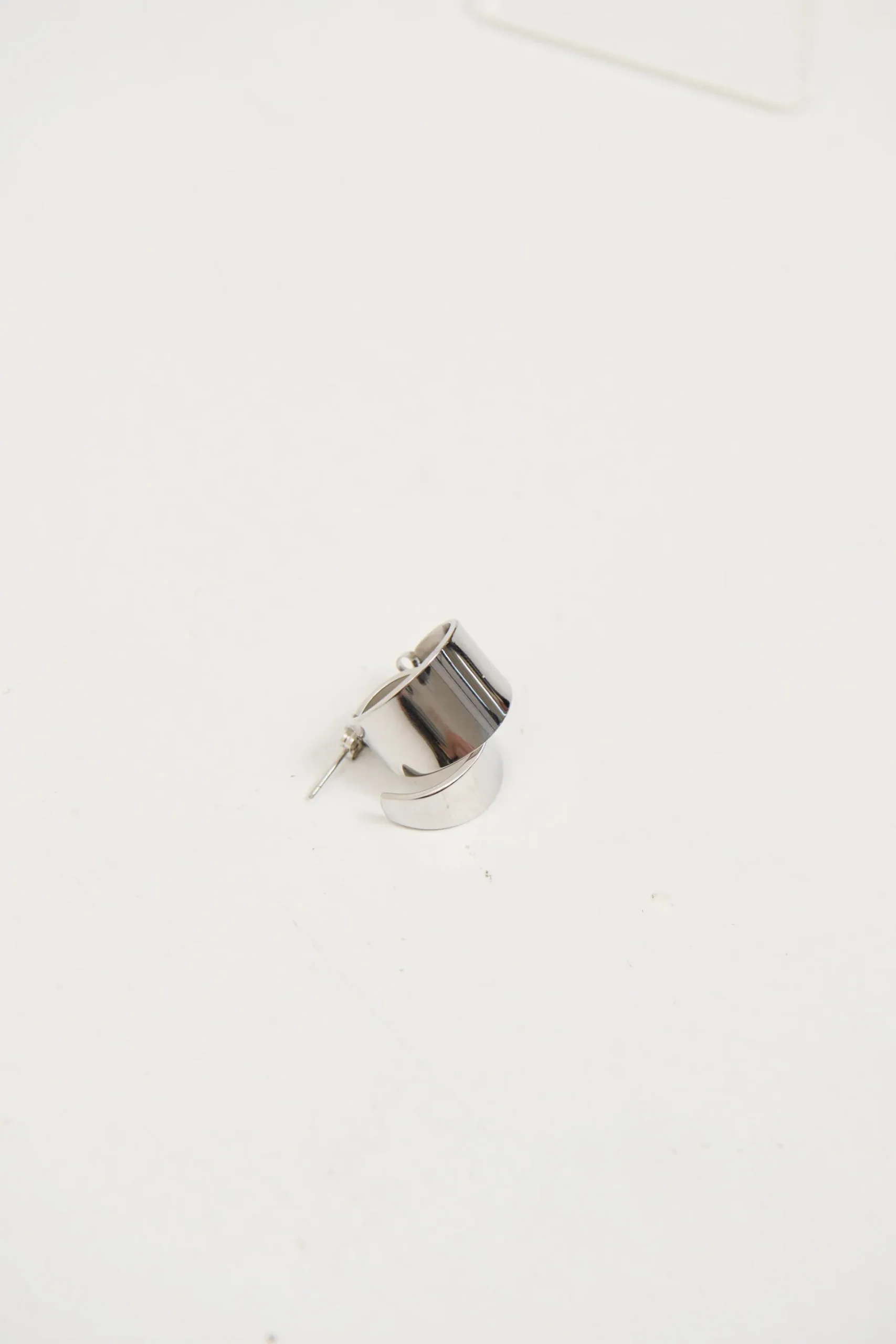 The Messi Earring, a silver-plated pendant featuring a sleek, polished surface with a modern geometric design. Minimalist and versatile, ideal for elevating any look.