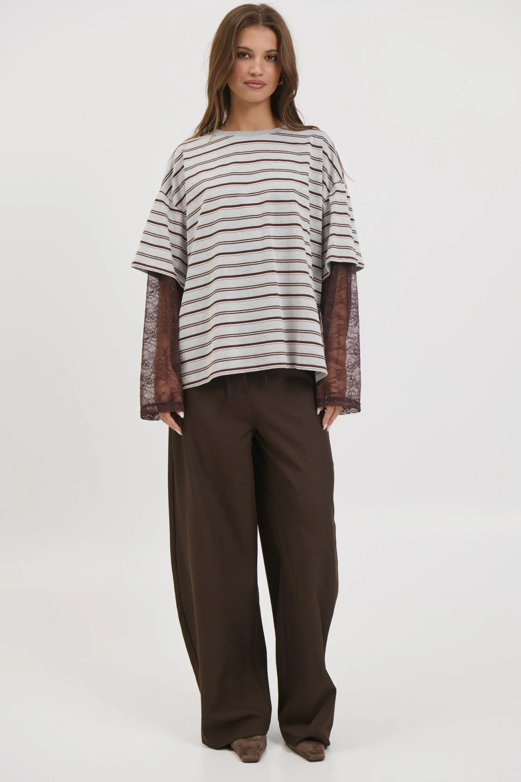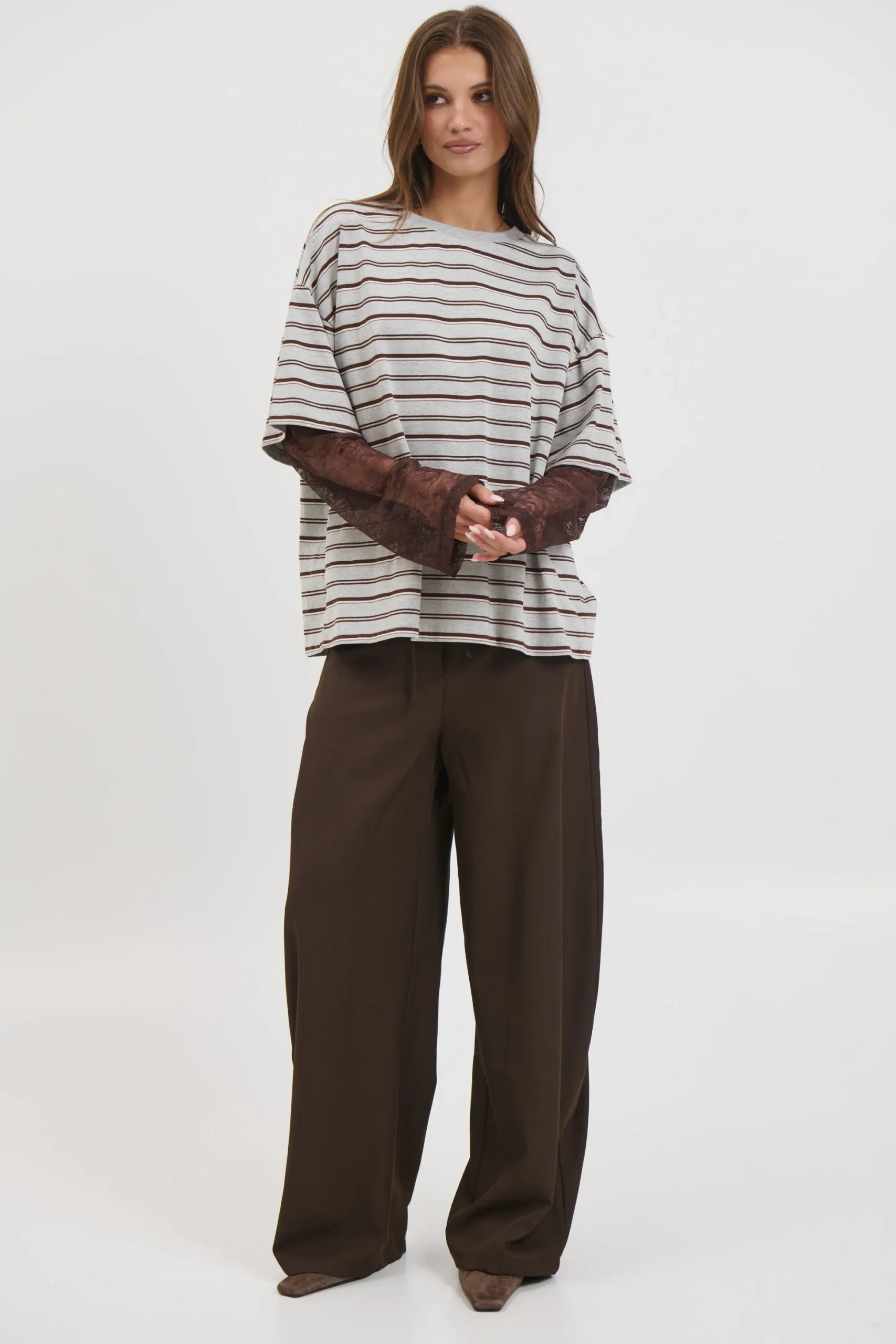 Meet the Micca Lace Tee, Designed with delicate lace sleeves layered underneath for a soft contrast, it brings edge and elegance together effortlessly.