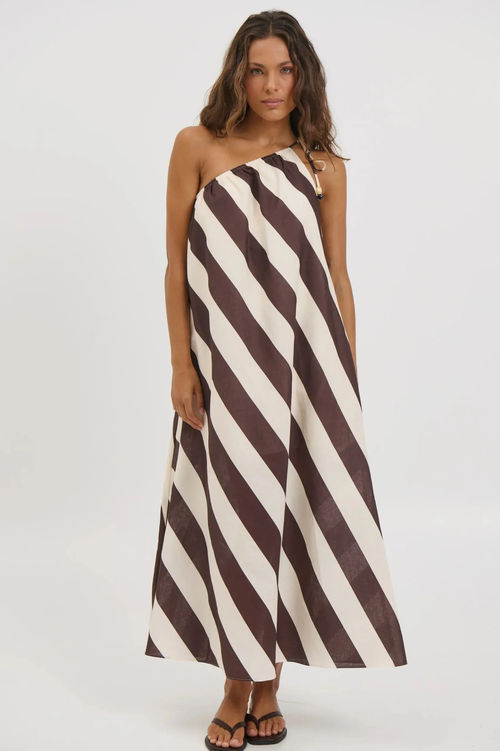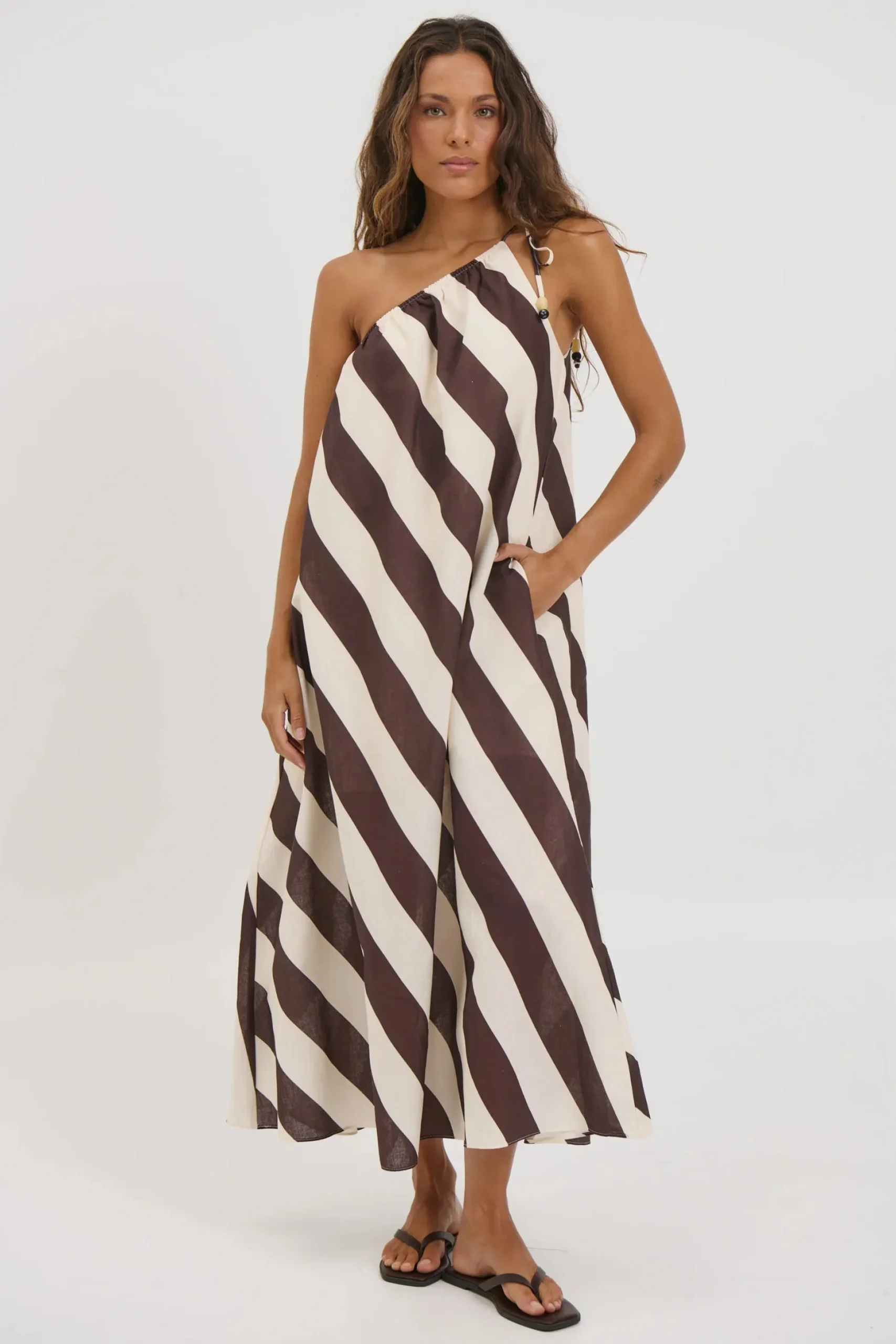 Meet the Neve Midi Dress, featuring a chic one-shoulder silhouette, it showcases a delicate tie strap accented with beaded detailing for a subtle touch of texture and shine. The midi length creates a flattering, timeless profile, while the fully lined construction ensures comfort and confidence. Crafted with a lightweight, flowy fabric.