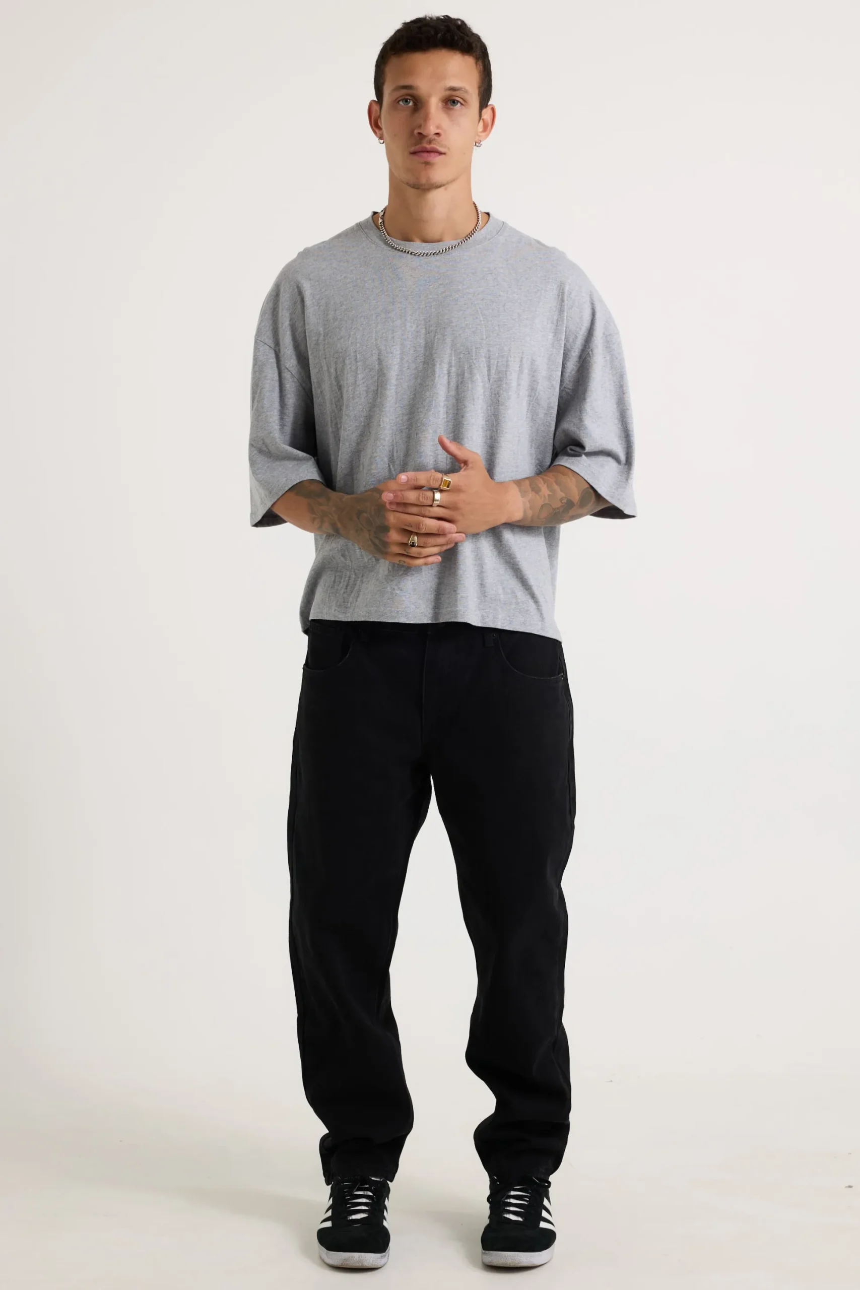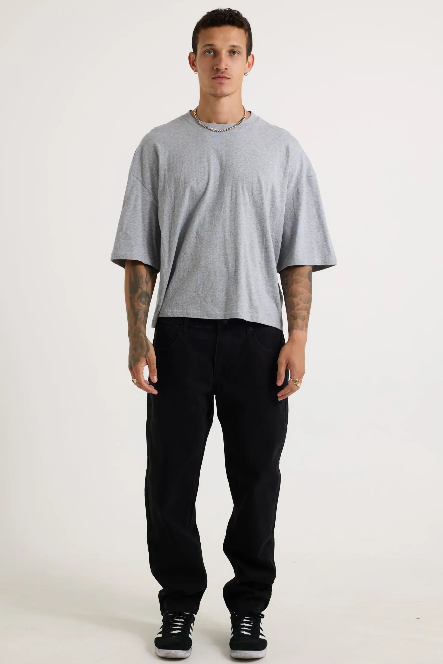 NTH Crop Box Tee is a crew neck tee that boasts a drop shoulder design, slightly oversized fit, and a cropped silhouette. This tee is made from 200 GSM heavy cotton fabric, providing both comfort and durability.