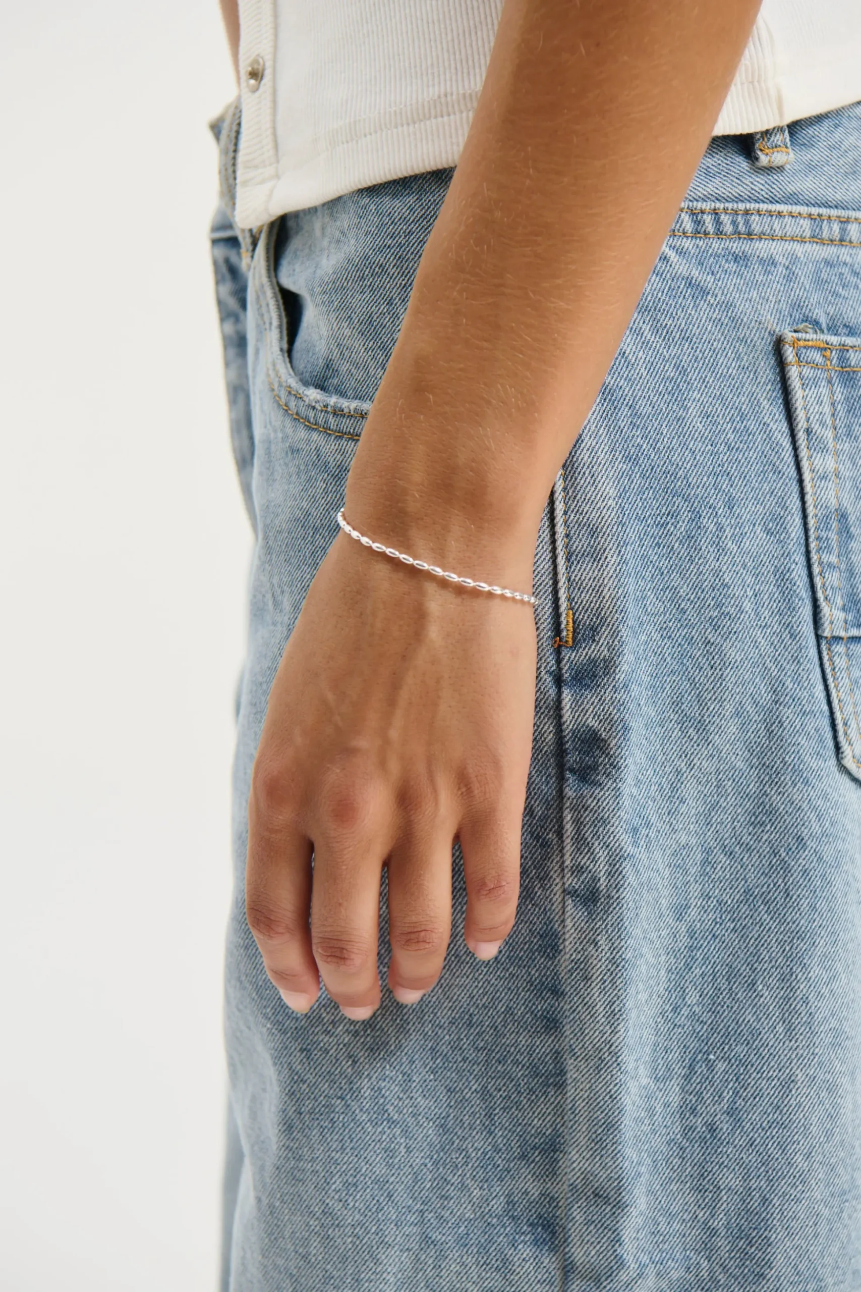 The Oliver Mens Bracelet, features a simple link design that sits elegantly around the wrist.