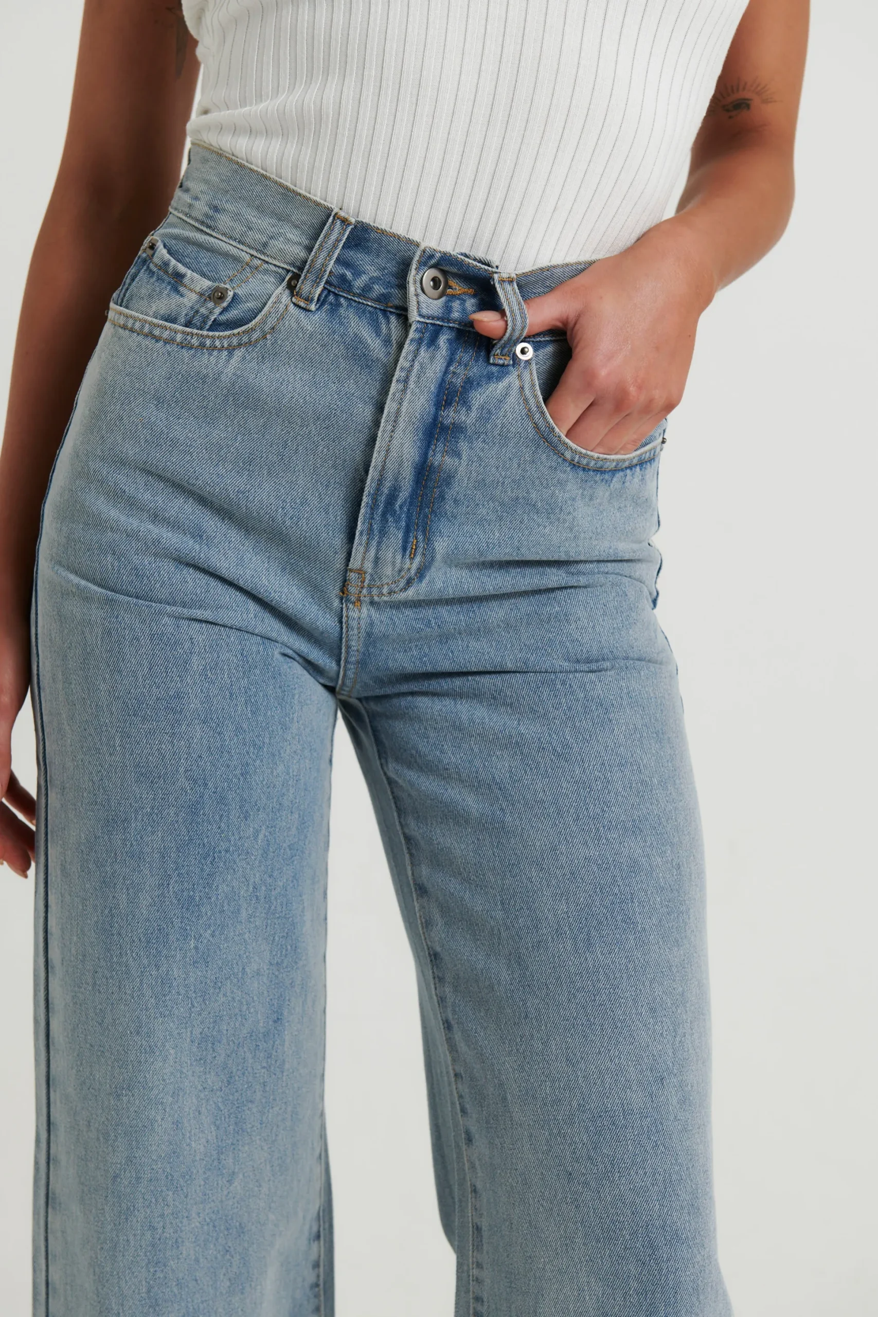 Introducing our Ophelia Jean. Elevate your denim collection with these high-rise jeans. Crafted from 100% cotton, they feature a wide-leg silhouette. Designed with a classic 5-pocket style and a secure zip and button closure, these jeans are perfect for effortless, everyday style.