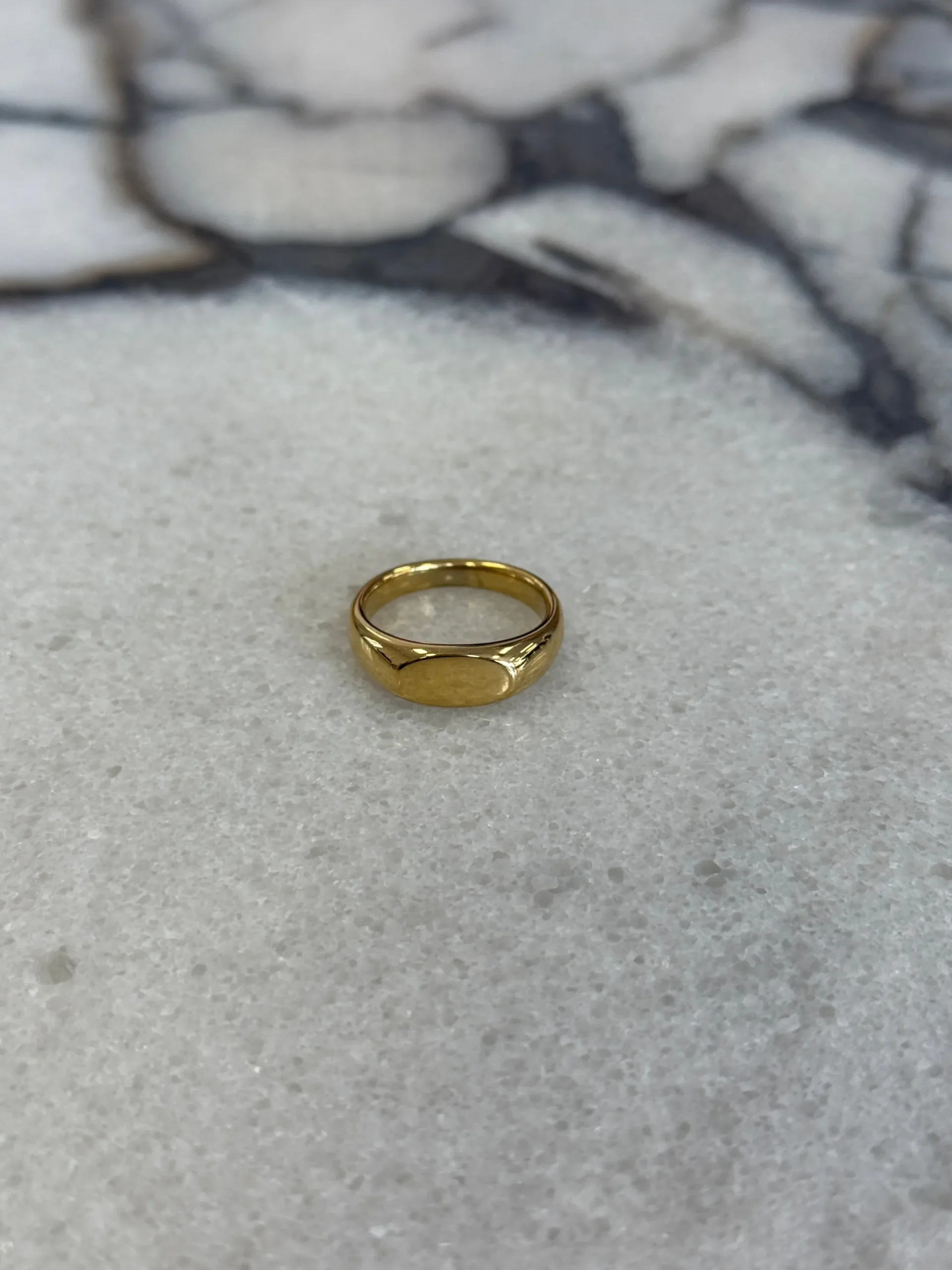 The Oval Signet Ring, crafted with a slim silhouette and smooth detailing for a timeless accessory designed to elevate everyday looks.