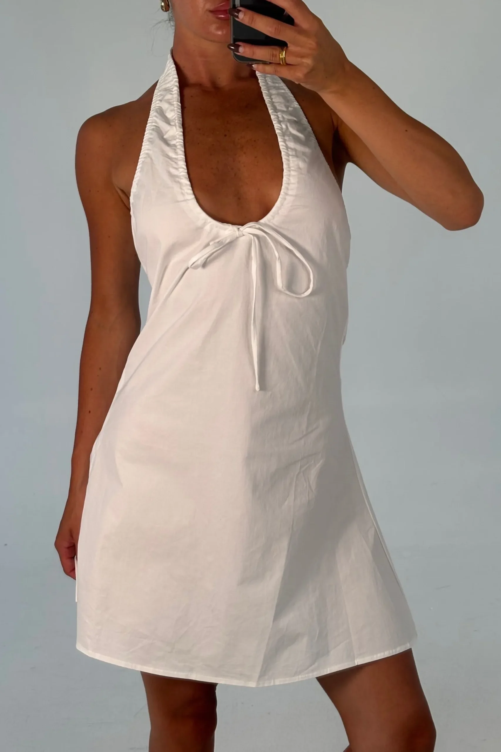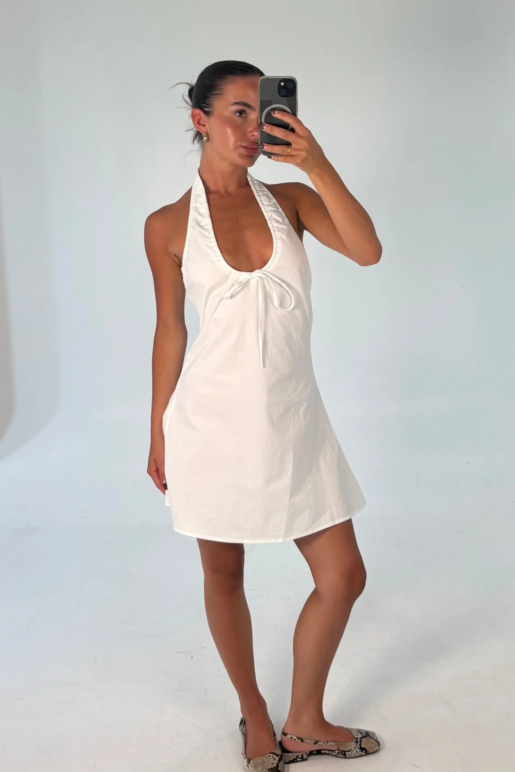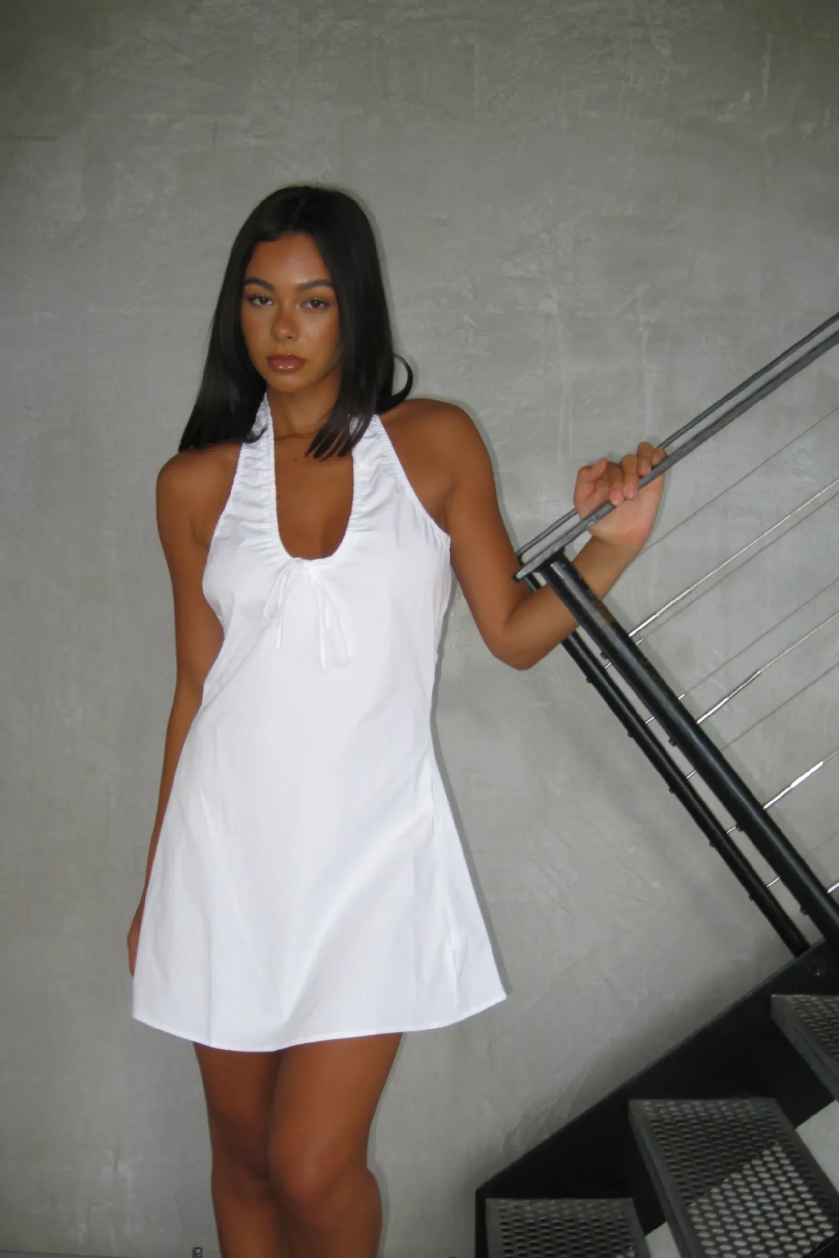 Meet the Penelope Mini Dress, Featuring a daring low neckline and a stylish halter neck, it elegantly frames the shoulders while offering a modern, feminine silhouette. The figure-hugging mini length adds a playful edge, perfect for nights out or special occasions. A discreet back zip closure ensures a seamless fit, combining comfort with effortless style.