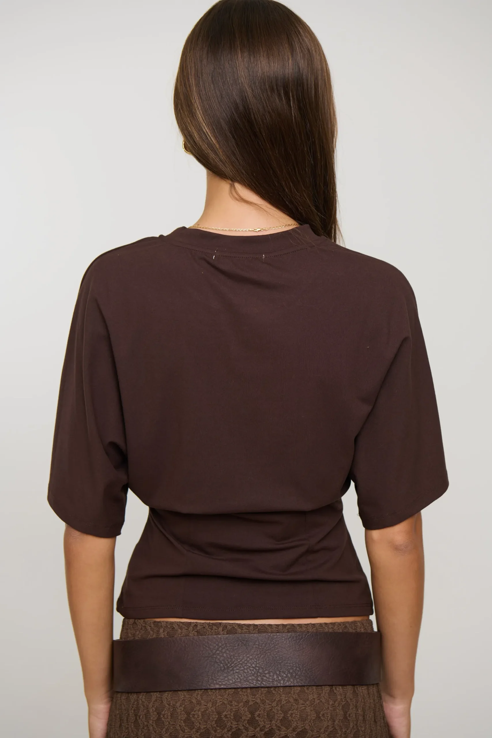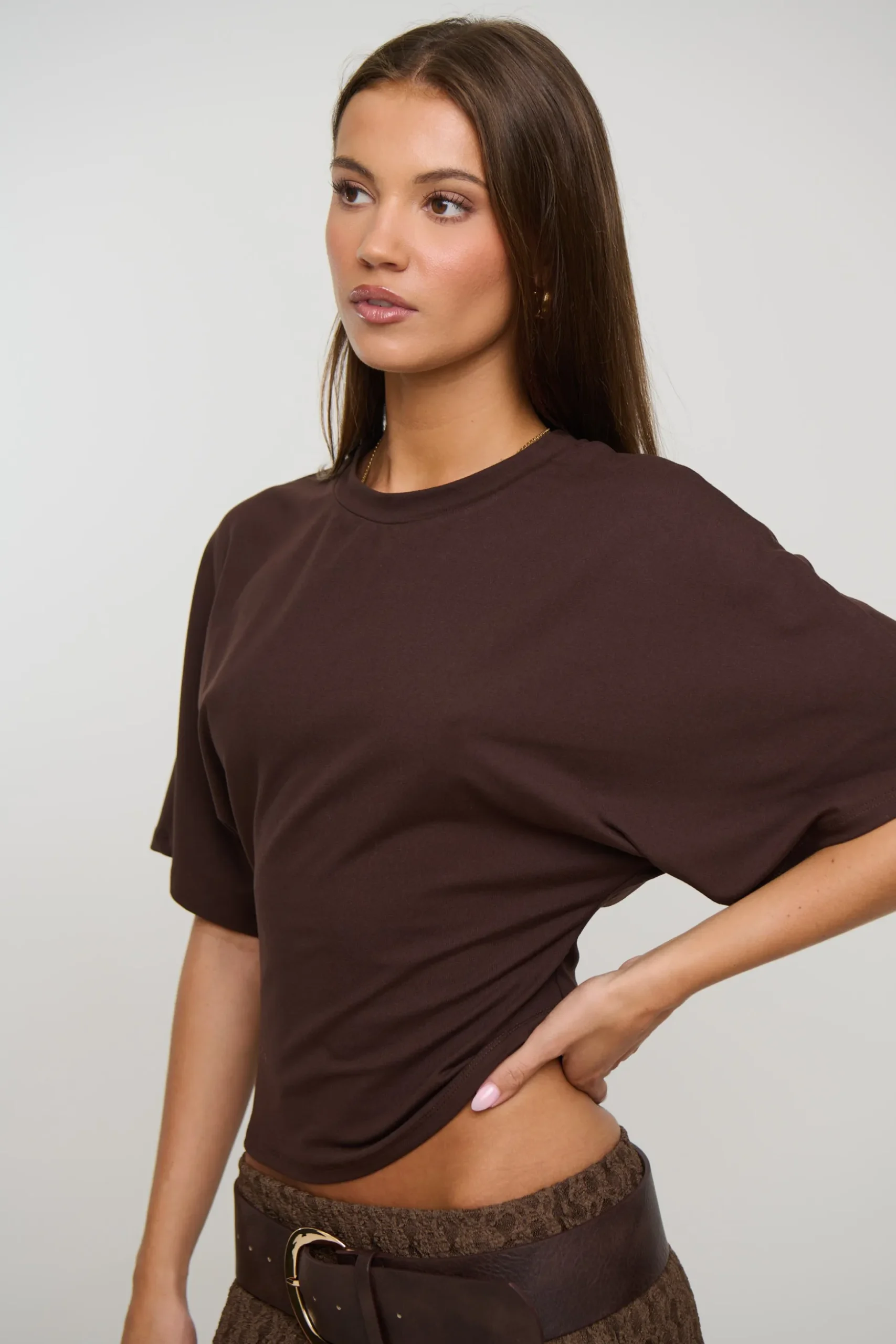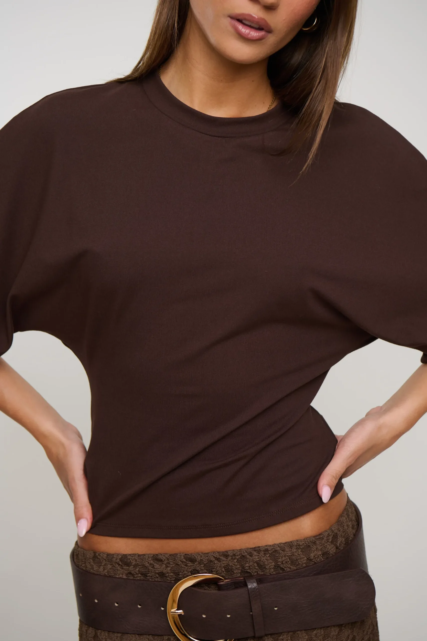 Meet the Scout Top, The relaxed, oversized sleeves create a laid-back, contemporary silhouette, while the fitted fabric around the waist adds definition and a flattering contour.