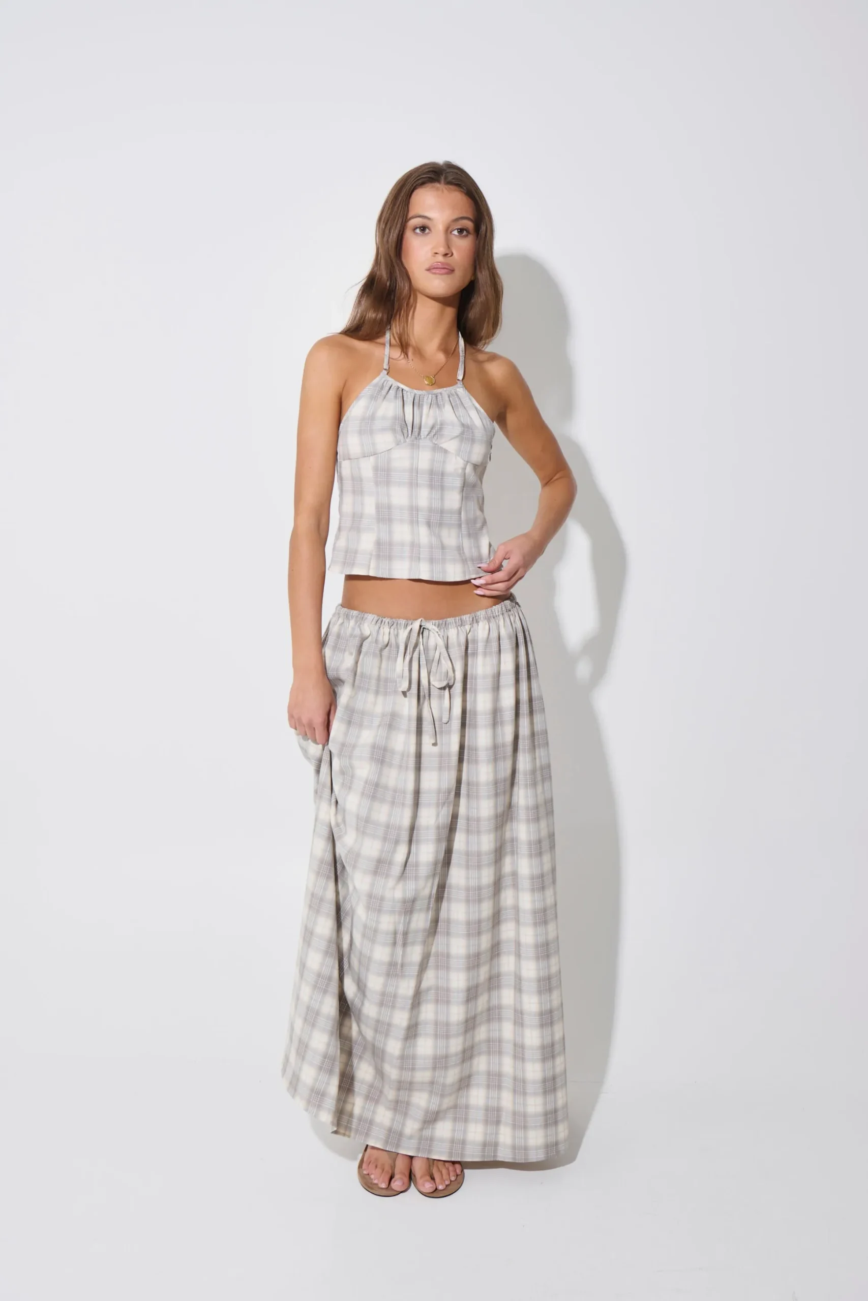 Prepared for your next getaway? The Sweet Escape Maxi Skirt offers a flattering fit with a low-rise design—choose a size smaller for a mid-rise look. It features a comfortable drawstring waist and is crafted from a blend of 80% polyester, 16% viscose, and 4% elastane, ensuring both style and ease. This item fits true to size.
