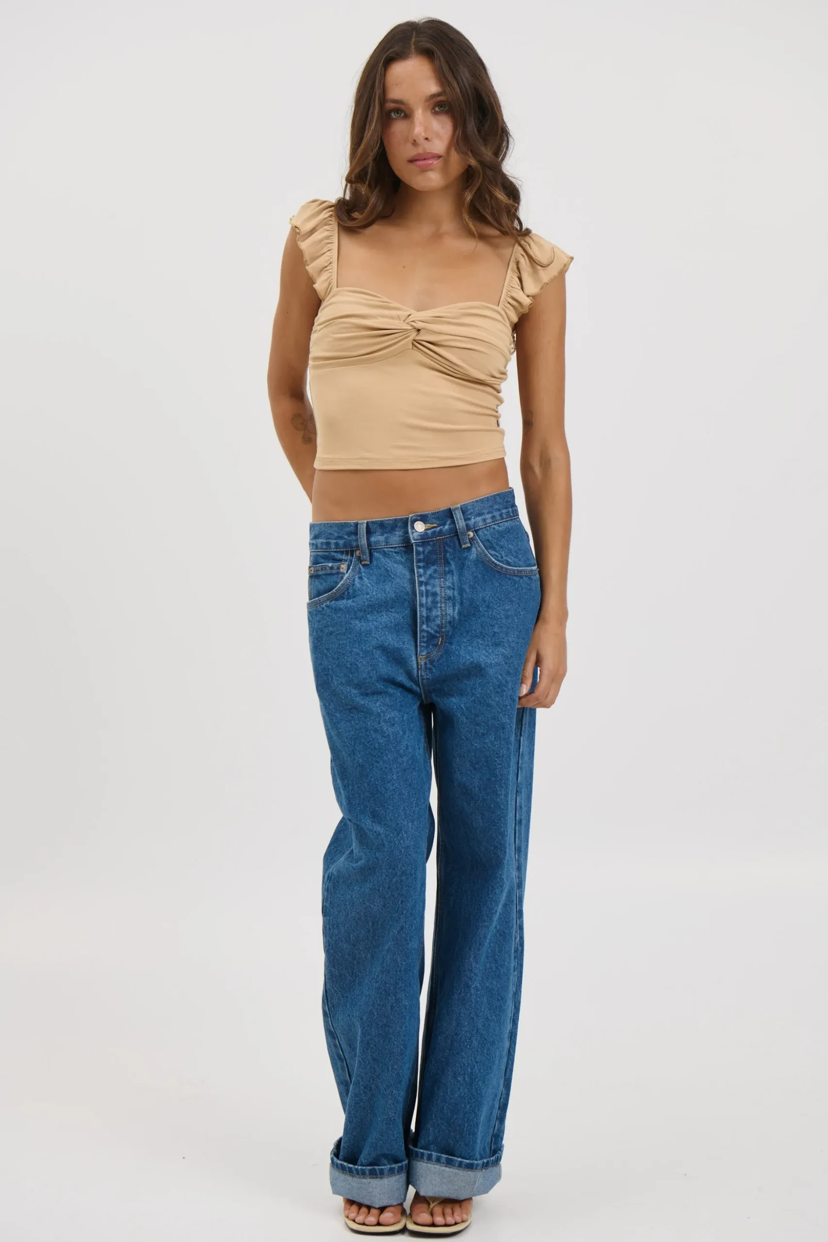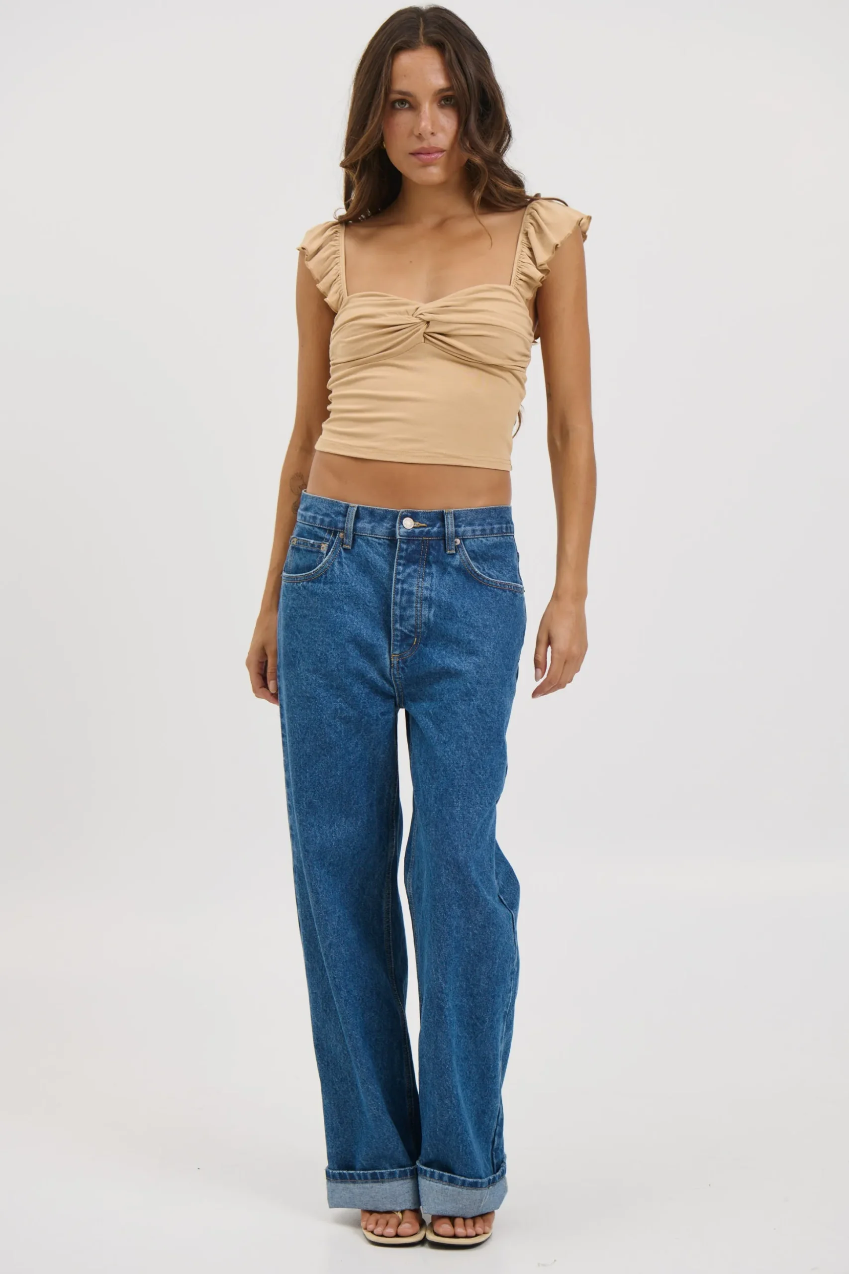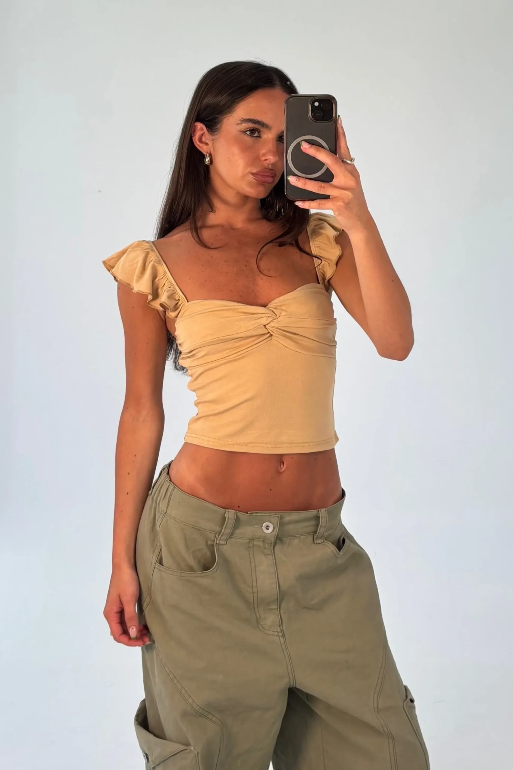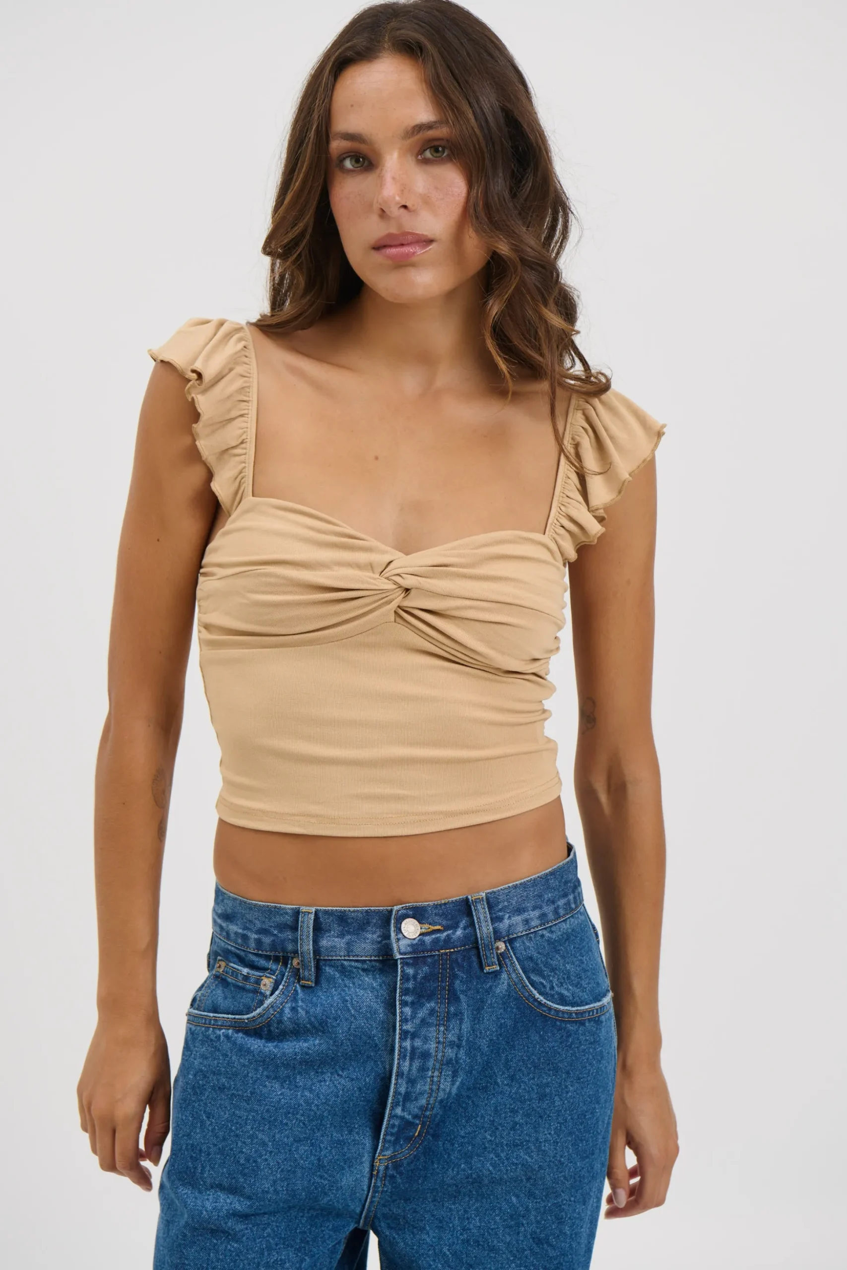 Meet the Tiffany Top, features a flattering cropped length and charming frilled straps that add soft, playful detail.