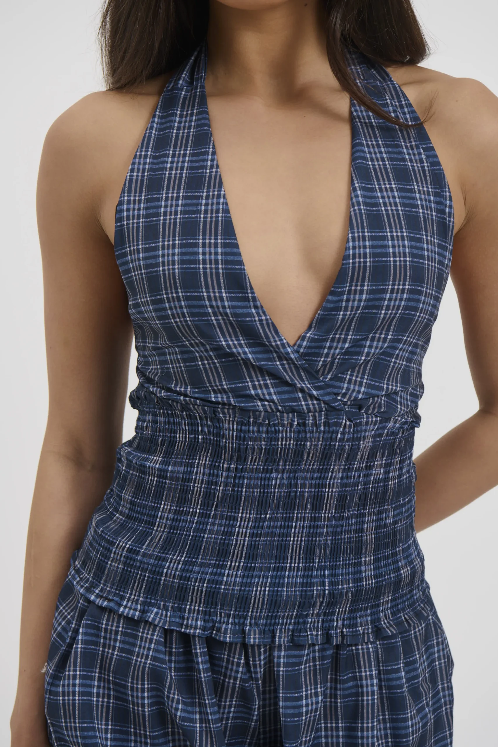 Meet the Alessandra Top, Turn heads in this flattering halter top, designed with a tie-up halter neckline and a plunging V-cut front. Crafted from a soft, stretchy fabric, it features a shirred waist that cinches for shape while maintaining a comfortable fitted feel. Pair with the Alessandra Short for a fun fit.