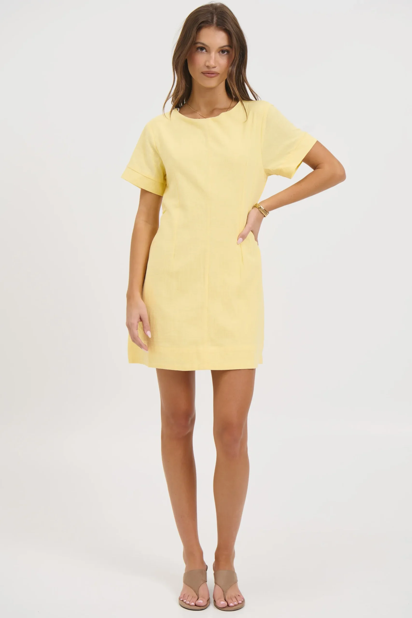 Meet the Amy Mini Dress, Featuring a casual silhouette with a playful twist, this dress is your new everyday go to. Crafted in a soft cotton and fully lined for added comfort, it offers an easy over the head design for effortless wear. The adjustable tie neckline adds a touch of charm while allowing for a customisable fit. Finished with handy pockets and a subtle flared hem.