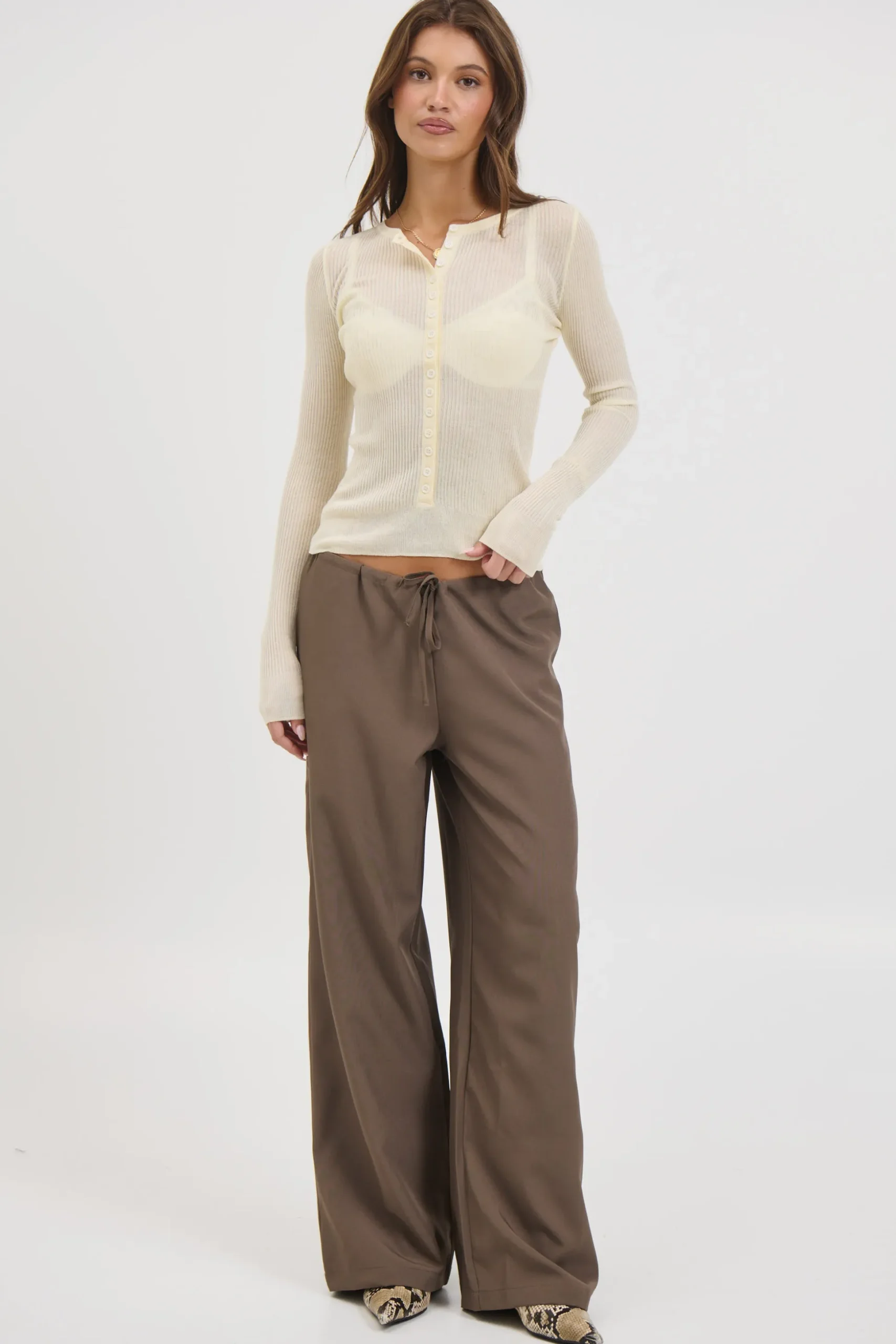 Meet the Analisa Sheer Top, Featuring a long sleeve top with a button-down low front, this piece combines effortless style with a hint of allure. Crafted from sheer, lightweight material, it offers a delicate, airy feel while maintaining a relaxed henley-inspired look. Perfect for layering or wearing on its own.