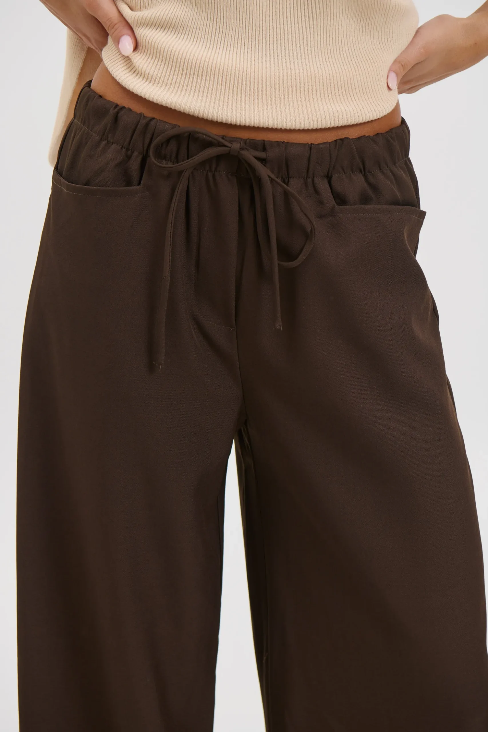 Meet the Aubrey Pant, Featuring a wide-leg silhouette, these pants are designed with an elasticated waistband and adjustable tie for a comfortable fit. Complete with side pockets and back pockets, they’re a versatile piece that blends practicality with effortless style.