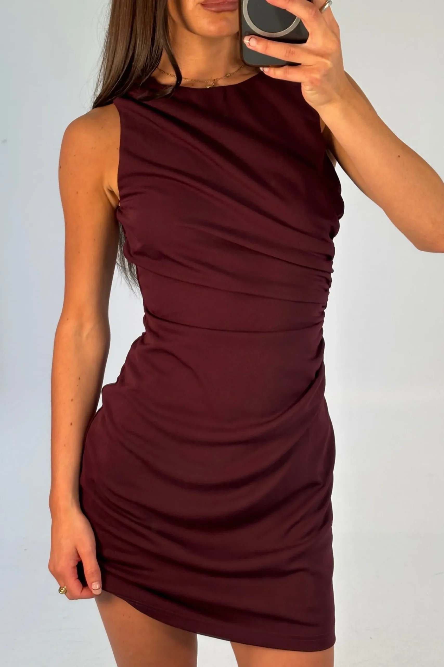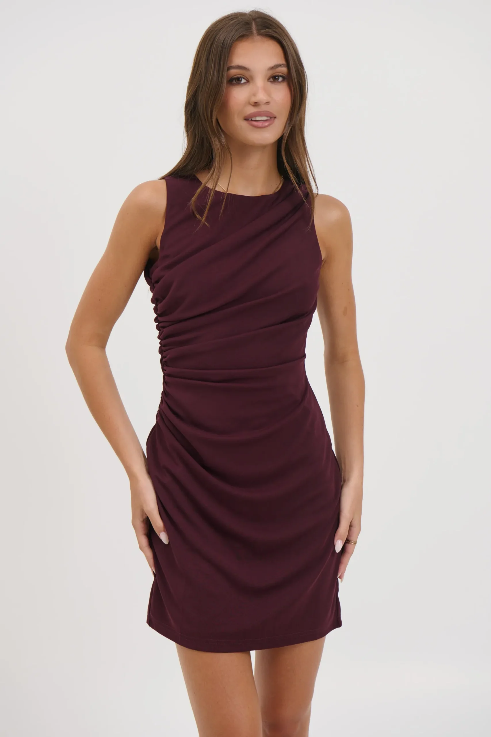 Meet the Avalee Mini Dress, Featuring an elegant, simple design, this mini dress is crafted to flatter with its fitted silhouette. Sleeveless and designed with a high neck, it offers a sophisticated touch, while delicate draping details add movement and refinement.