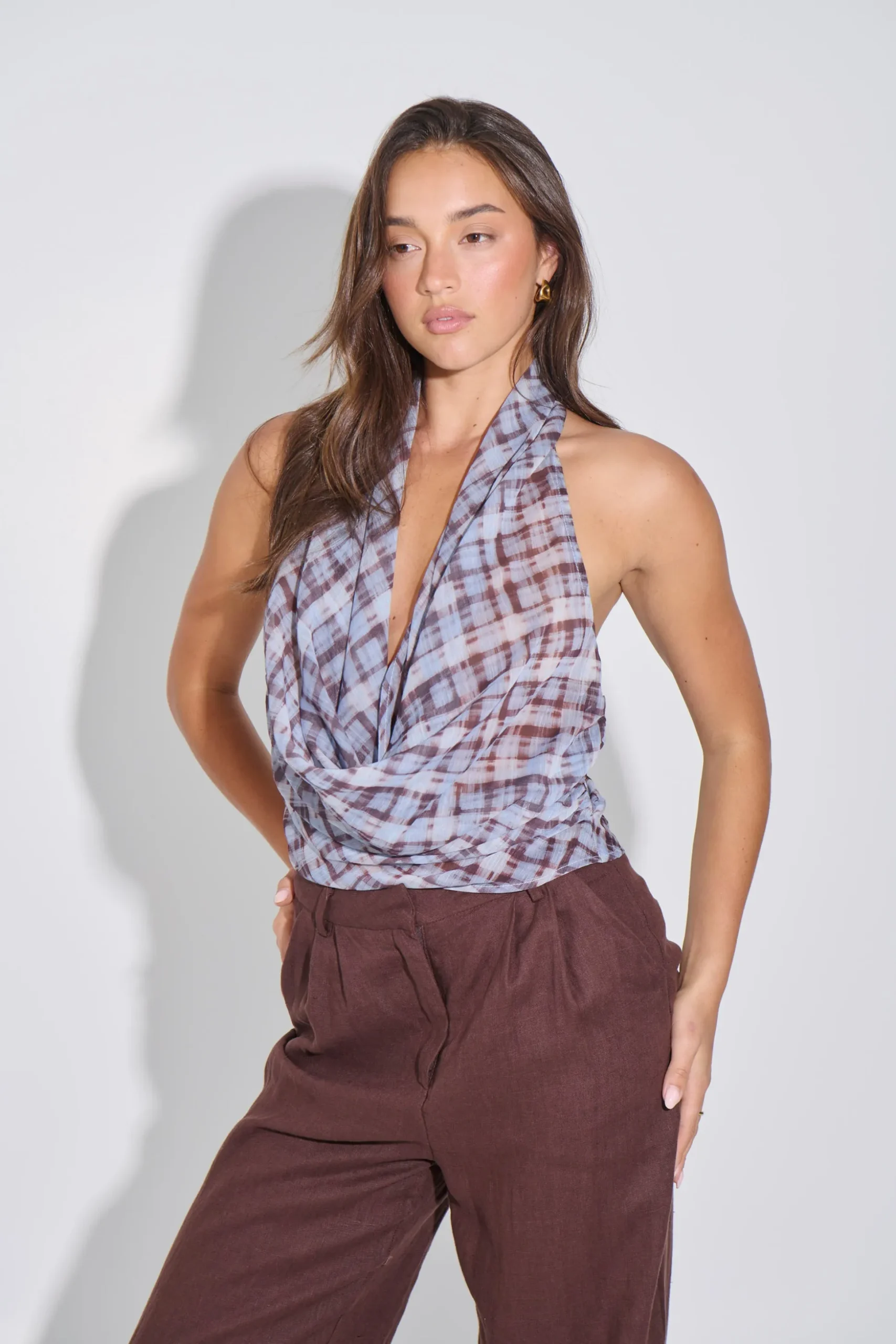 Meet the Bambi Halter, Featuring a halter neckline and soft cowl drape, this women’s top is crafted from a mesh material for a sleek, lightweight feel with just the right amount of coverage. The fluid silhouette flatters the neckline while offering a modern, elevated finish.
