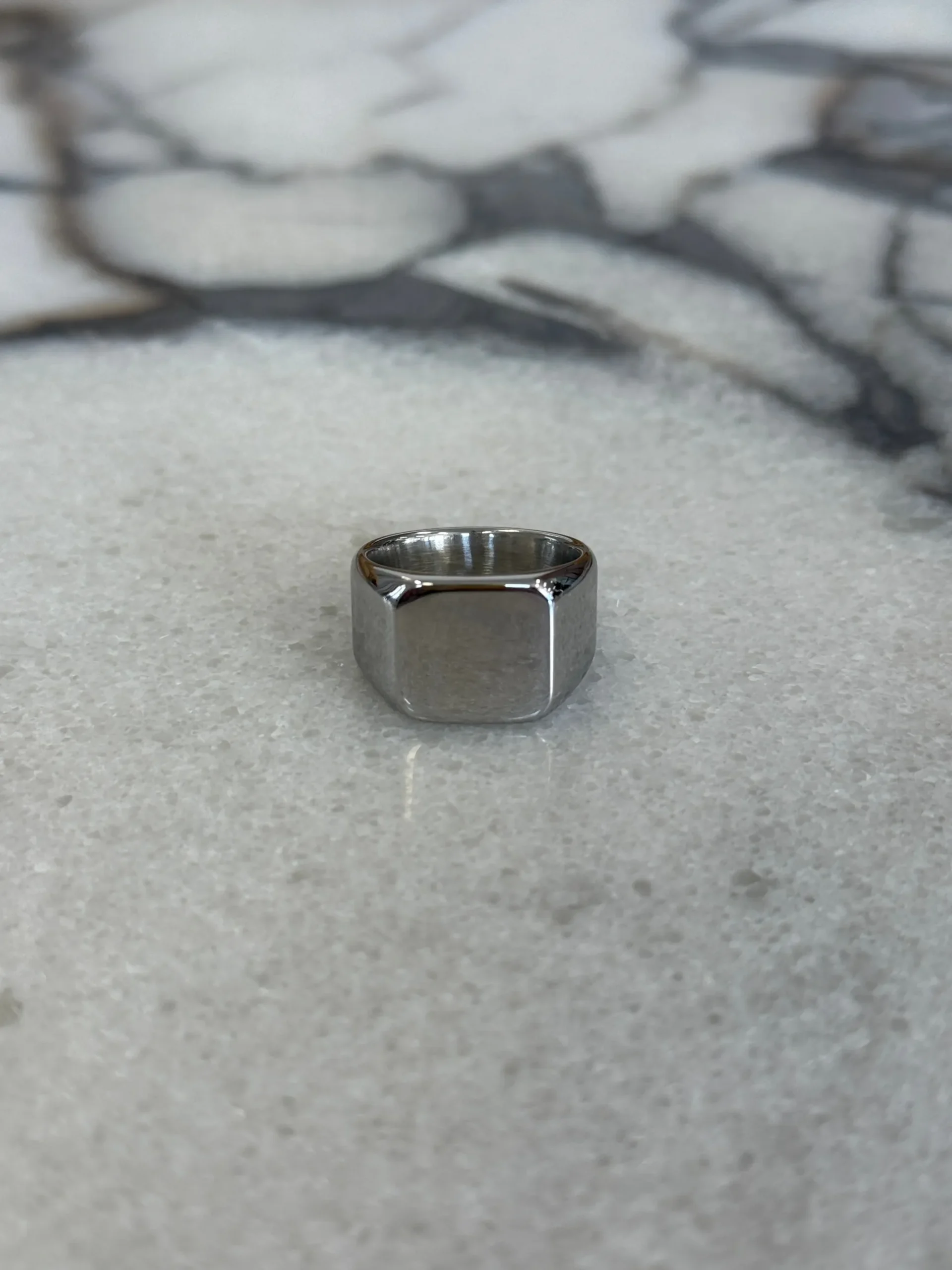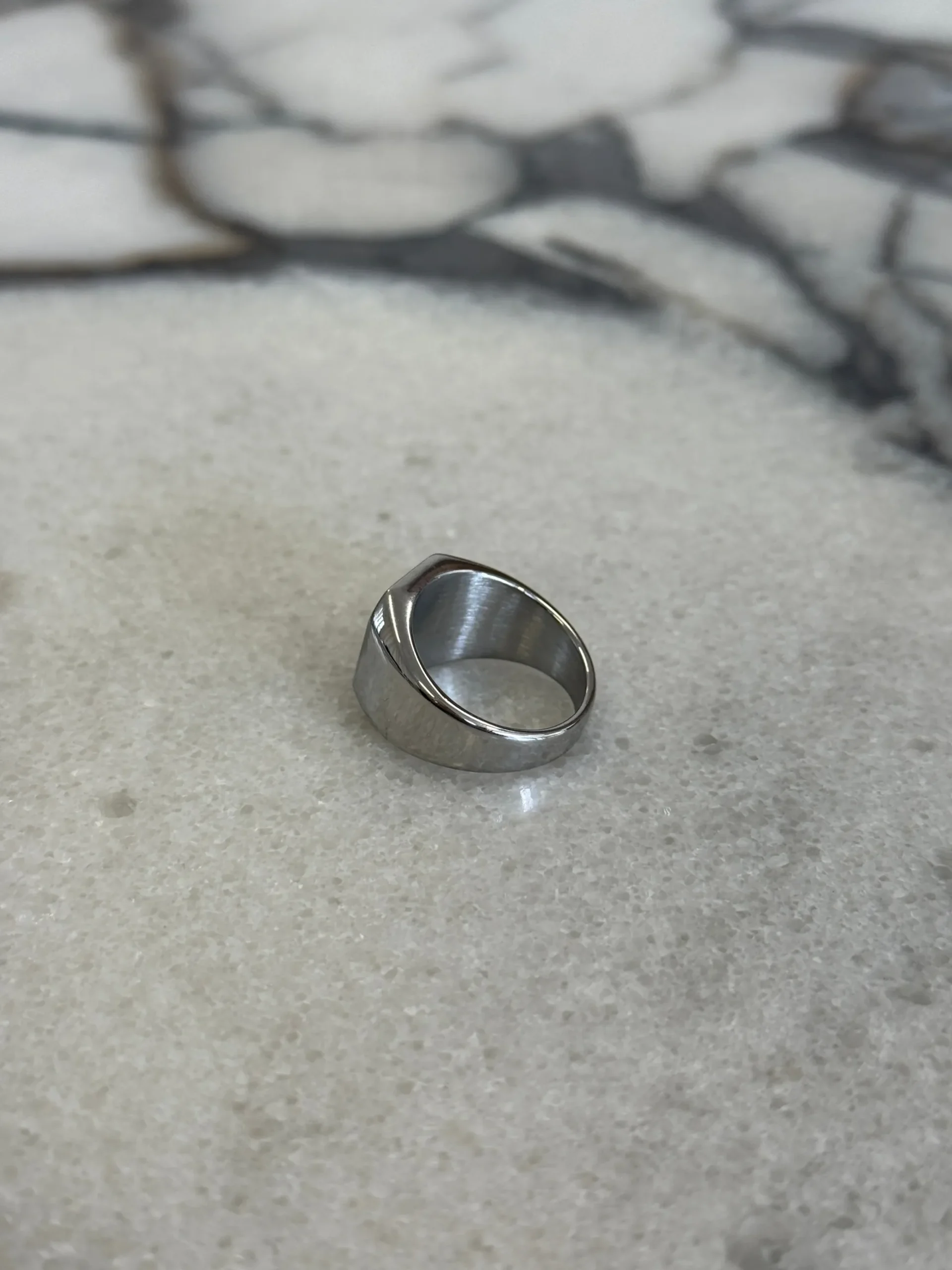 The Bold Signet Ring, crafted with a chunky silhouette and smooth detailing for a timeless accessory designed to elevate everyday looks.