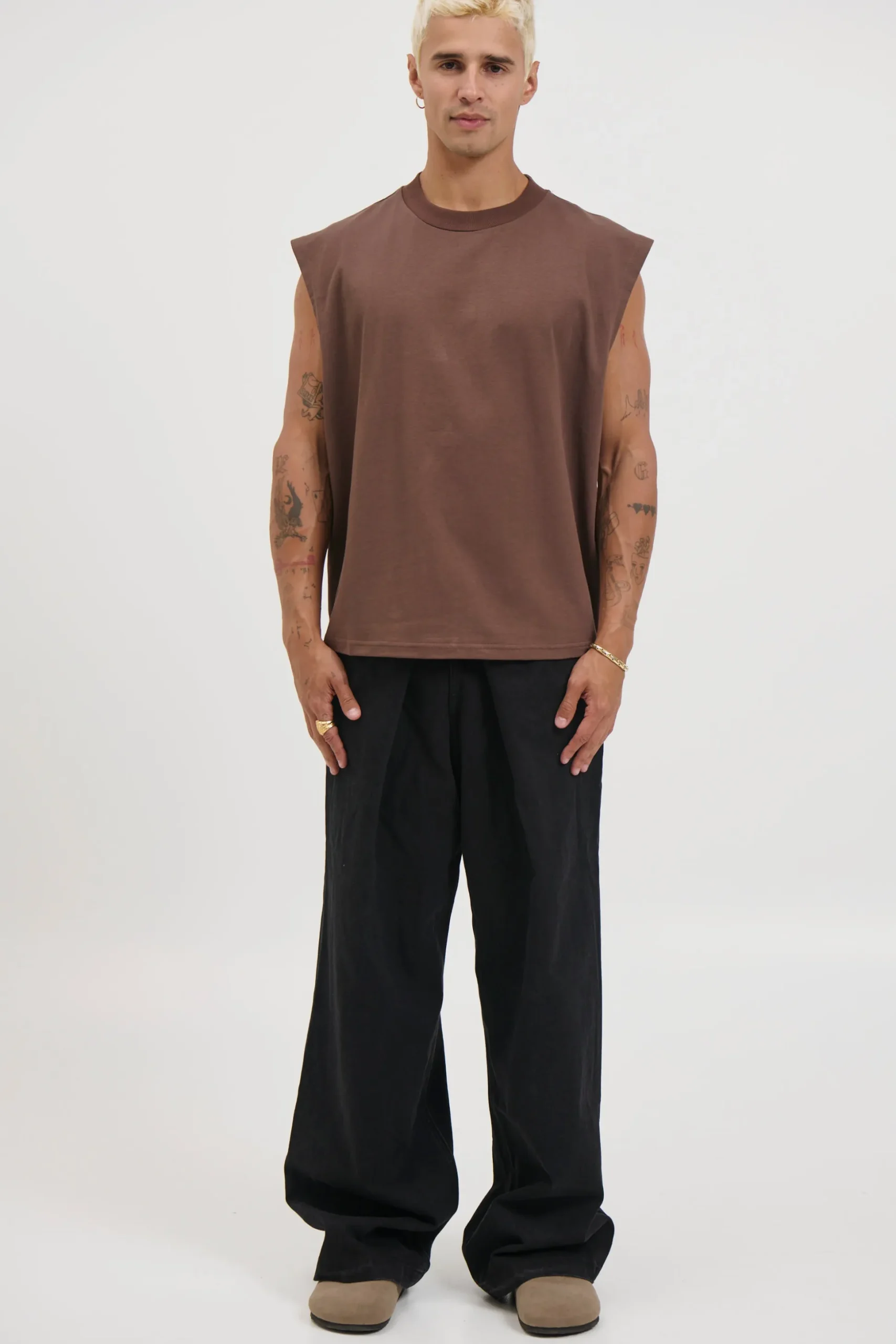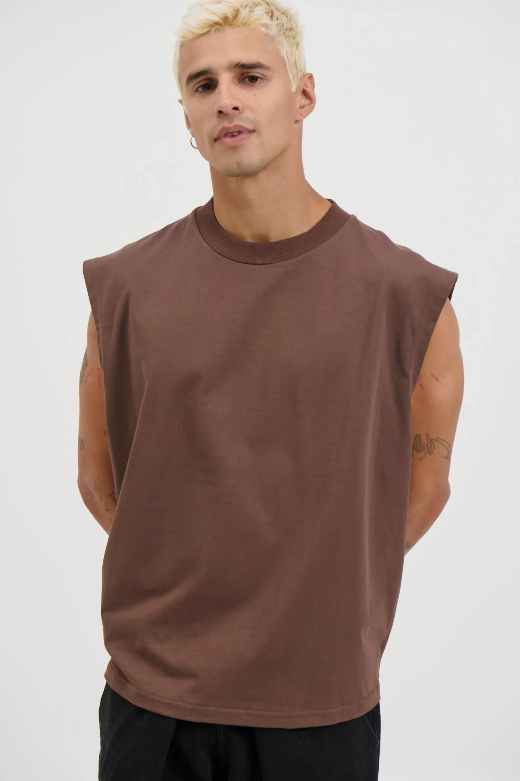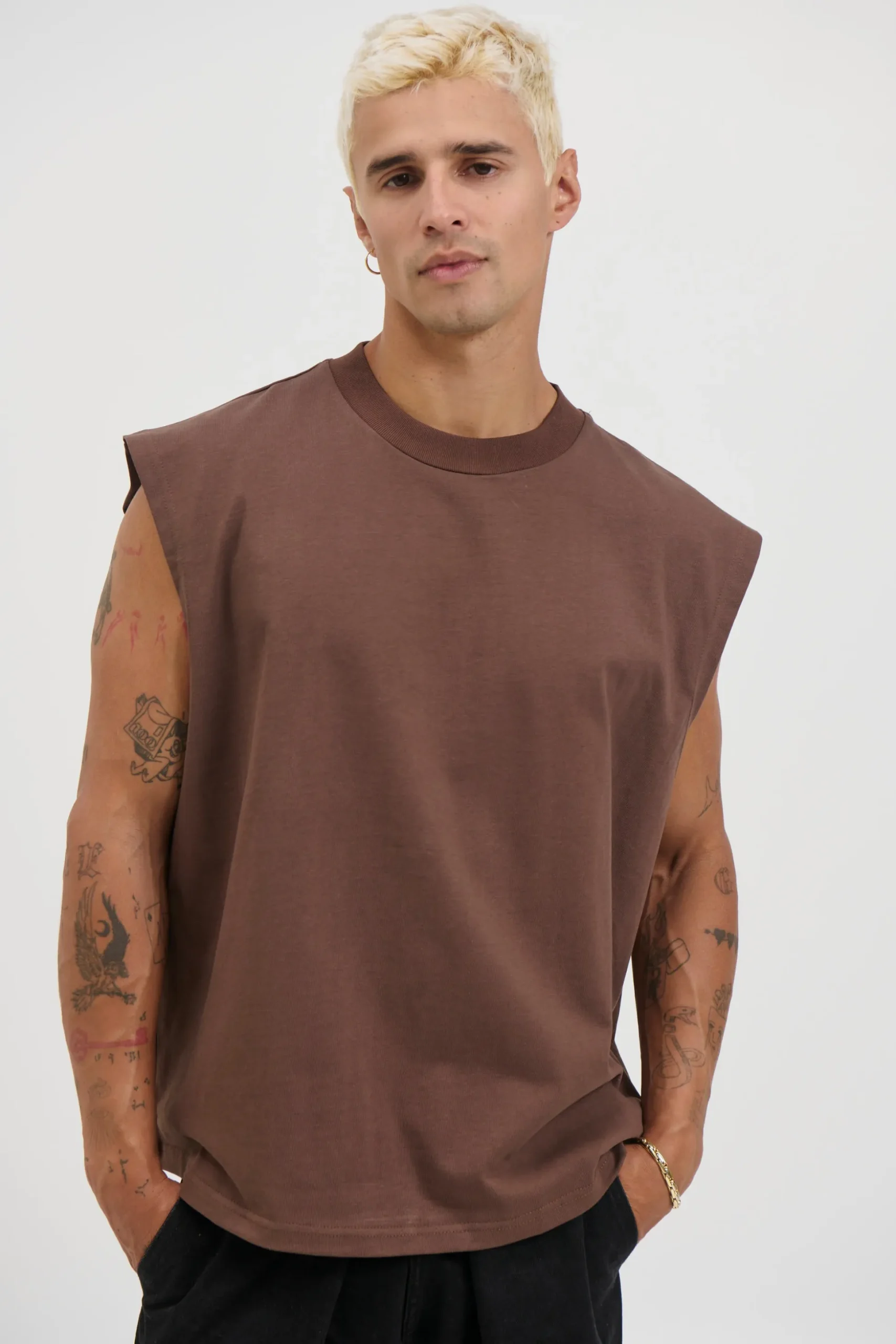 The Callin Crop Tank, Features a crew neck, drop shoulders, and a slightly oversized fit for a relaxed, modern look.