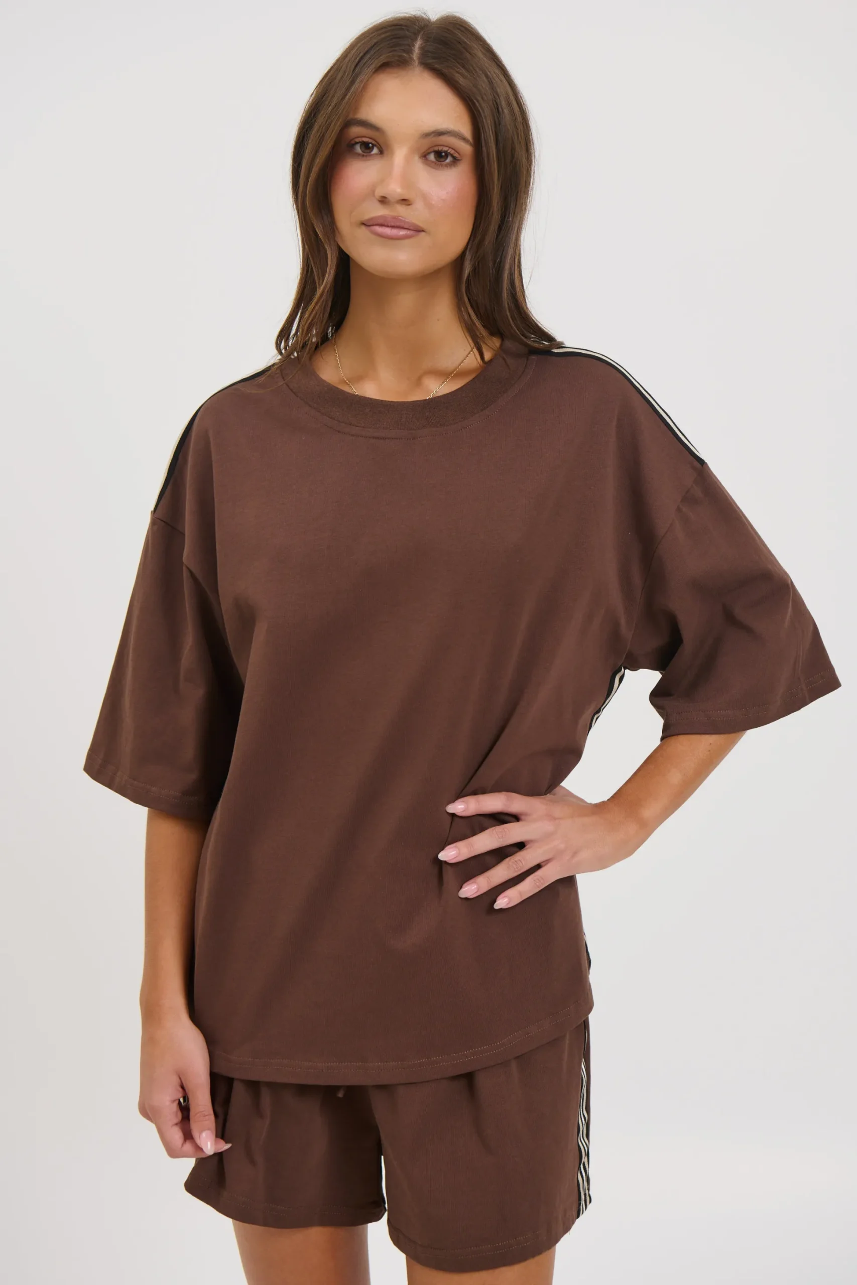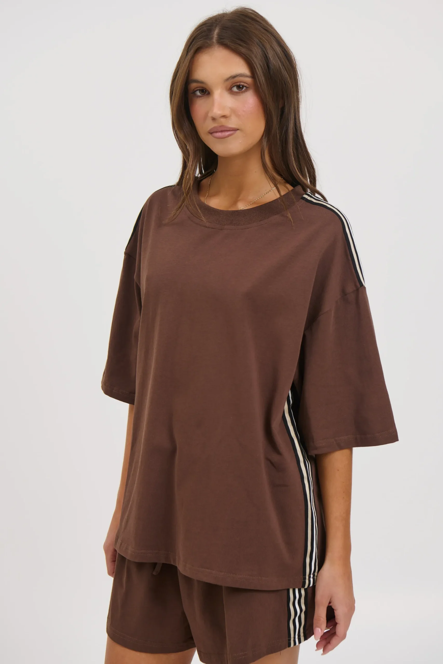 Meet the Charly Top, this oversized tee features soft cotton fabric with sporty stripe detailing down the sides. Designed for a relaxed fit and effortless comfort. Pair with the matching shorts for a coordinated look.