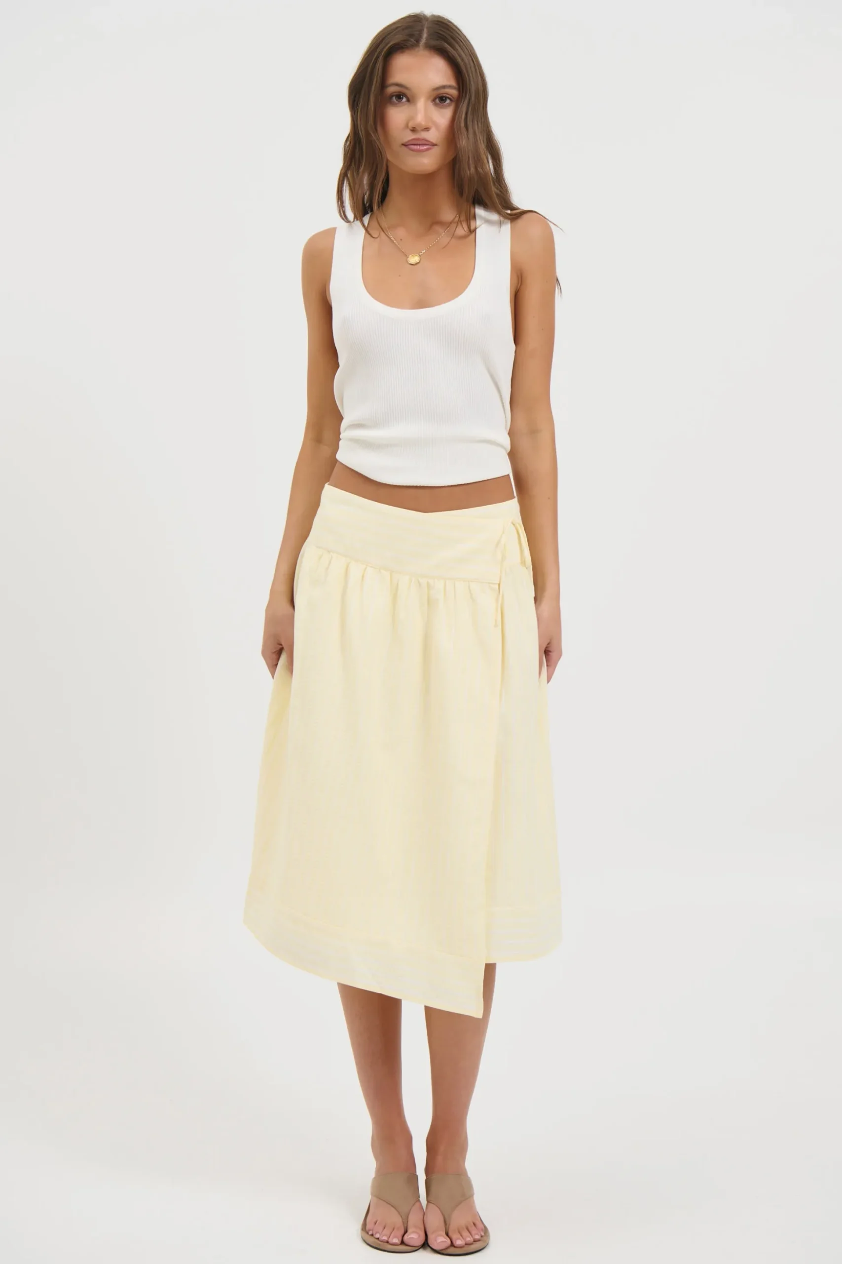 Meet the Chase Midi Skirt, features a comfortable smooth waistband and a flattering A-line silhouette with delicate pleated texture which is fully lined. The wrap-inspired design comes with an adjustable tie closure, allowing you to tailor the fit to your shape.