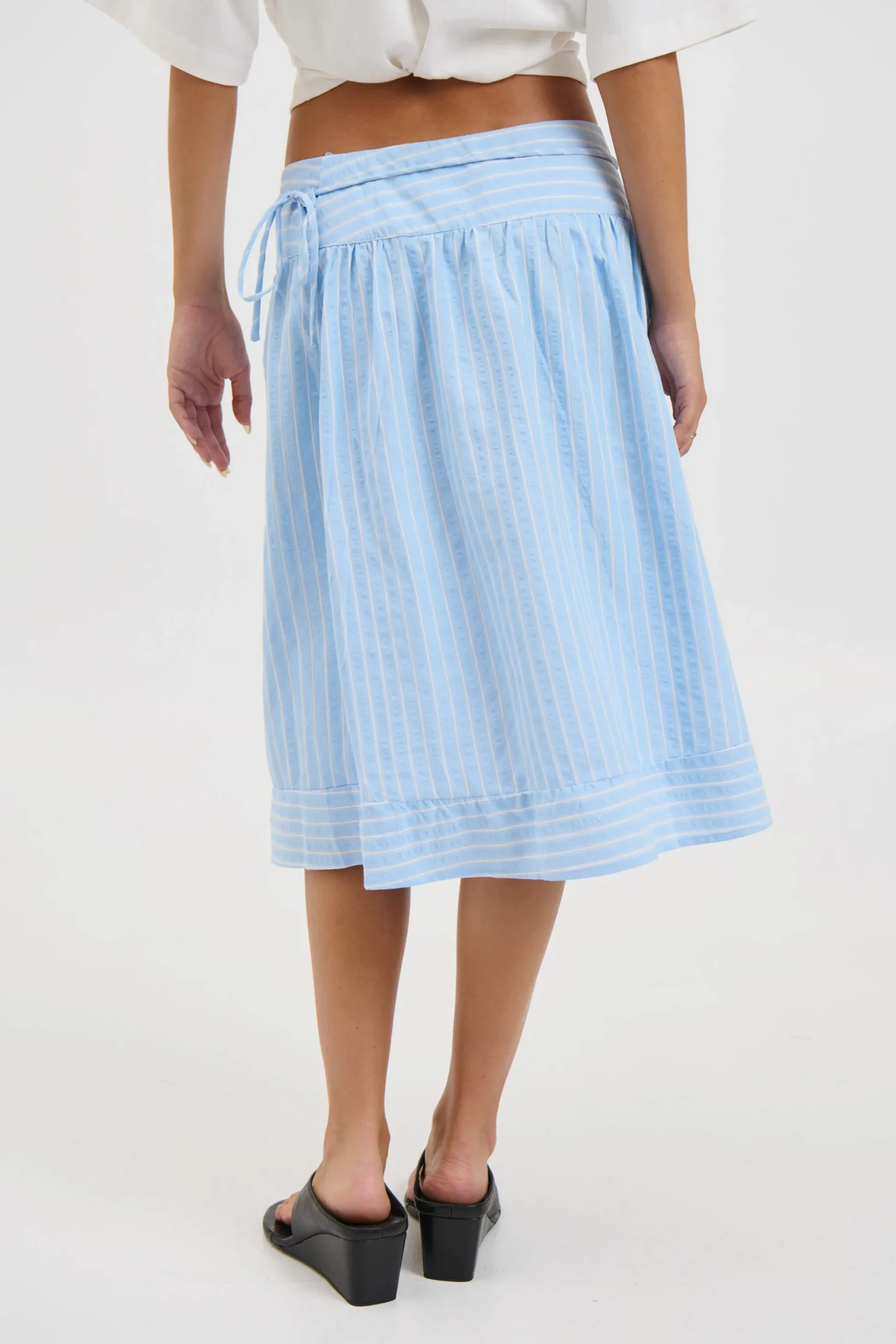 Meet the Chase Midi Skirt, features a comfortable smooth waistband and a flattering A-line silhouette with delicate pleated texture which is fully lined. The wrap-inspired design comes with an adjustable tie closure, allowing you to tailor the fit to your shape.