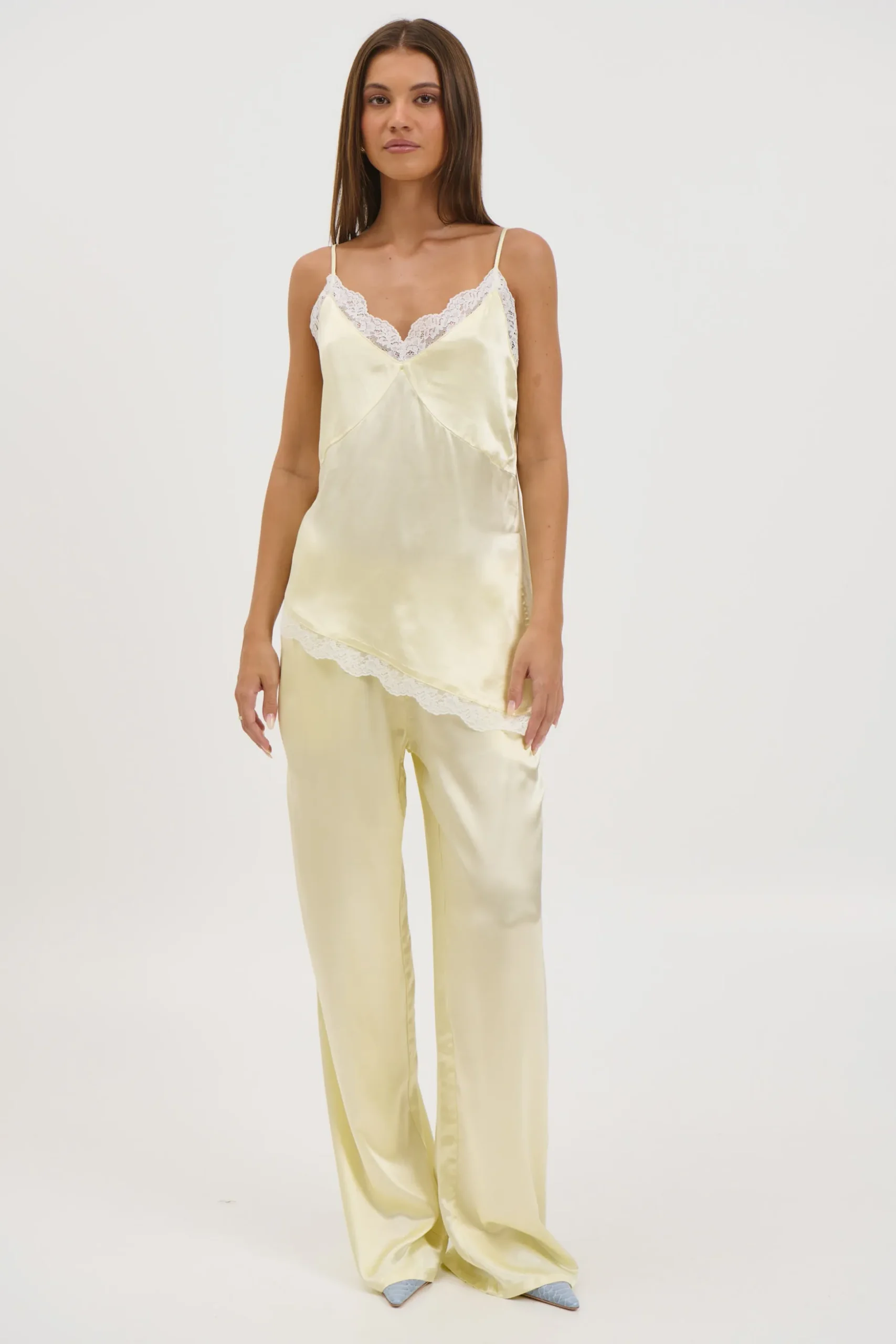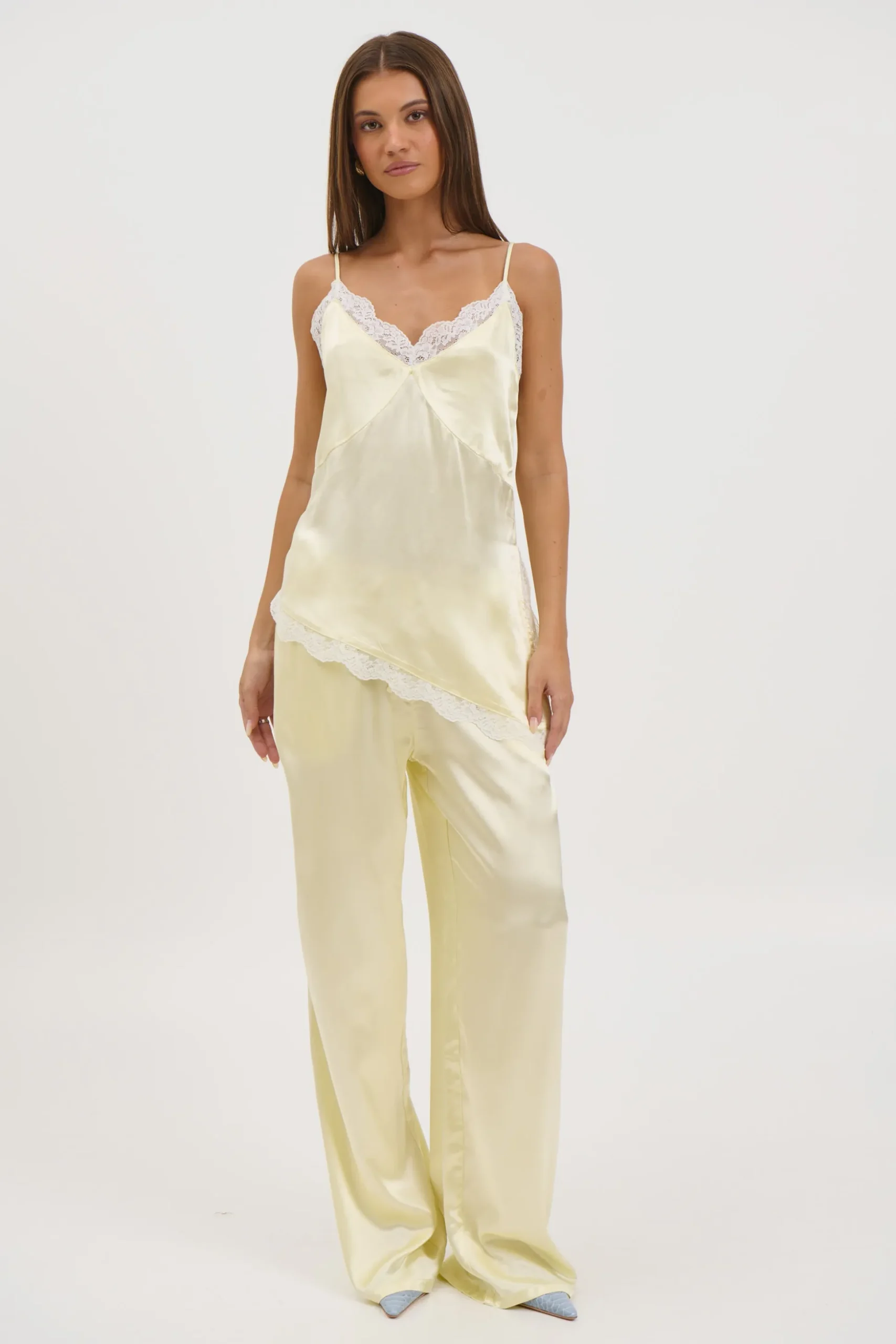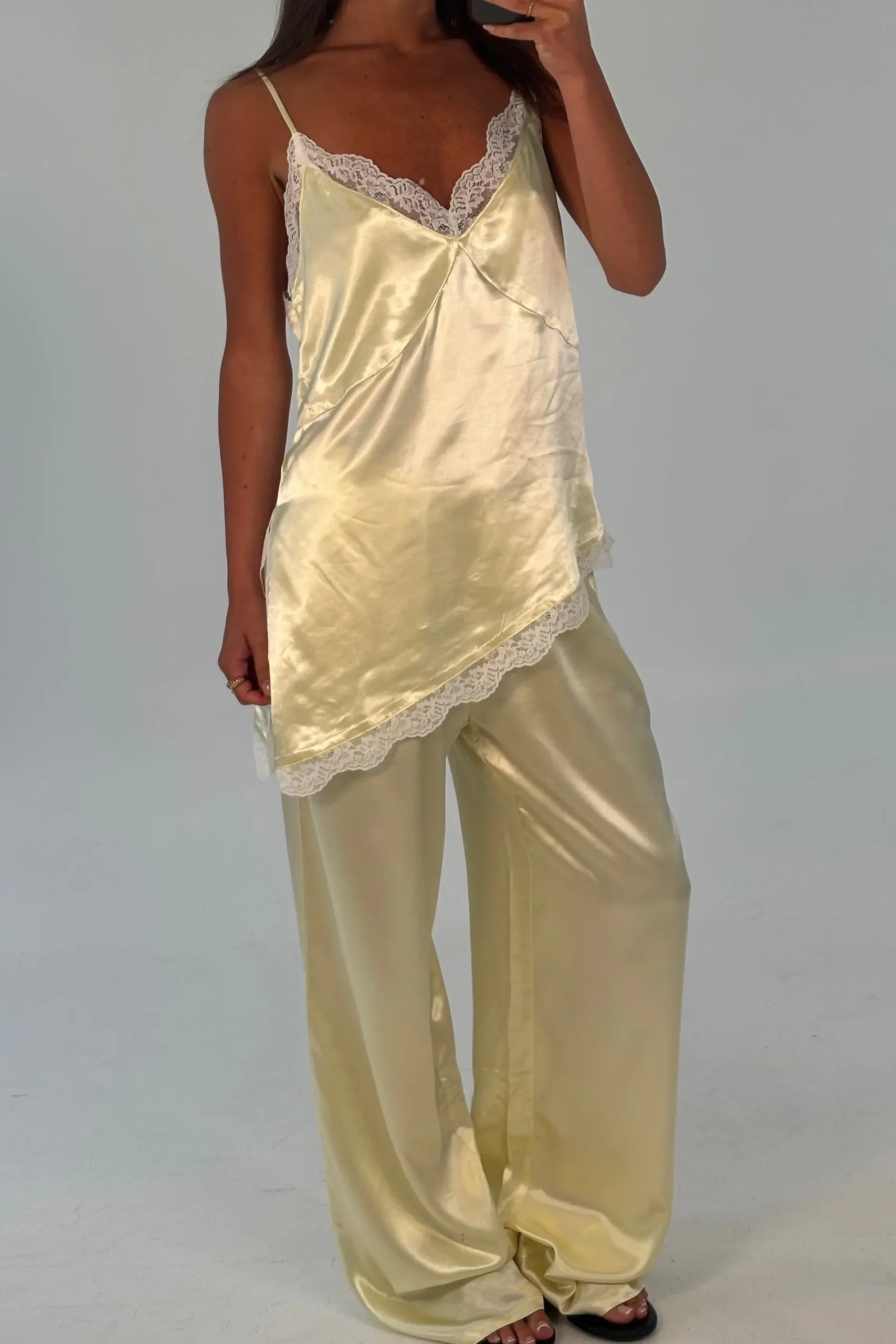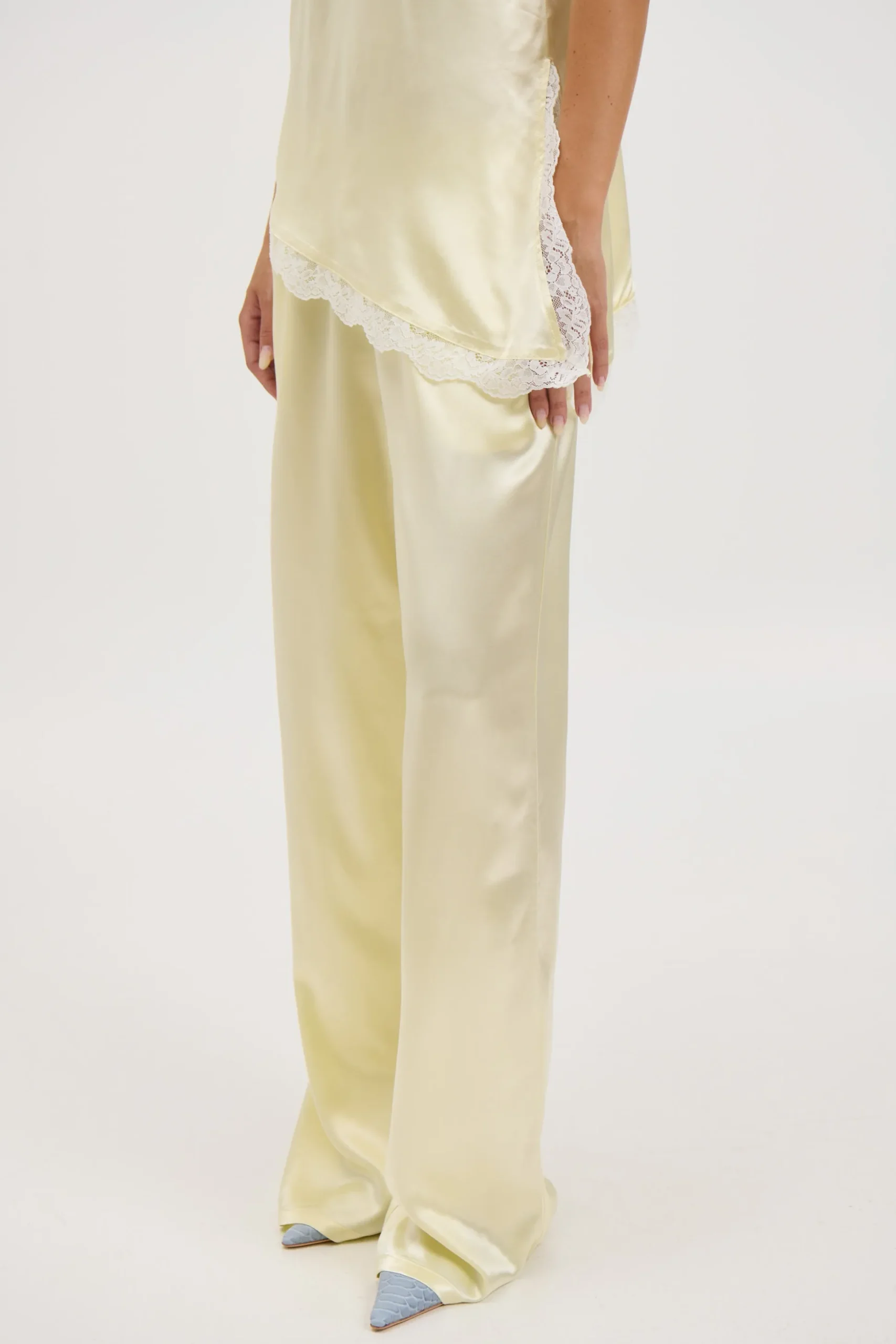 Meet the Dove Pant Sour Lemon, designed for comfort with a touch of refinement. The straight-leg silhouette drapes softly, offering relaxed movement from day to night. An adjustable drawstring waistline allows for a customisable fit, while side-seam pockets add practical everyday functionality. Unlined and slightly sheer, these pants deliver an airy, delicate feel.