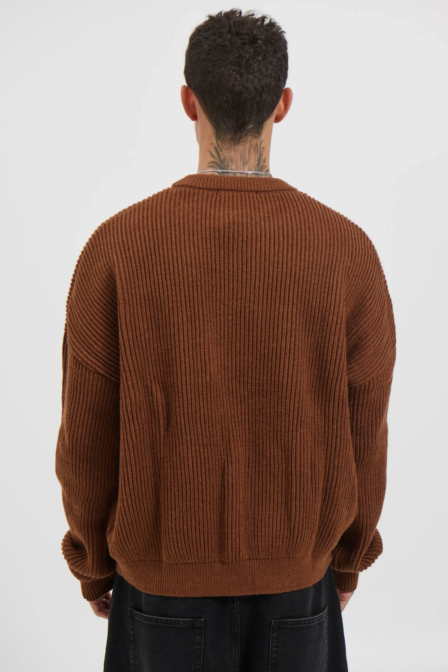 The Drop Sleeve Heavy Knit, Featuring a relaxed slouch fit and effortless drop shoulder silhouette, this knit delivers laid back comfort with a modern edge. Finished with ribbed cuffs and a classic crew neckline.