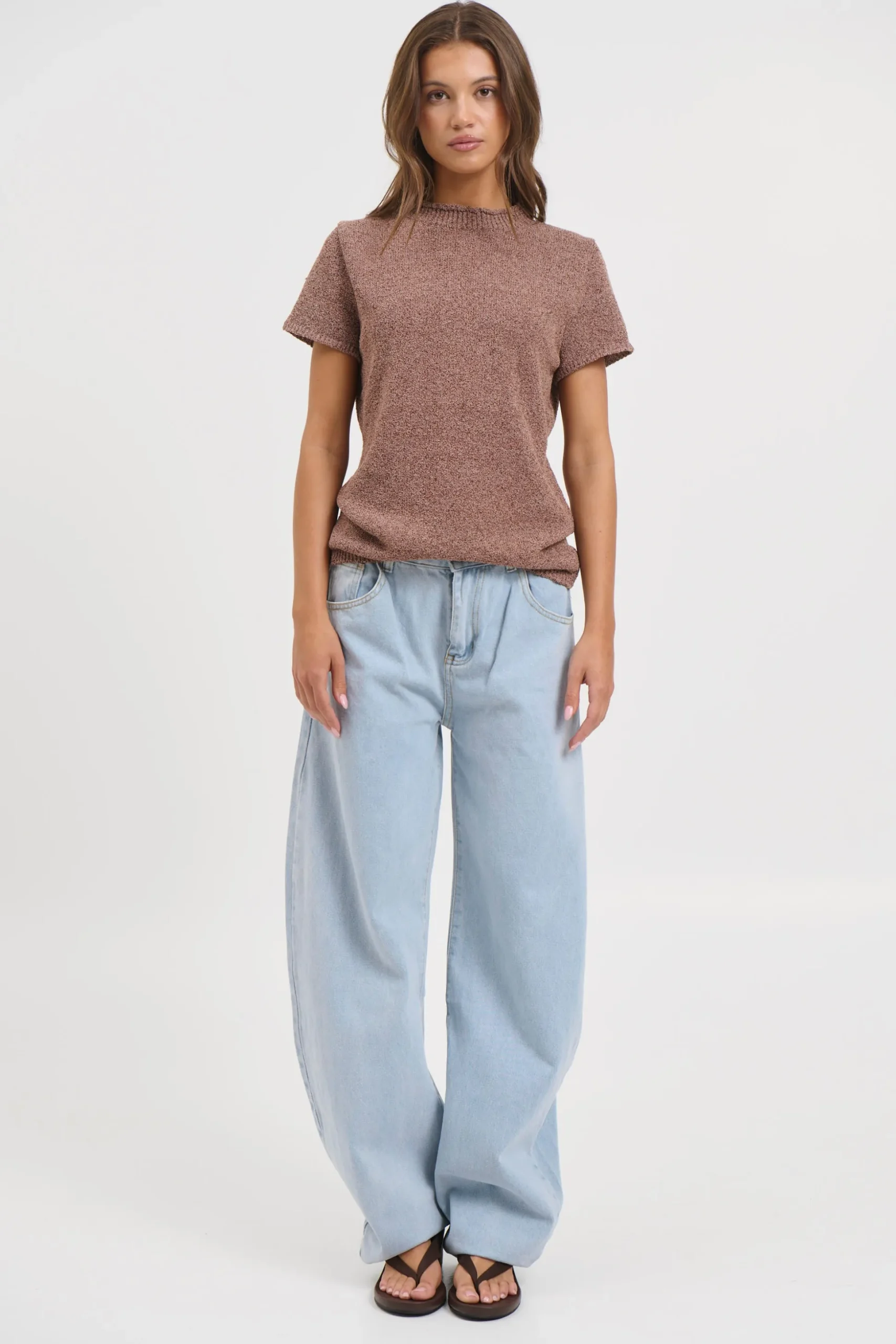 Meet the Effy Top, This relaxed-fit tee is crafted from a cozy blend of 70% acrylic and 30% polyester. The knit fabric adds subtle texture while offering lightweight warmth and all-day comfort. With its easy silhouette and versatile design, it’s perfect for layering or wearing solo.