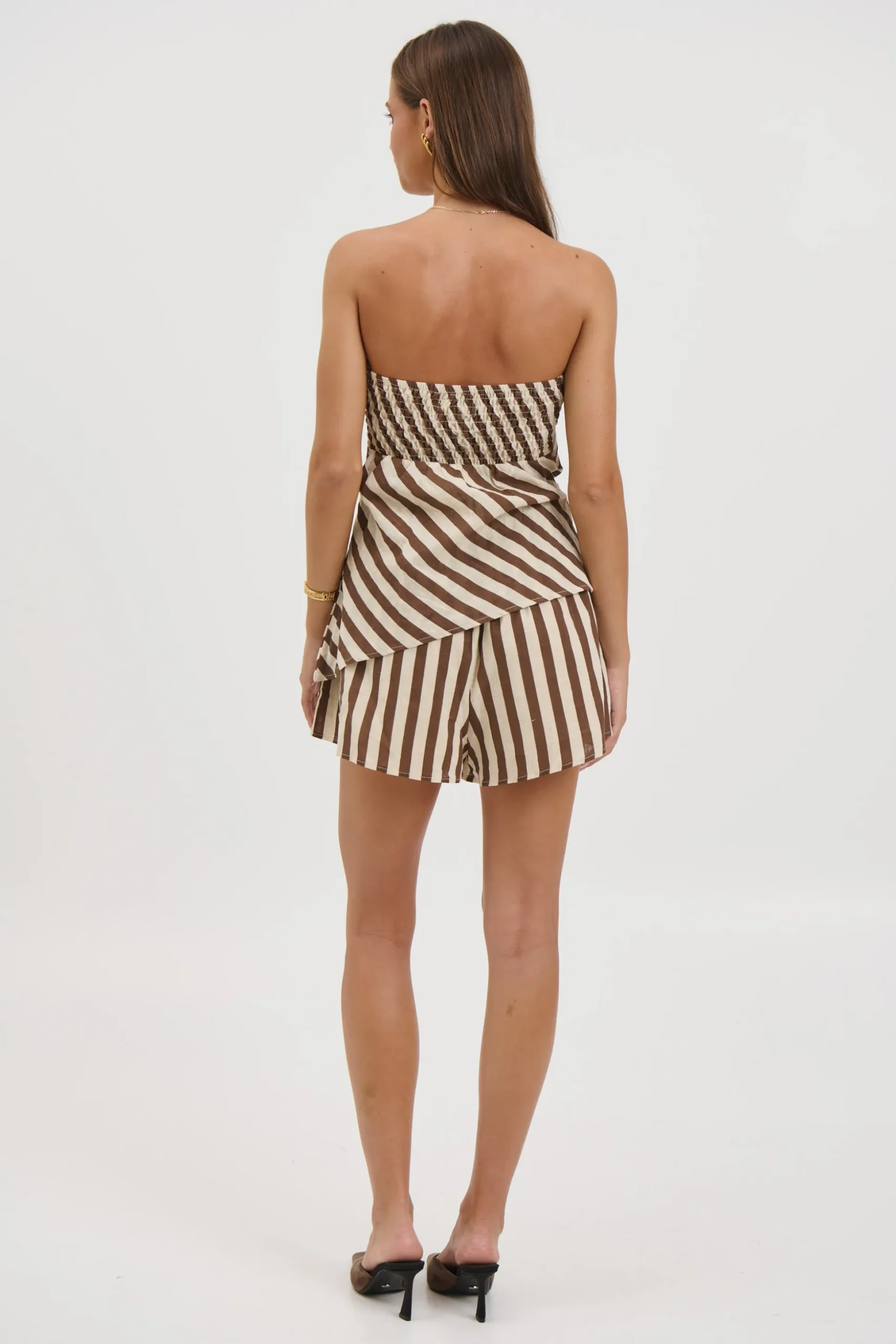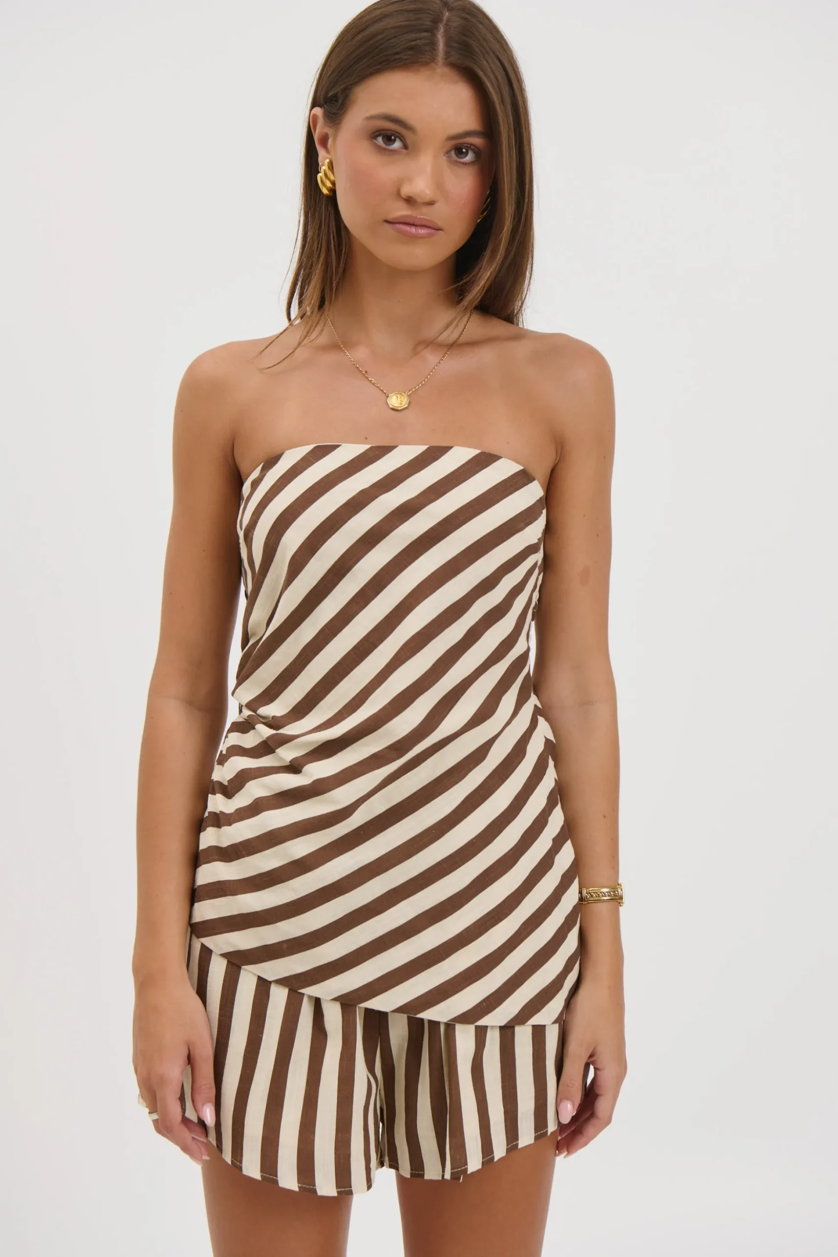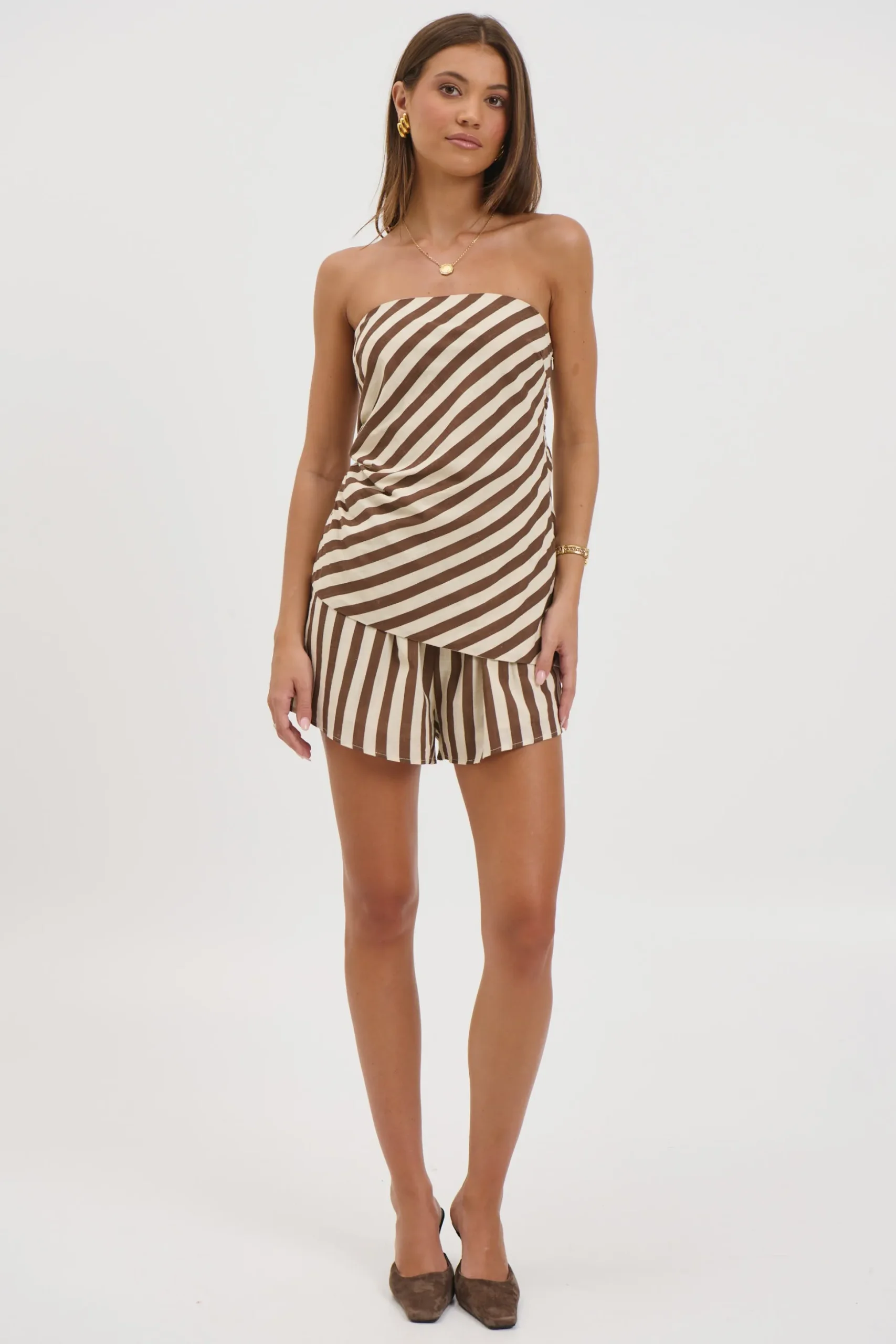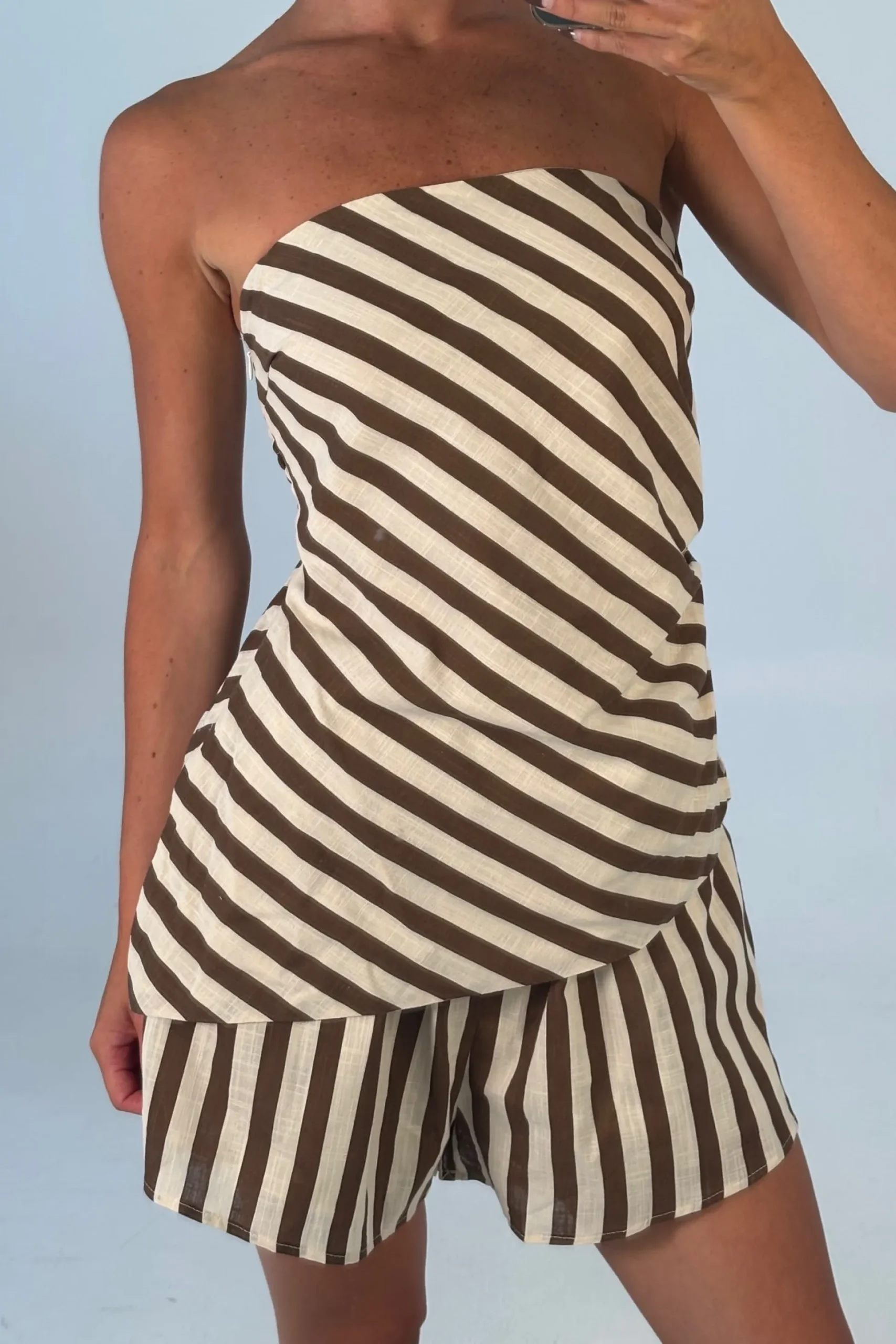 Meet the Erica Set, The top features a softly structured bodice that flows into a lightweight, airy hem, creating beautiful movement with every step. A discreet side zip closure ensures a secure, flattering fit. Paired with matching shorts designed with a comfortable elasticated waistband, this set blends ease with elegance.