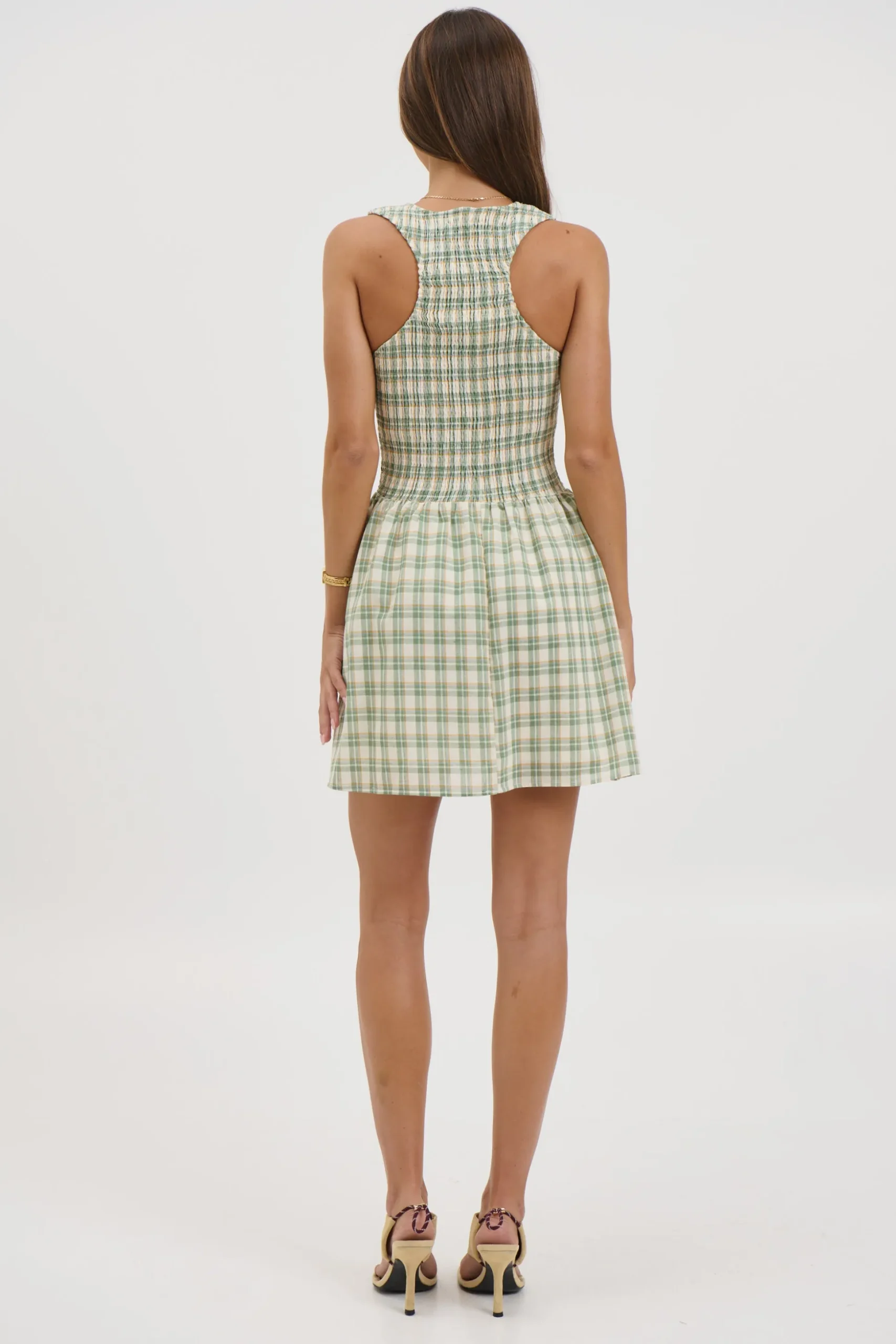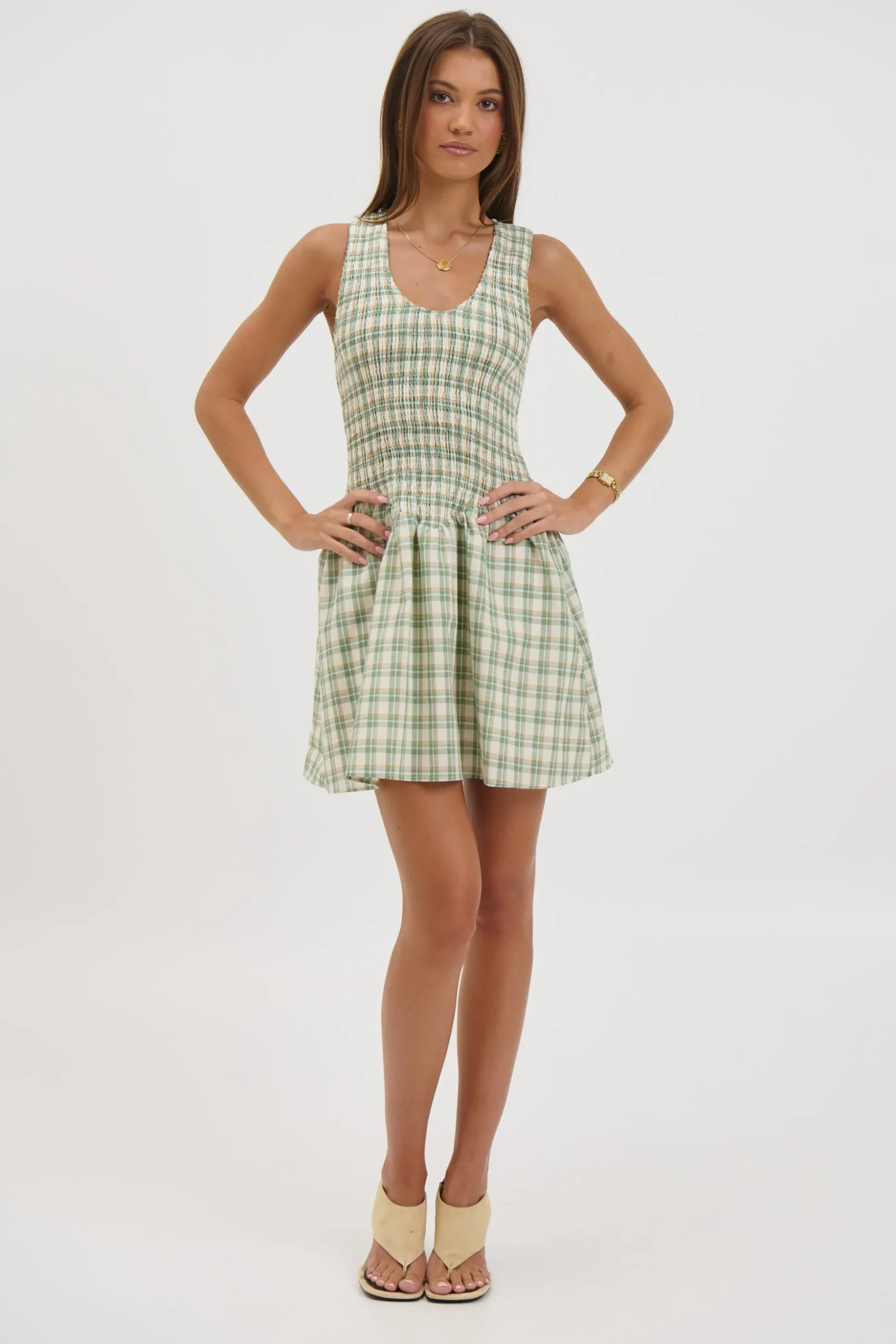 Meet the Essie Mini Dress, Featuring a flattering V-neckline and wide shoulder straps, the bodice is finished with smocked detailing that offers a comfortable, flexible fit while accentuating the waist. The dress flows into a softly gathered skirt, creating a relaxed and airy silhouette. Finished in a classic plaid pattern, this piece is perfect for warm-weather days, casual outings, or layered styling across seasons.