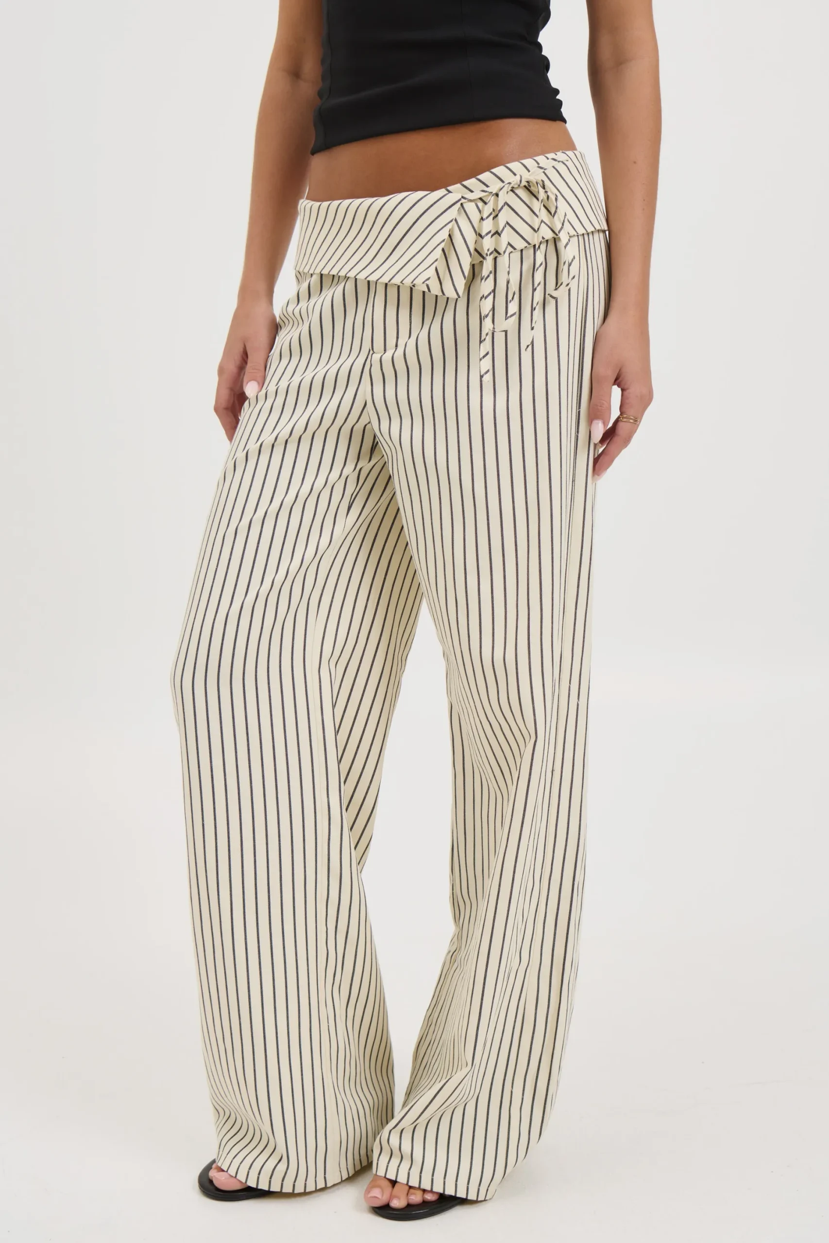 Meet the Gemma Pant, Featuring a straight-leg silhouette and an easy, relaxed fit, these pants bring effortless polish to everyday dressing. The fold-over waistband creates a flattering, layered look, while the adjustable tie-side detail lets you customise the fit.