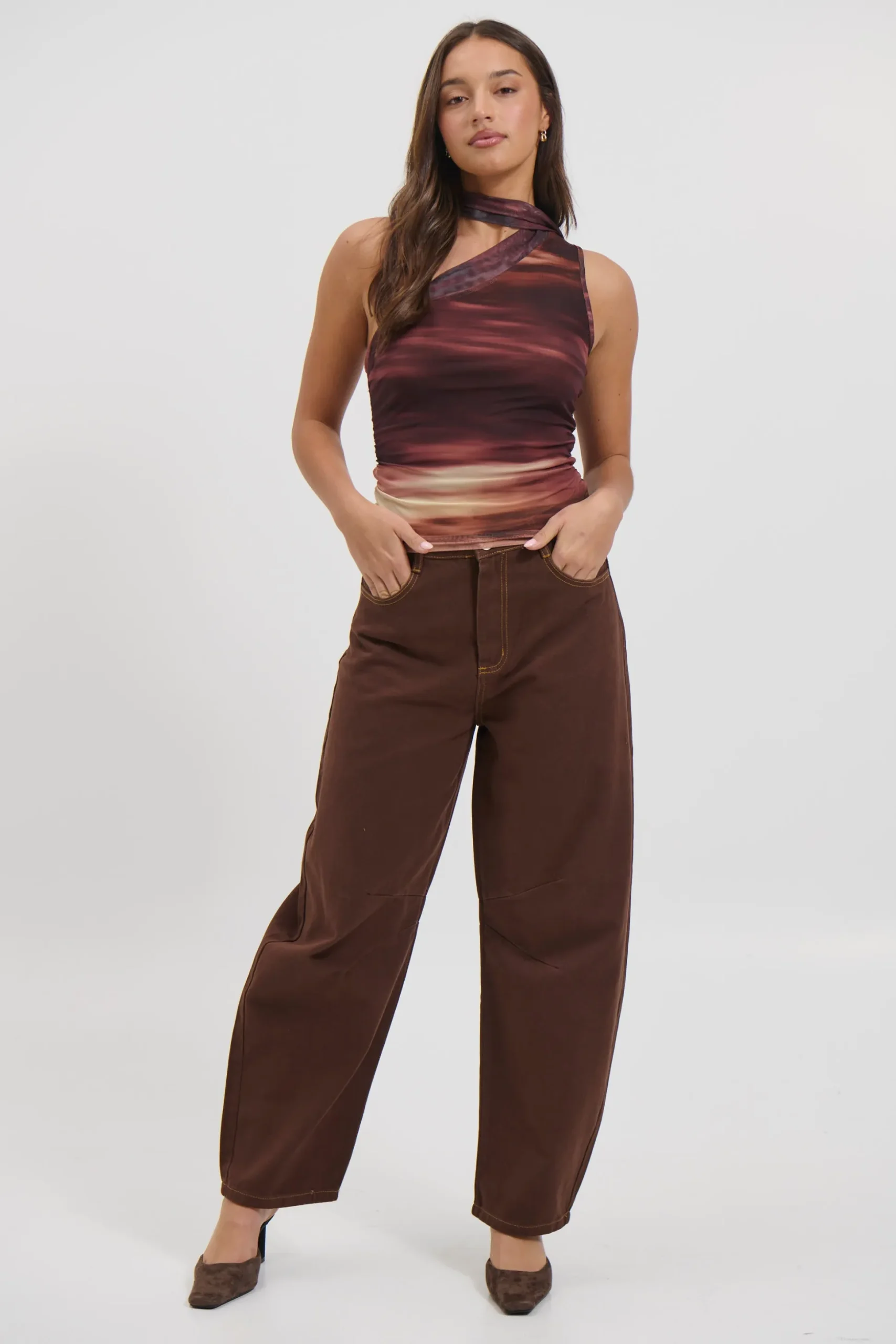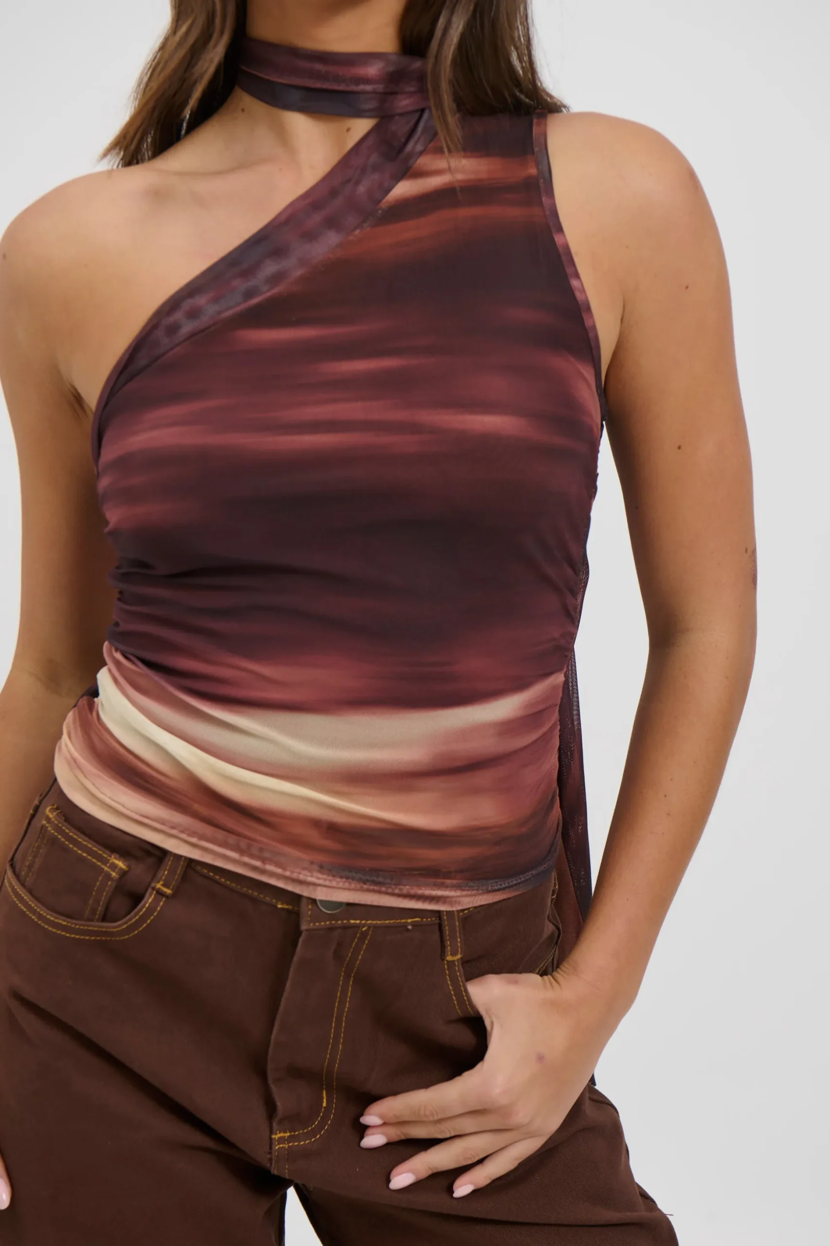 Meet the Isobel Top, Featuring a striking one shoulder top, crafted from sheer mesh and fully lined for coverage and comfort. Designed with a dramatic wrap-around scarf detail that adds a bold, elevated touch.