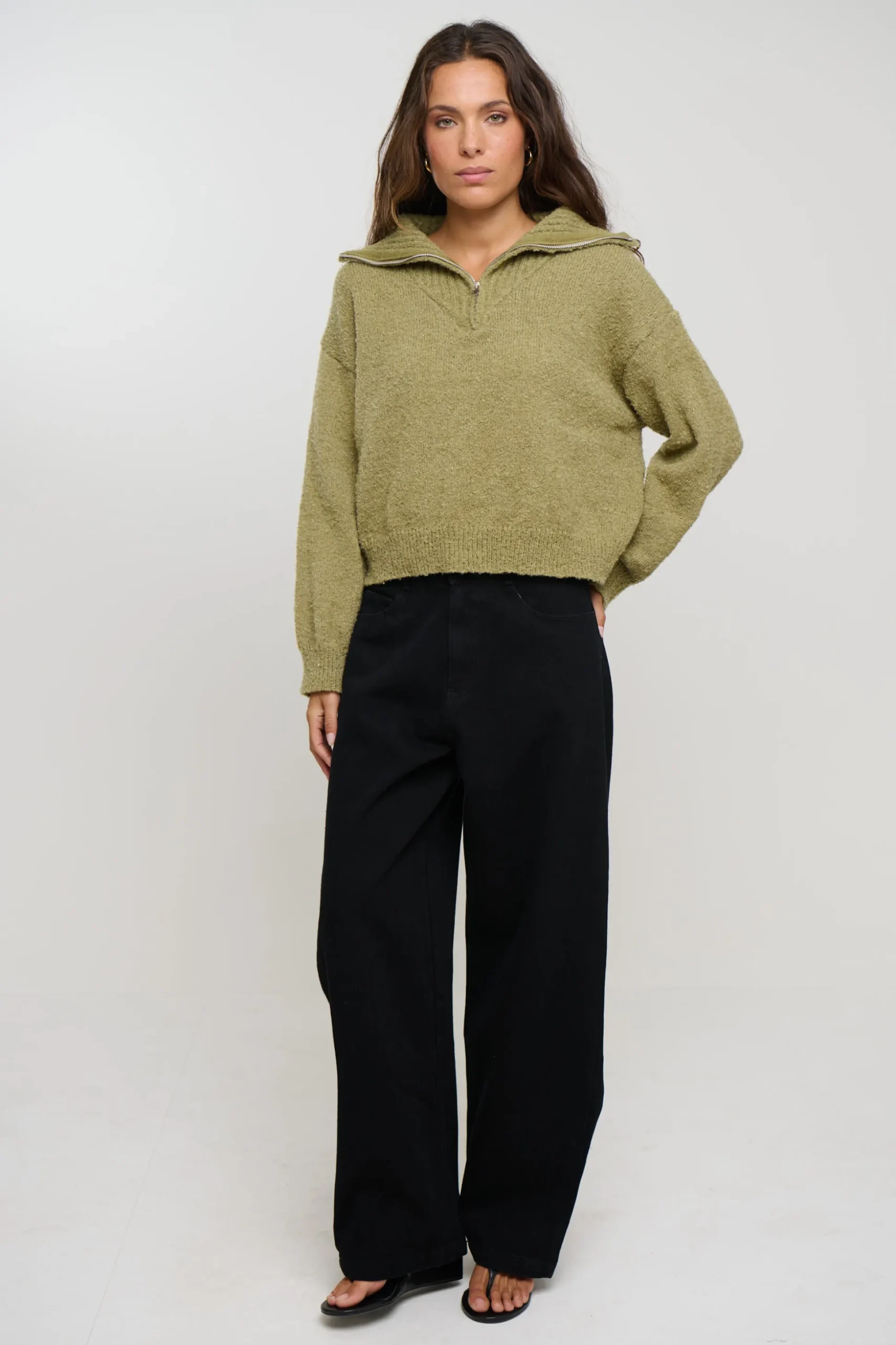 Meet the Jaidan Half Zip Jumper, A cozy essential for cooler days, this moss-coloured half-zip fluffy jacket blends comfort with effortless style. Designed with a soft, plush texture, it offers a warm yet lightweight feel that’s perfect for layering.