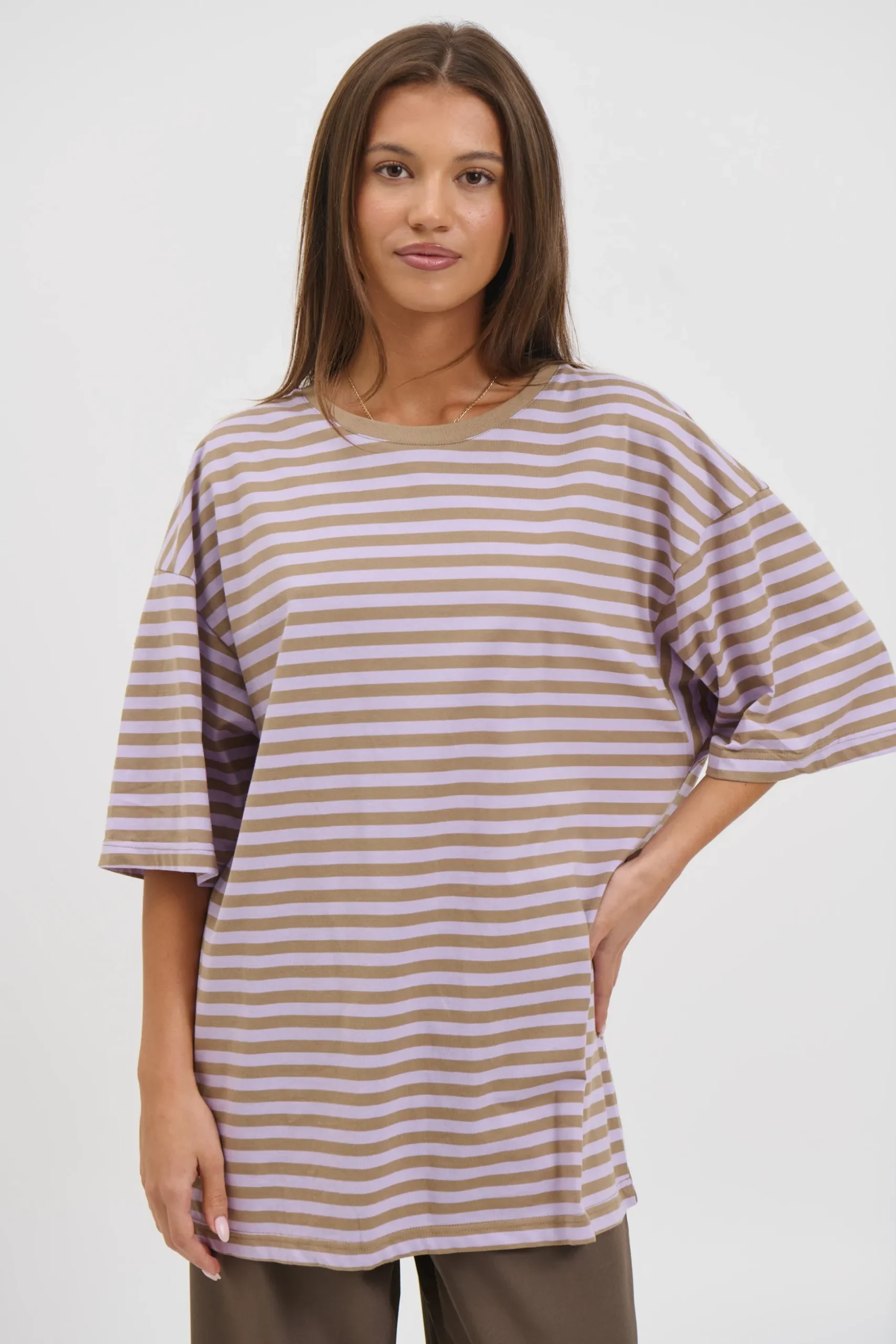 Meet the Jess Top, An effortlessly cool oversized tee crafted from a soft cotton blend for all day comfort. Designed with timeless stripes for a laid back yet edgy vibe.