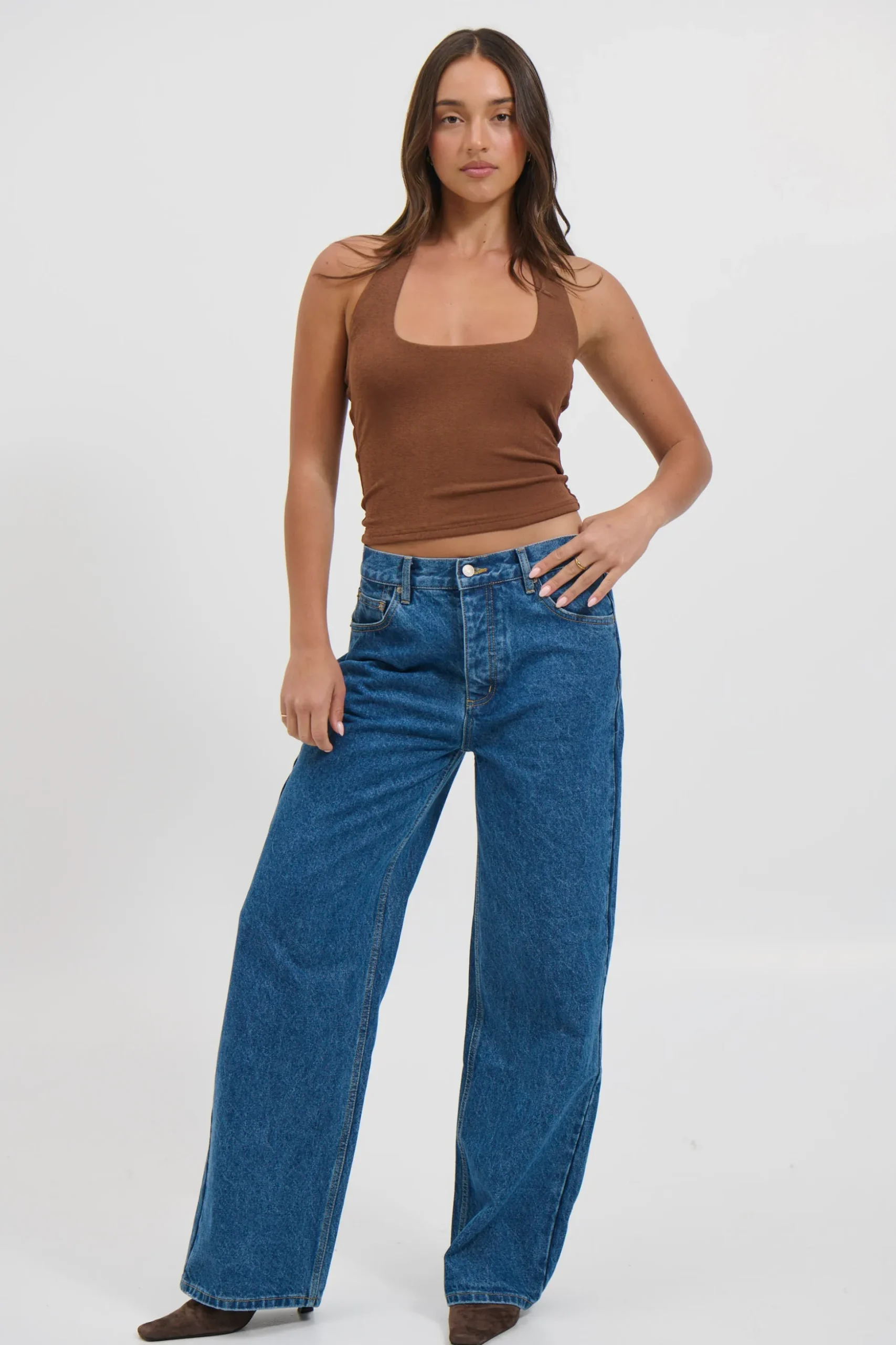 Meet the Katya Halterneck Top, Crafted from a semi-sheer fabrication with high stretch, this tank top features a flattering scoop neckline and a fixed halter neck design. Lined in self fabric for a smooth finish while maintaining its sheer appeal. Designed for a relaxed fit. We recommend sizing down for a closer silhouette.