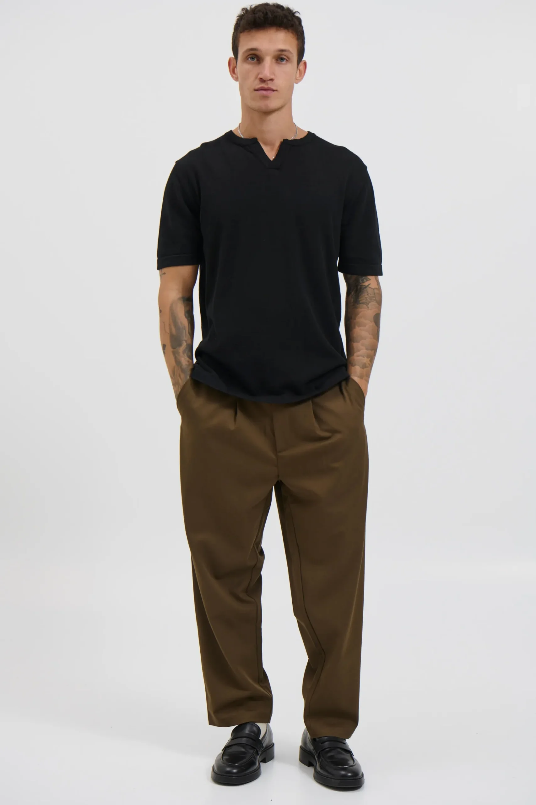 The Knitted Split Neck Tee, Crafted from 100% cotton in a soft knit finish, this men’s tee delivers a clean, fitted silhouette with a comfortable stretch. The split neckline adds a subtle edge, offering a refined take on a casual essential. Lightweight, breathable, and effortlessly versatile—this tee is made to move with you.