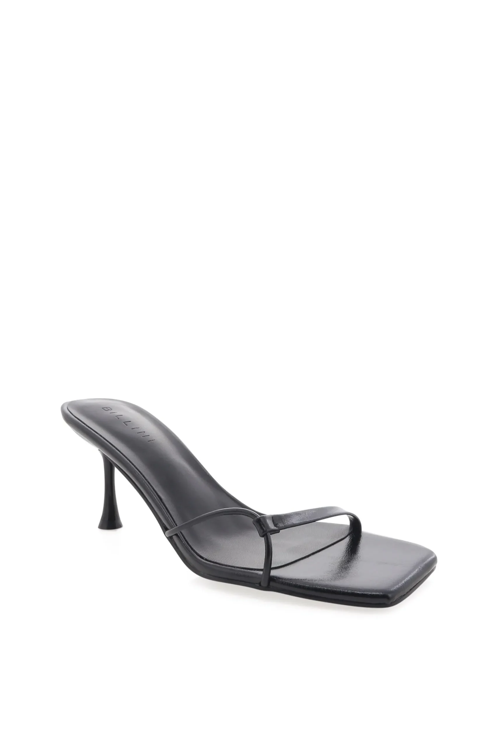 Meet the Nuri Heel, featuring a mid stiletto heel and an open square toe. Designed with two thin straps across the upper and an open heel counter for a sleek, minimalist finish. Completed with a synthetic upper, lining and outsole.