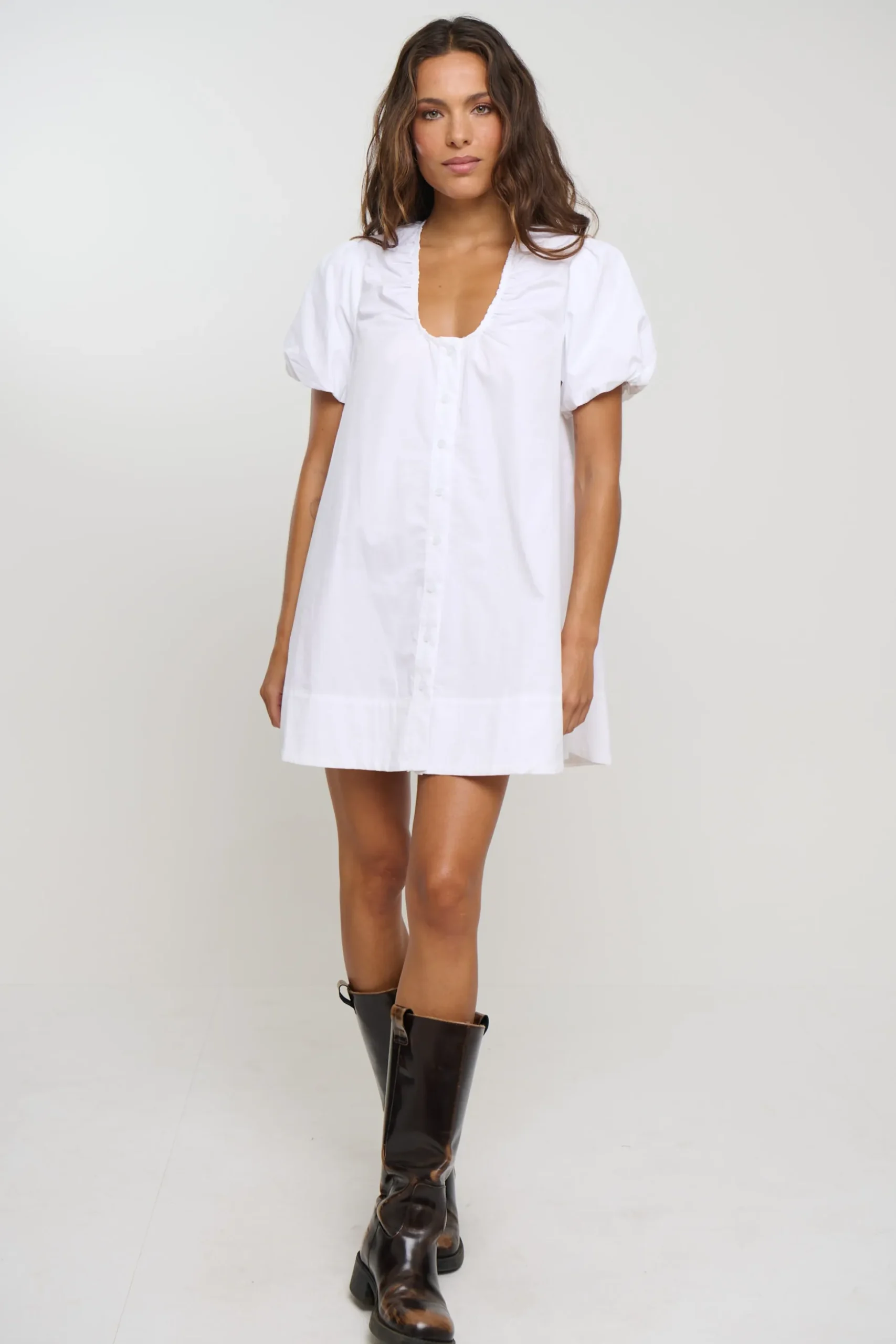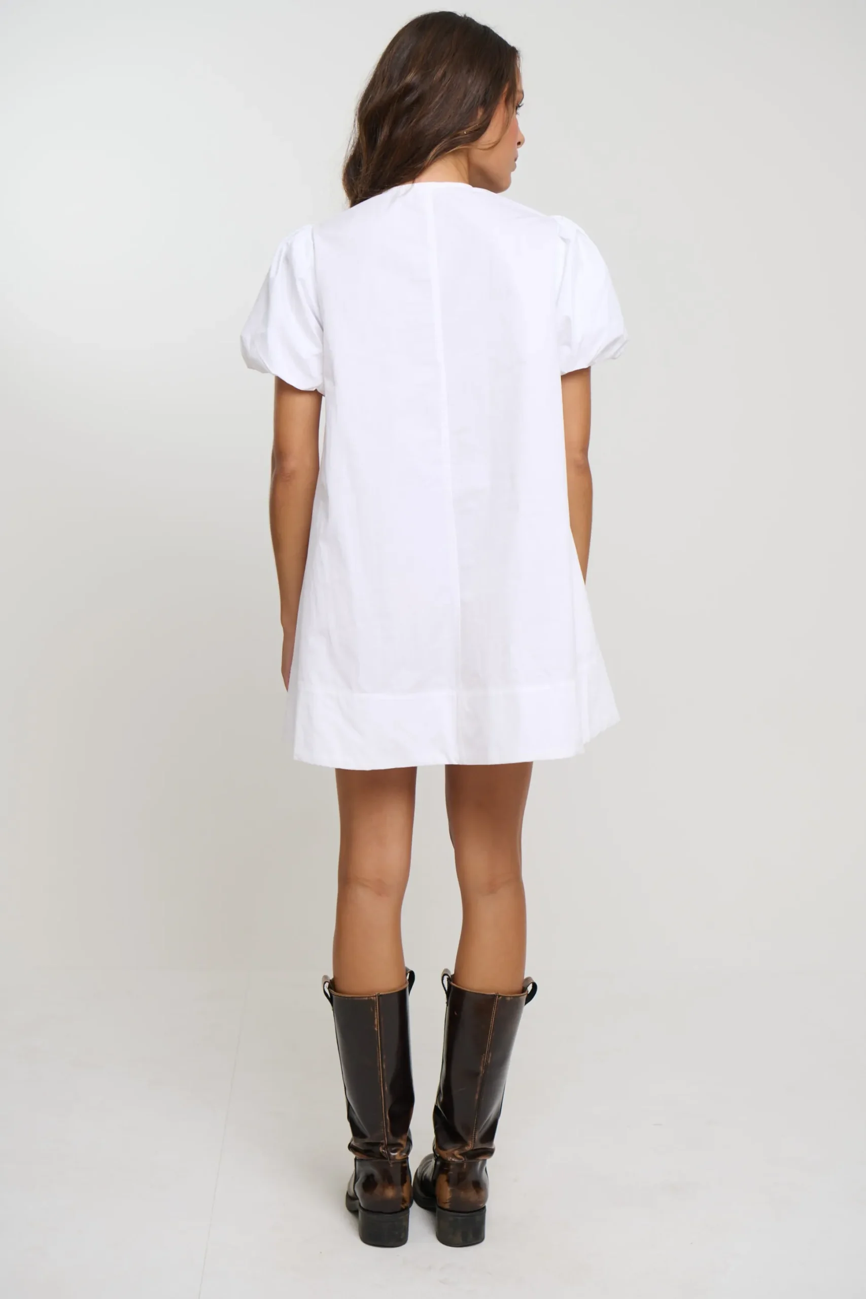 Meet the Oaks Mini Dress, Effortlessly chic and endlessly wearable, this white short sleeve mini dress is crafted in a breathable linen-look fabric that feels as light as it looks. Designed with a relaxed yet flattering silhouette, it features soft short sleeves and a crisp mini length for a fresh, modern finish.