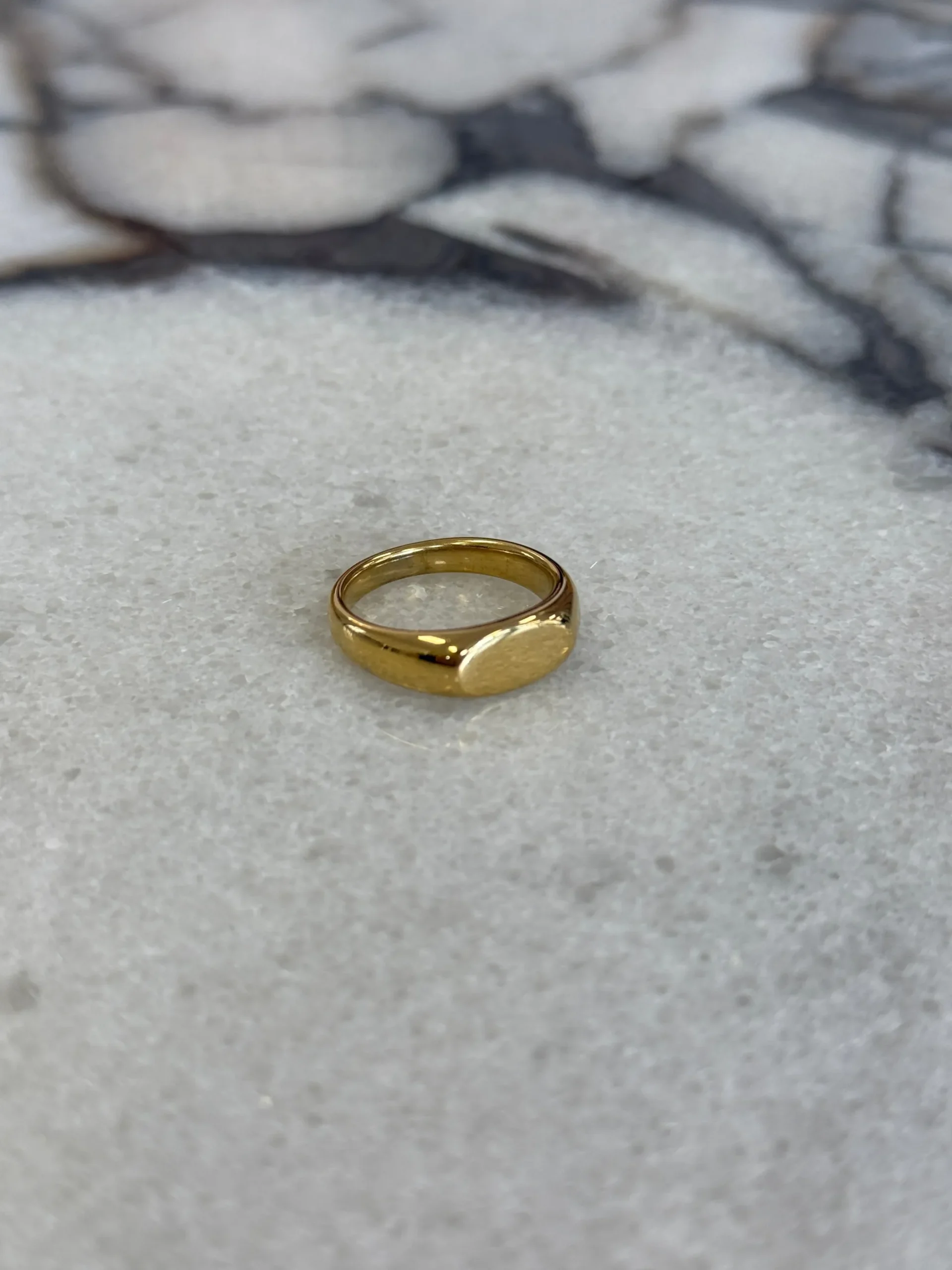 The Oval Signet Ring, crafted with a slim silhouette and smooth detailing for a timeless accessory designed to elevate everyday looks.