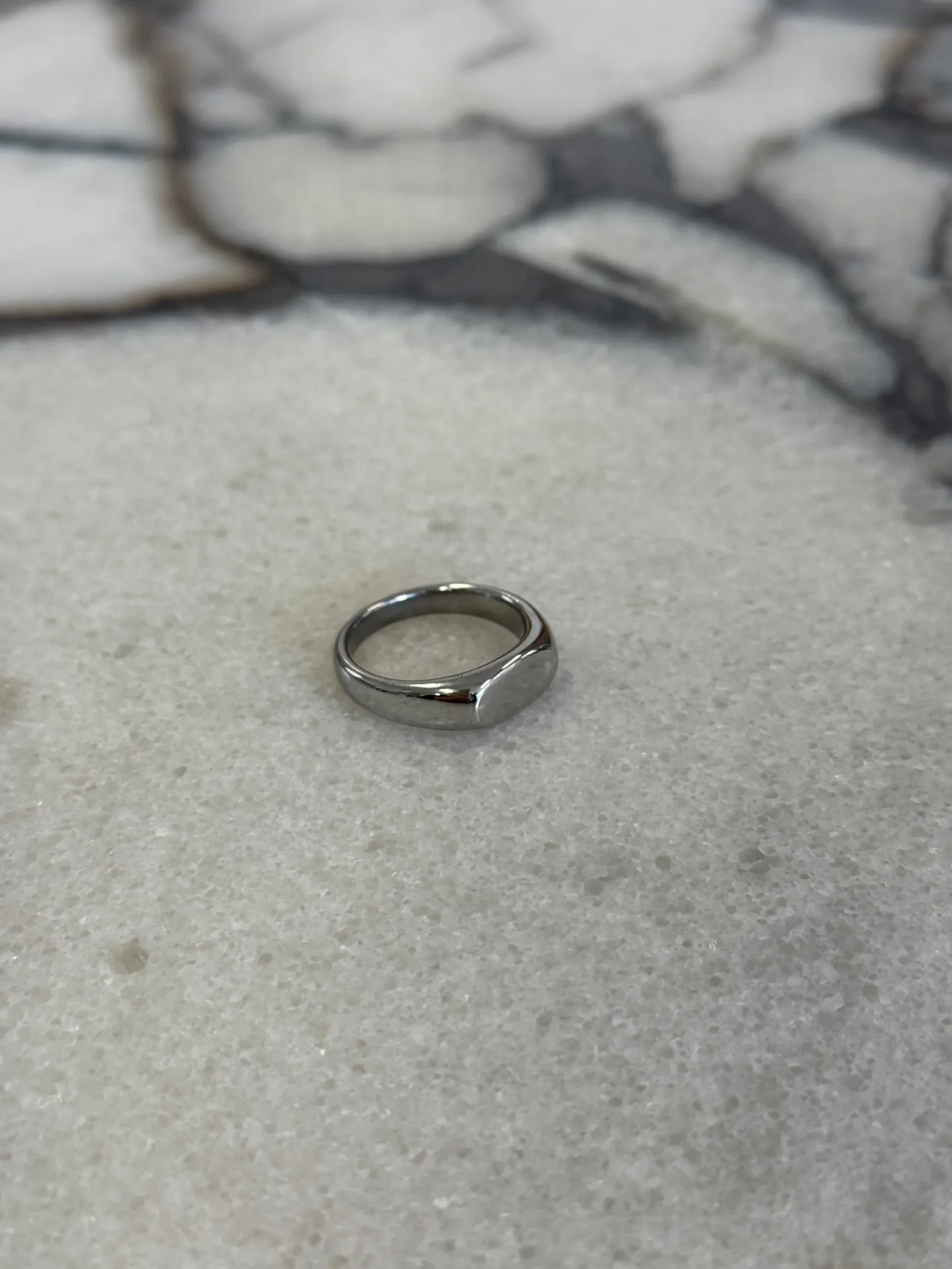 The Oval Signet Ring, crafted with a slim silhouette and smooth detailing for a timeless accessory designed to elevate everyday looks.