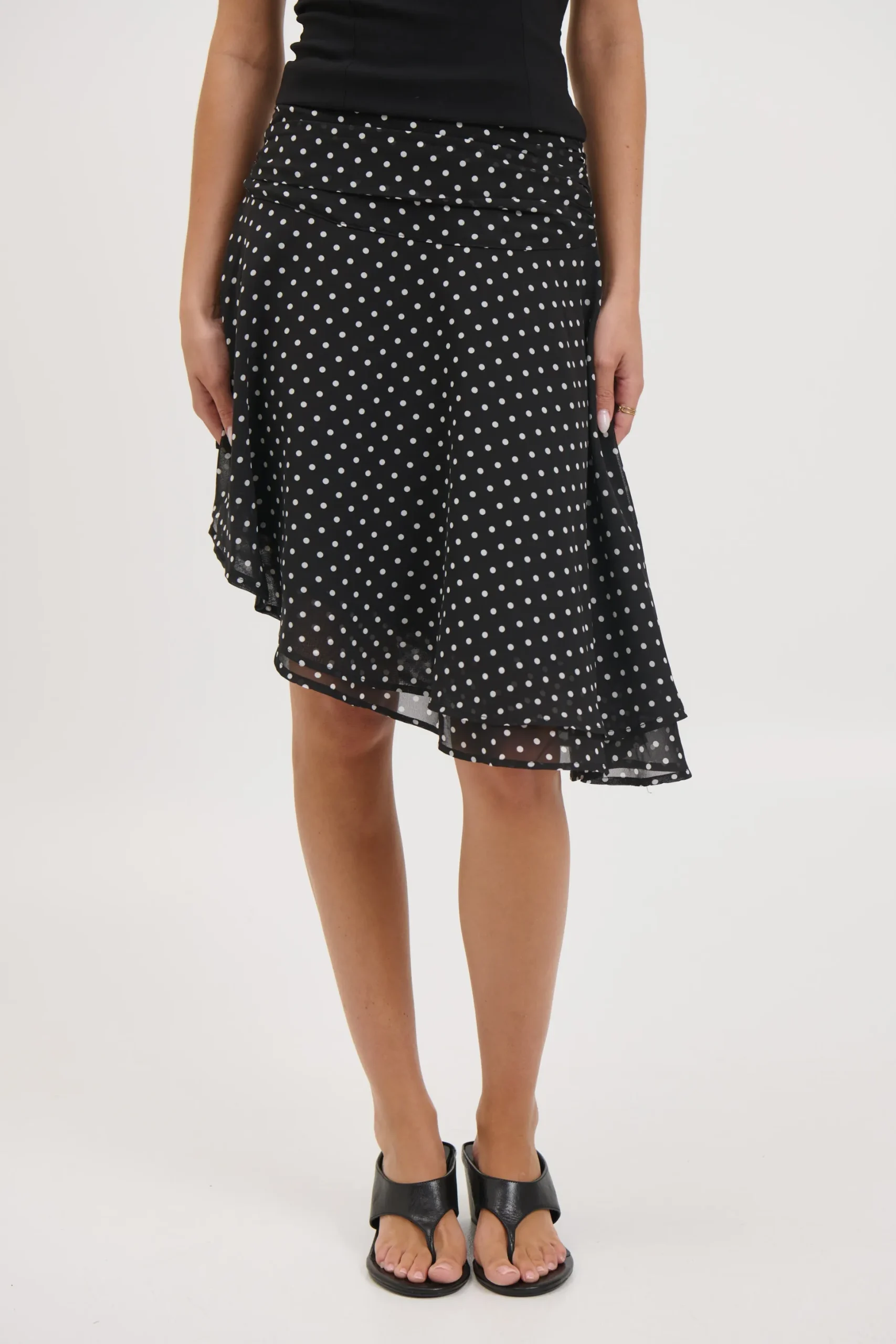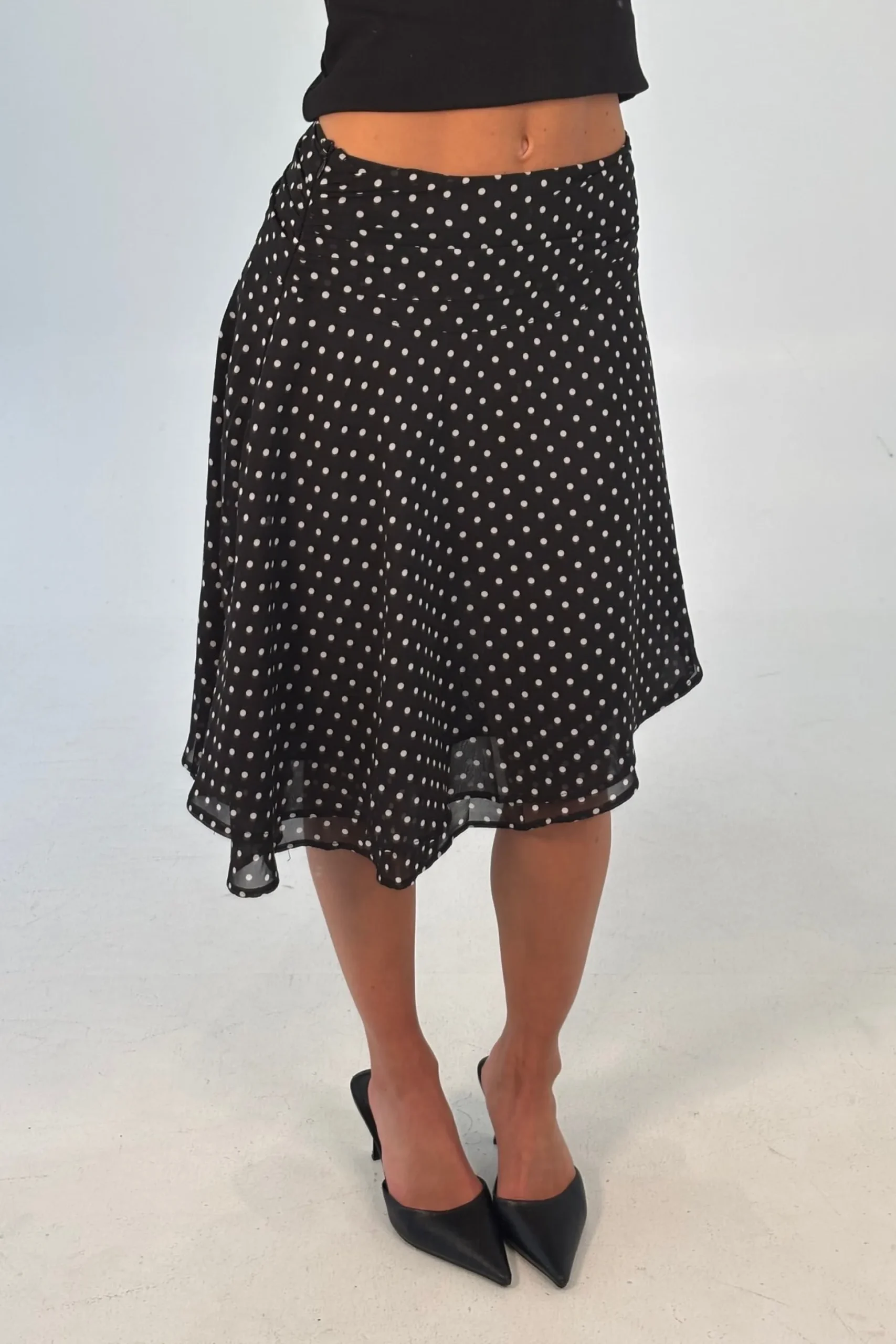 Meet the Paloma Midi Skirt, featuring a playful twist with its lightweight, semi-sheer fabric and dynamic handkerchief hemline. The high-rise waistband offers a flattering, snug fit with an invisible zipper closure, while the soft pleating creates gentle movement and flow.