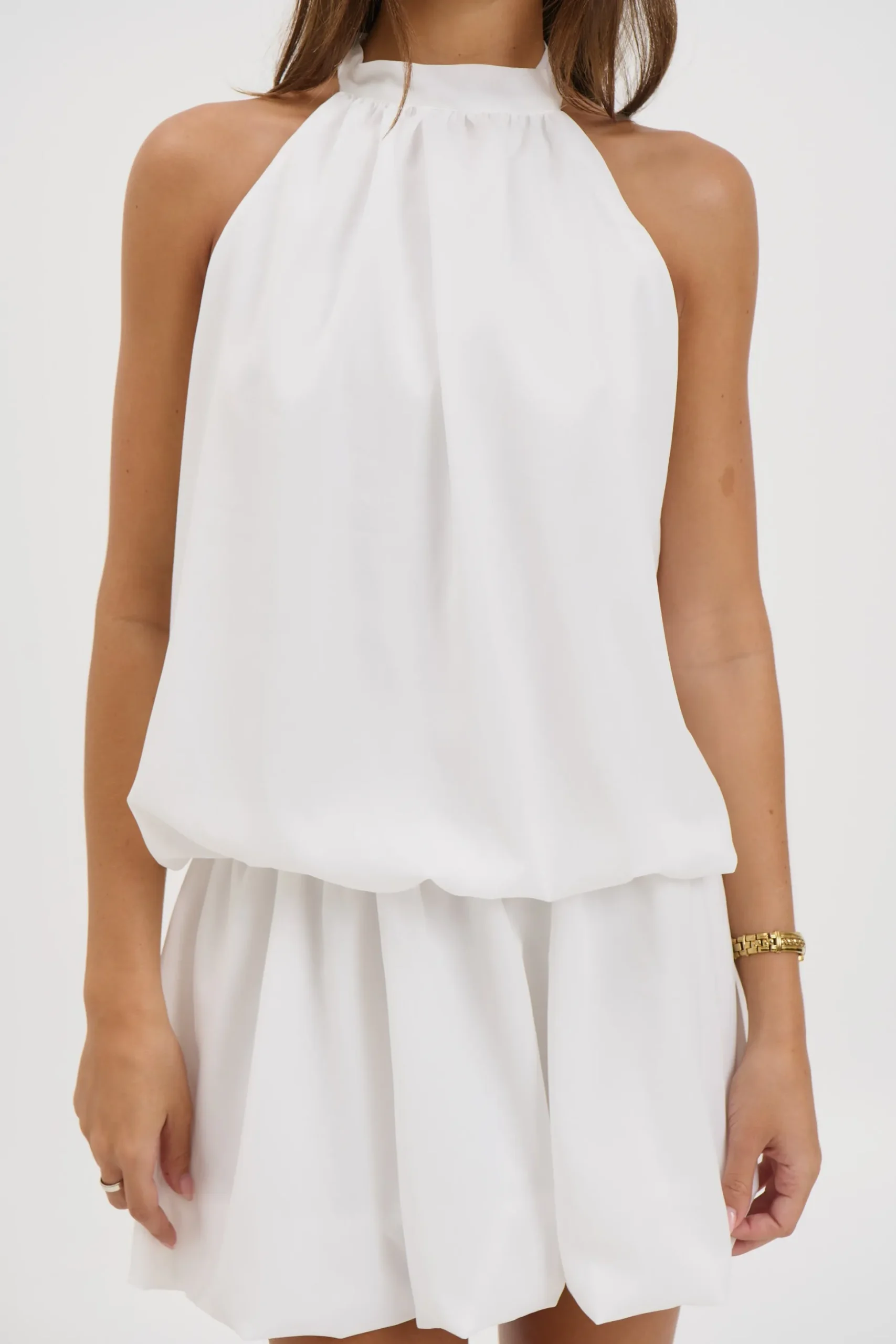 Meet the Paris Mini Dress, Featuring a flirty halter tie neck and a backless design, this mini dress showcases a unique bubble-look top paired with a playful bubble hem skirt. Perfectly combining modern volume with feminine charm, it’s ideal for summer outings, parties, or a night out.